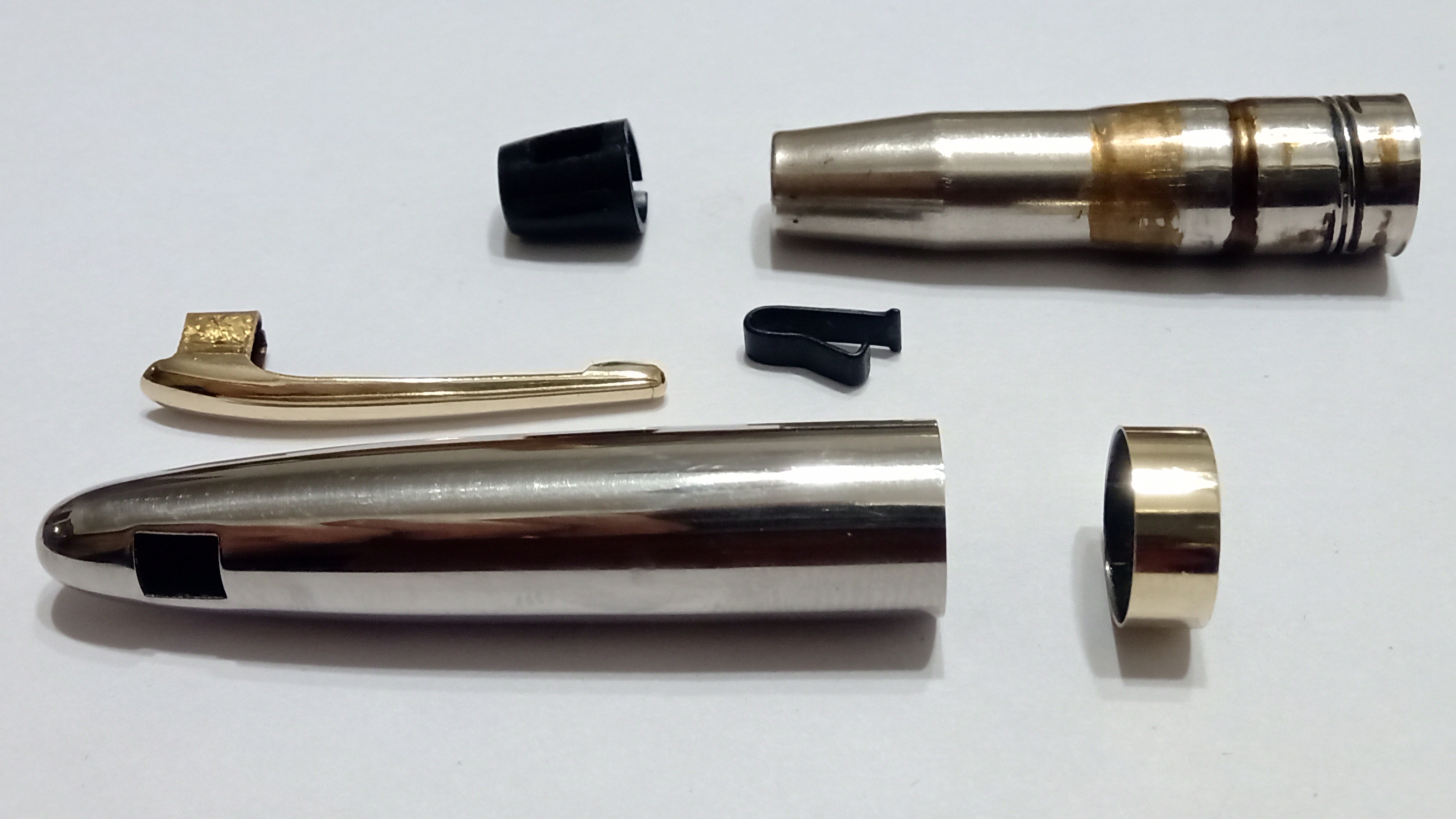 Anche le clip e le bande dorate sono state lucidate e lucidate delicatamente, separate dai cappucci interni con la stessa procedura di dilatazione ad aria calda e WD40 infiltrato.