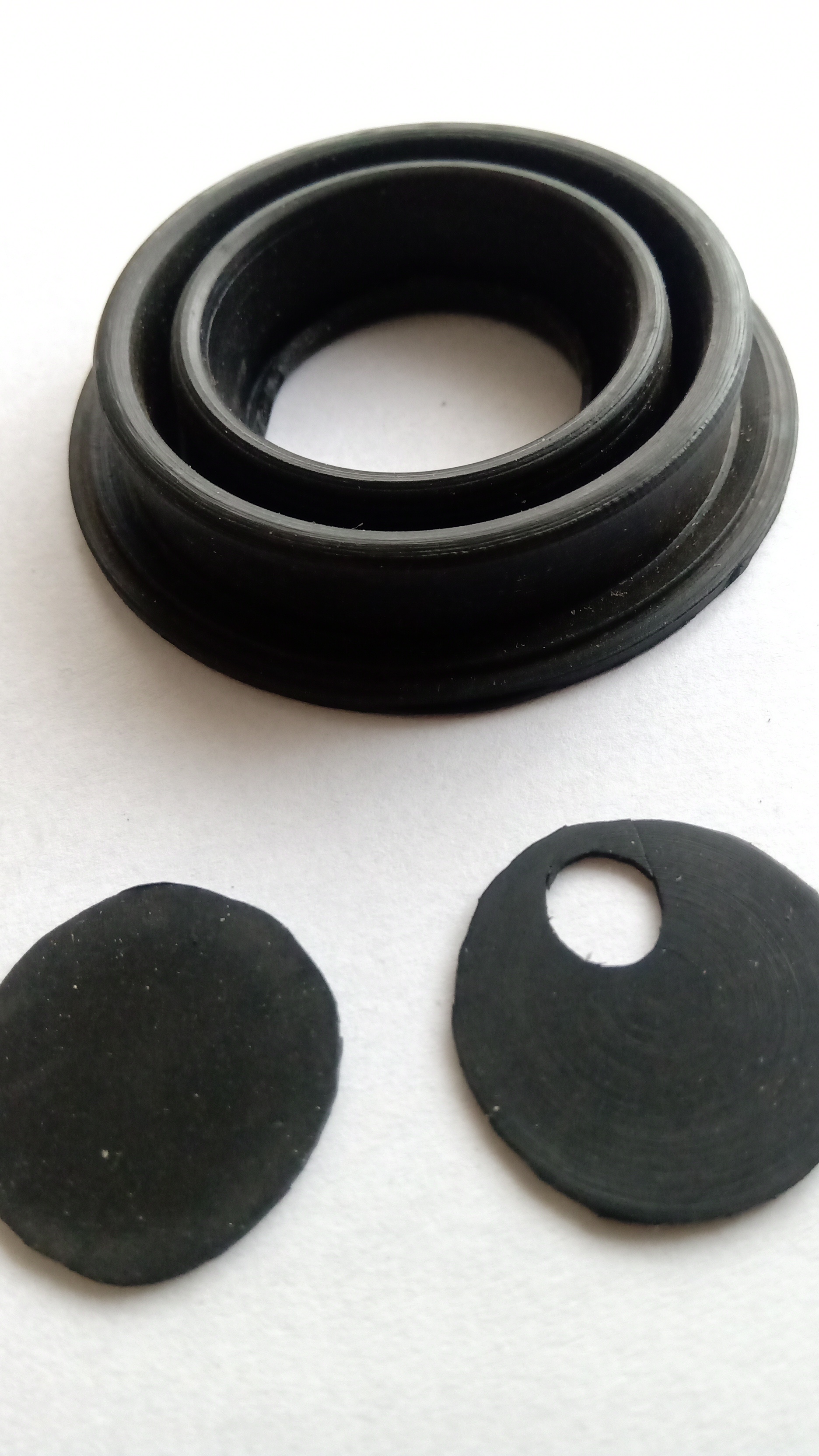 Per conferire l'ermeticità utilizzeremo una guarnizione in gomma siliconica (ricavata dai connettori delle automobili) al posto di un o'ring che non funziona perfettamente sullo stelo in acciaio, soprattutto perché i vecchi steli normalmente vengono battuti in alcuni punti della loro corsa. in alto, un piccolo cerchio tagliato con un punzone da un pezzo di membrana di gomma sintetica. Il feltro giallo, facilmente reperibile dal feltro di fibra da cucina, sarà abbondantemente imbevuto di grasso al silicone.