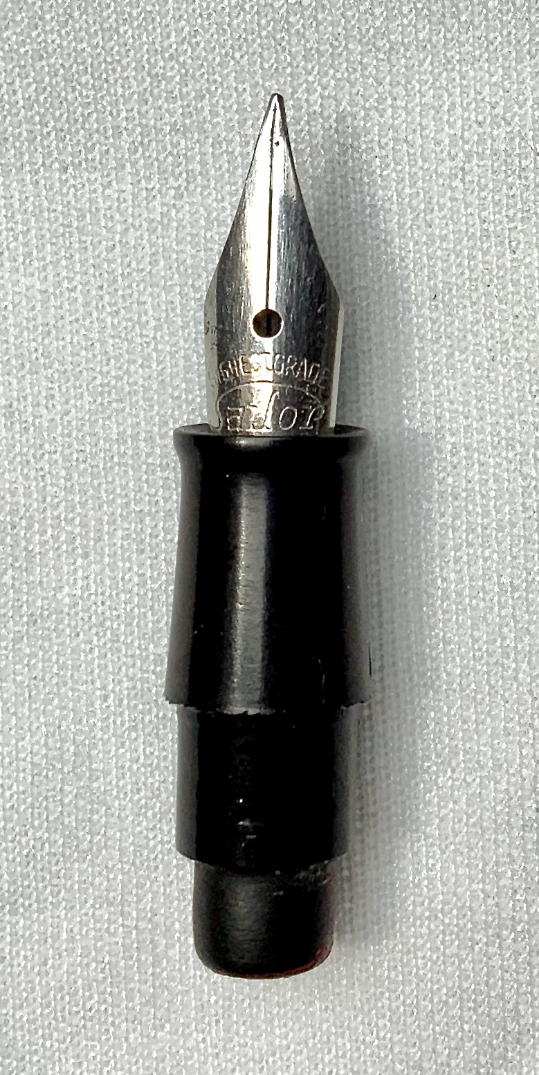 Come detto, il pennino è in acciaio, con impresso il logo Sailor e sopra la dicitura HIGHESTGRADE . Se altri riferimenti sono corretti , nella parte nascosta dalla sezione dovrebbe esserci la scritta NONCORROSION , e la misura del pennino “2”.