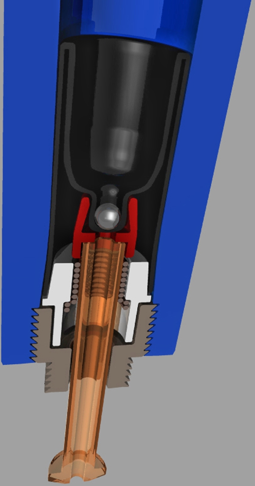 Sia nell'assemblaggio di fabbrica della stilografica, sia nei servizi di cambio diaframma, il copripulsante e il corpo devono essere rettificati e livellati, poiché è impossibile che siano uniformi, poiché l'anello ha due filettature diverse, e i fori di entrambi non sono sempre centrati.