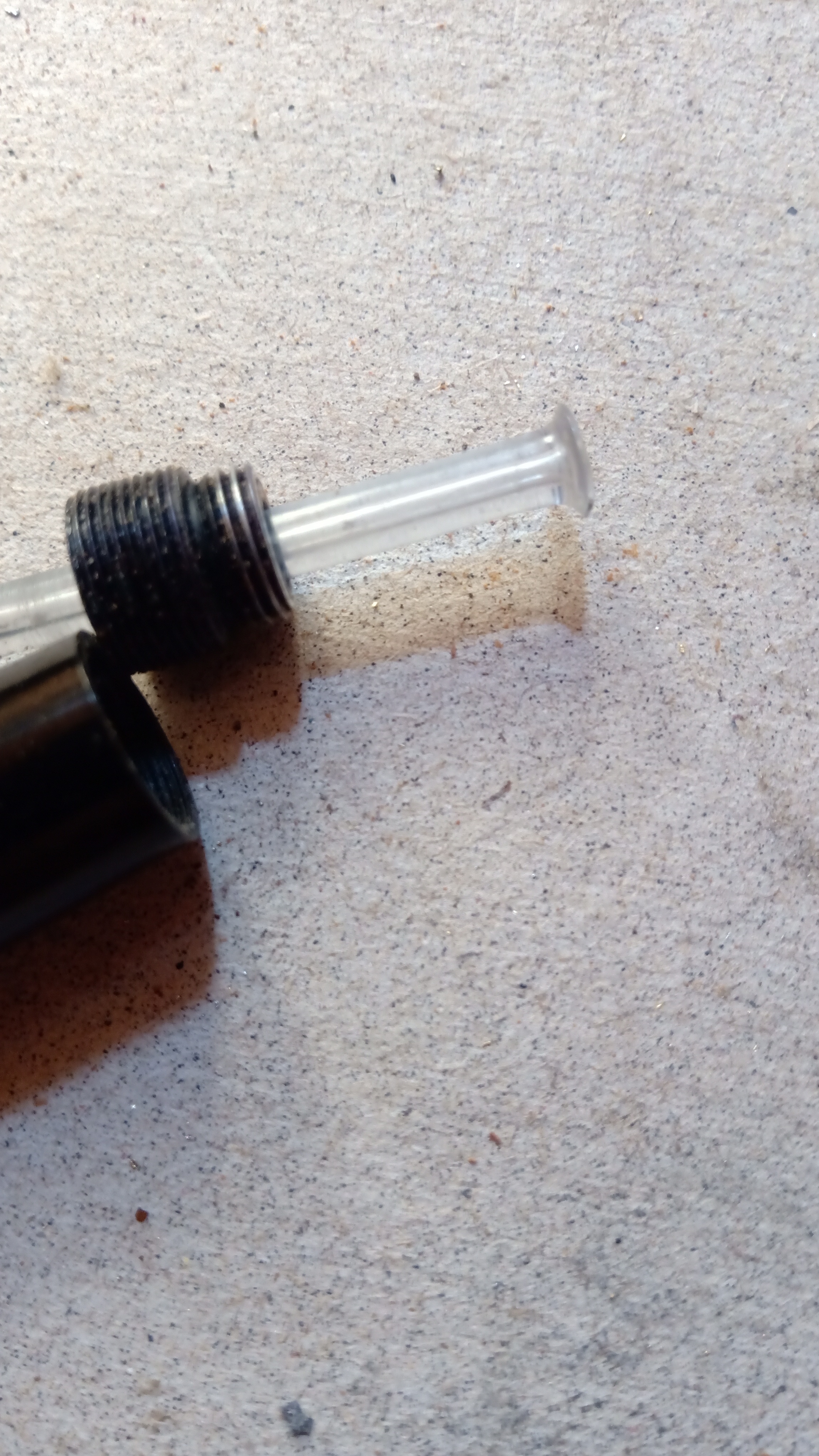 Ora non restava che rimontare l'assieme con il pulsatore originale, quindi livellare il tappo cieco con la canna levigando con pazienza e delicatezza i due pezzi già assemblati... e indovinate cosa ho scoperto? che sia la canna che il coperchio cieco non erano di Lucite, ma di Ebanite...!!! su un Parker 51 Vacumatic???