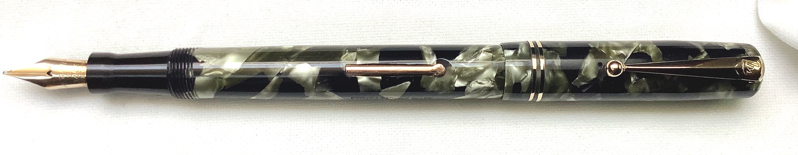 Per quanto riguarda la datazione c’è chi dice anni ’30 e chi sostiene anni ’40. Siccome qualche paletto è necessario metterlo, ho deciso in modo del tutto arbitrario di riferirmi principalmente a fonti inglesi in considerazione del luogo di fabbricazione , inglese appunto. La datazione più plausibile e più indicata sono gli anni ’30, e se corrisponde al vero la correlazione tra i differenti stili nel modo di disegnare il cigno impresso sul fusto della penna e gli anni di produzione, per questa specifica penna ci si attesta tra il 1935 ed il 1936.