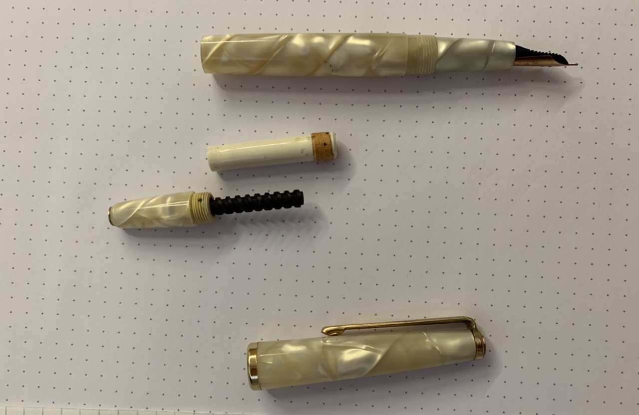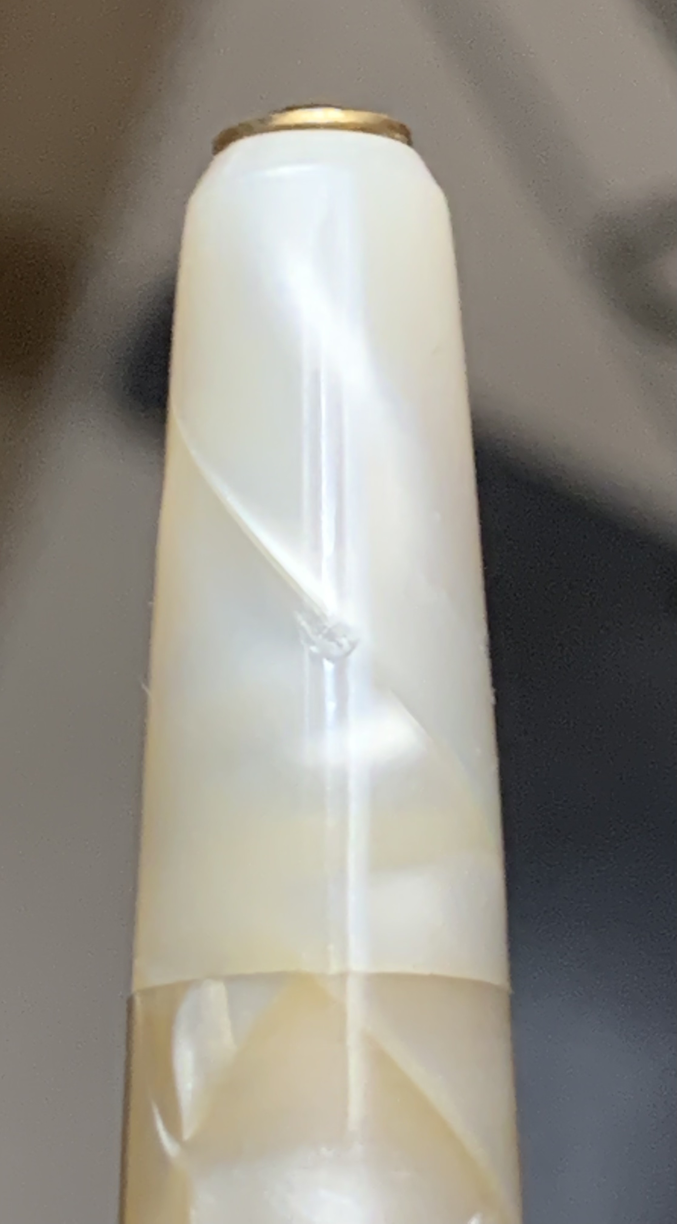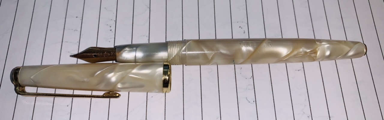 La penna sembra in condizioni eccellenti, non ho idea di che materiale sia fatta, la tanto famosa celluloide? (Non ne ho mai vista una di quel materiale, quindi non so riconoscerlo)