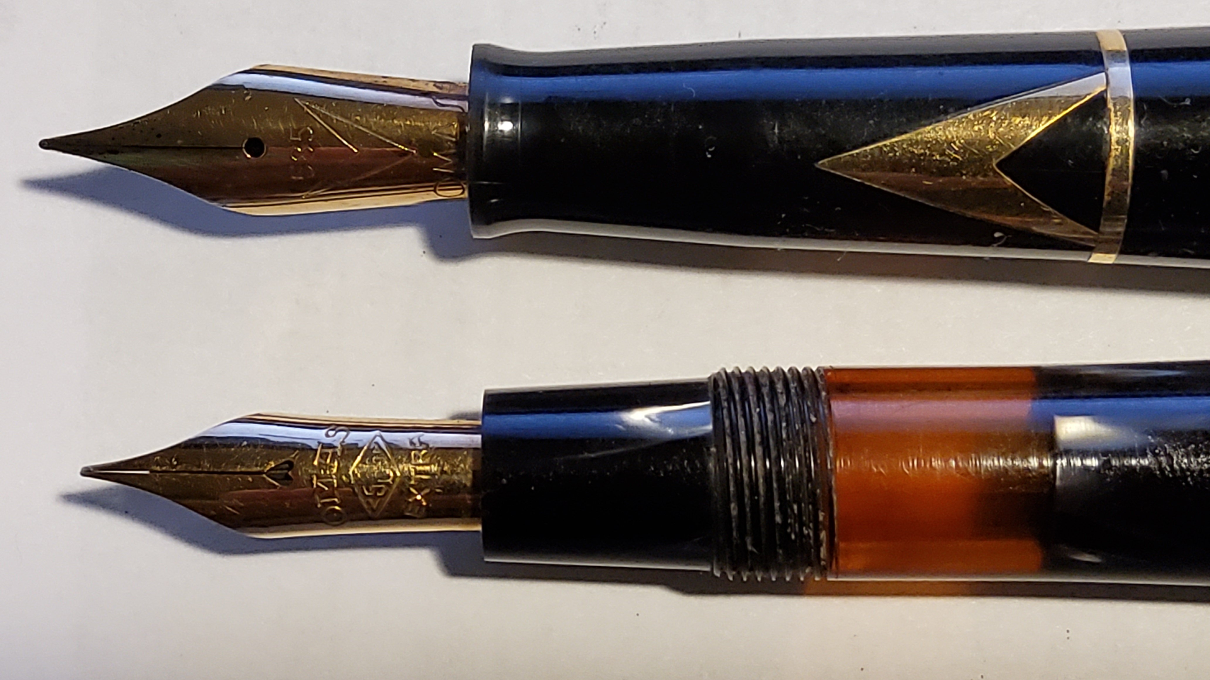 Io ho avuto la fortuna di acquistare una delle Ogiva che Omas produsse poco prima di chiudere i battenti per sempre, nella sua bella celluloide Arco. Mi sono sempre chiesto perché Omas non l'abbia fatta prima, una penna così bella a vedersi, con le due greche sul cappuccio e sulla sezione. Quello stesso anno Omas sfoderò un'altra penna che trovo bellissima, la Ogiva Autunno, che siccome non l'ho mai avuta per le mani non ho ancora capito se sia fatta con la stessa celluloide della Extra "Saft" o con un verde/marrone/ocra diverso e unico. Ma la Autunno é per un altro tema, e soprattutto per chi abbia la fortuna di averla...