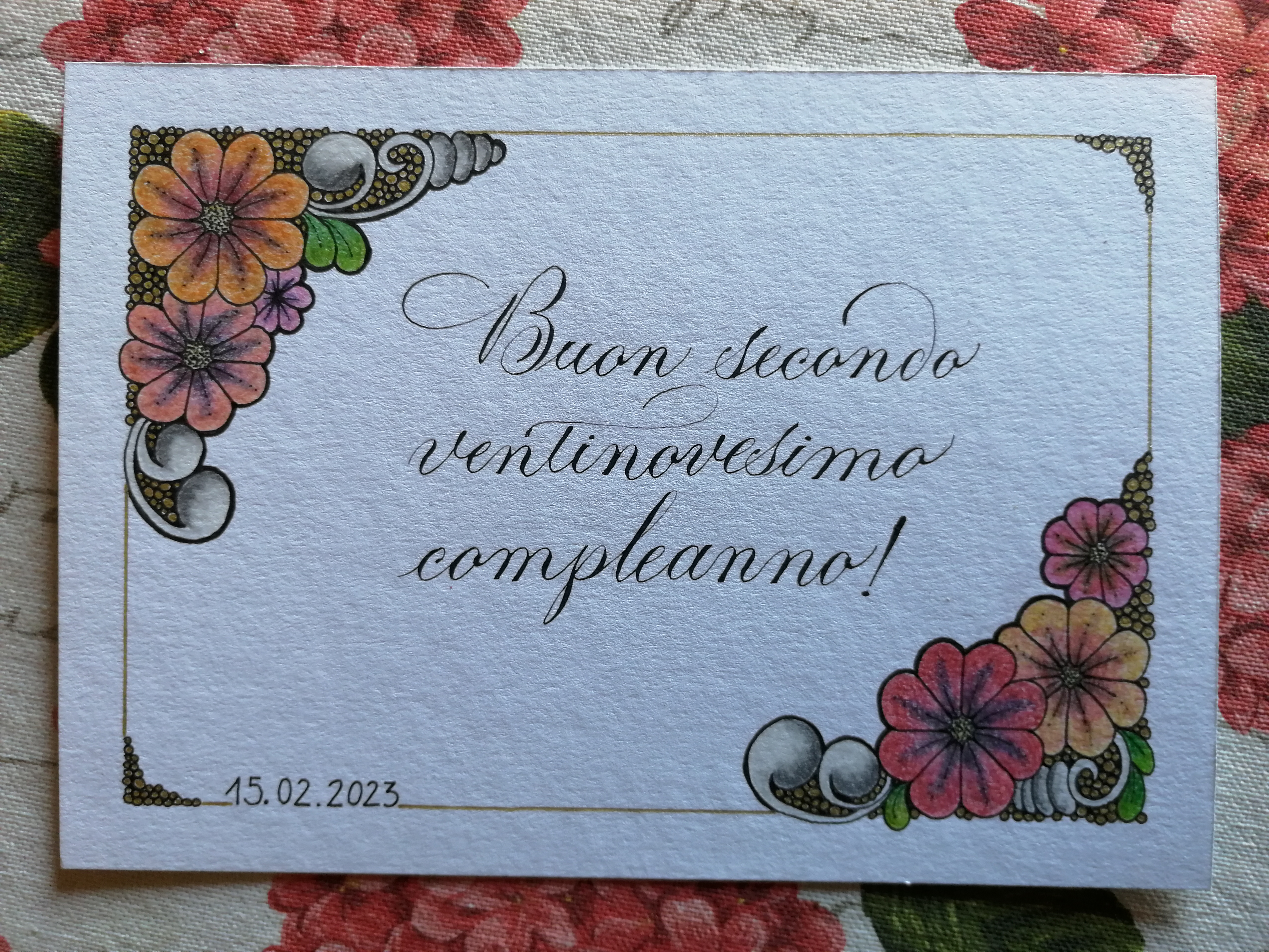 L'ultimo biglietto di auguri che ho fatto é più disegno che calligrafia quindi emigro in questo sempre affascinante circolo artistico. Spero che non risulti troppo confuso, ma mi sono lasciata prendere la mano