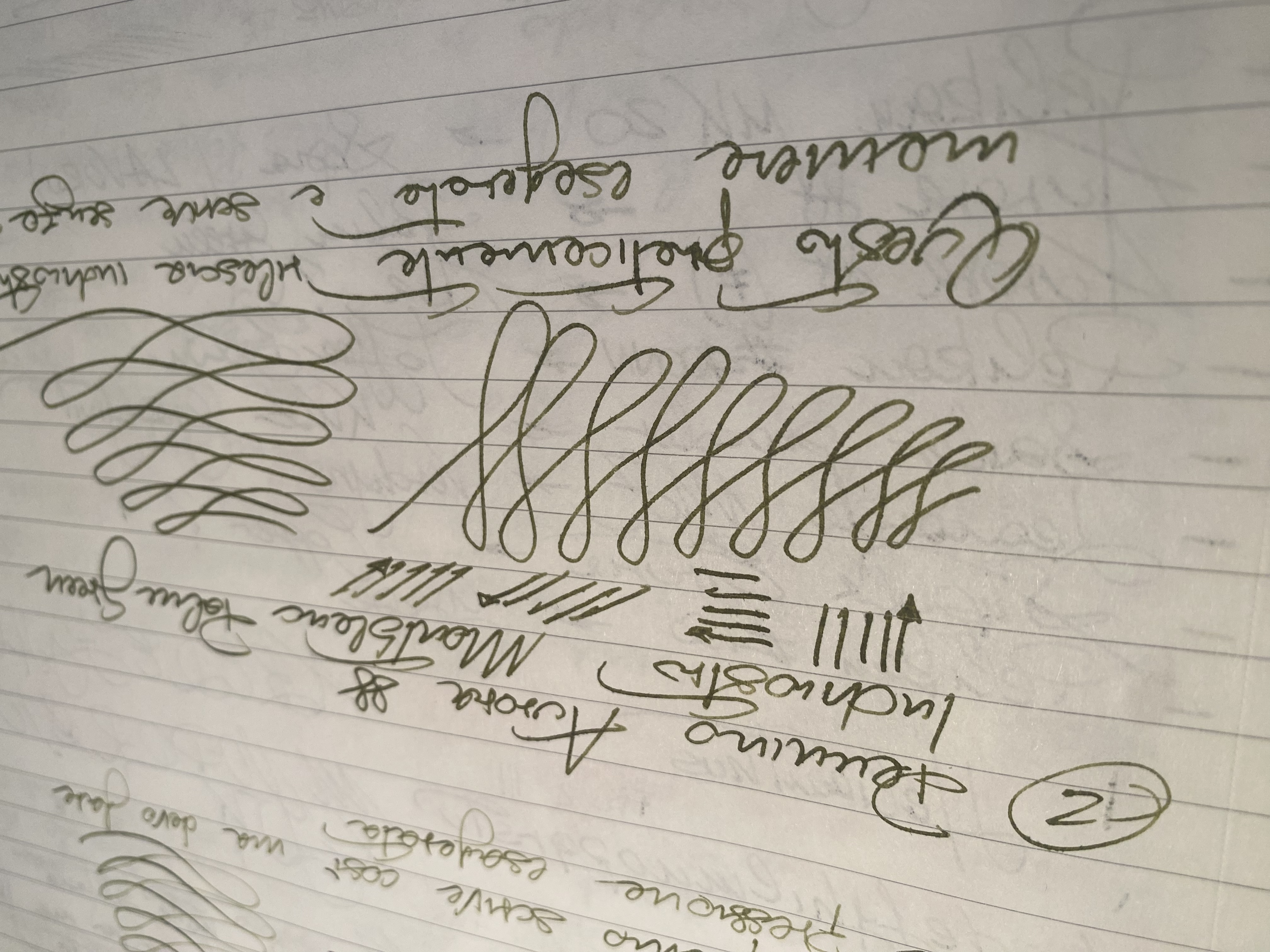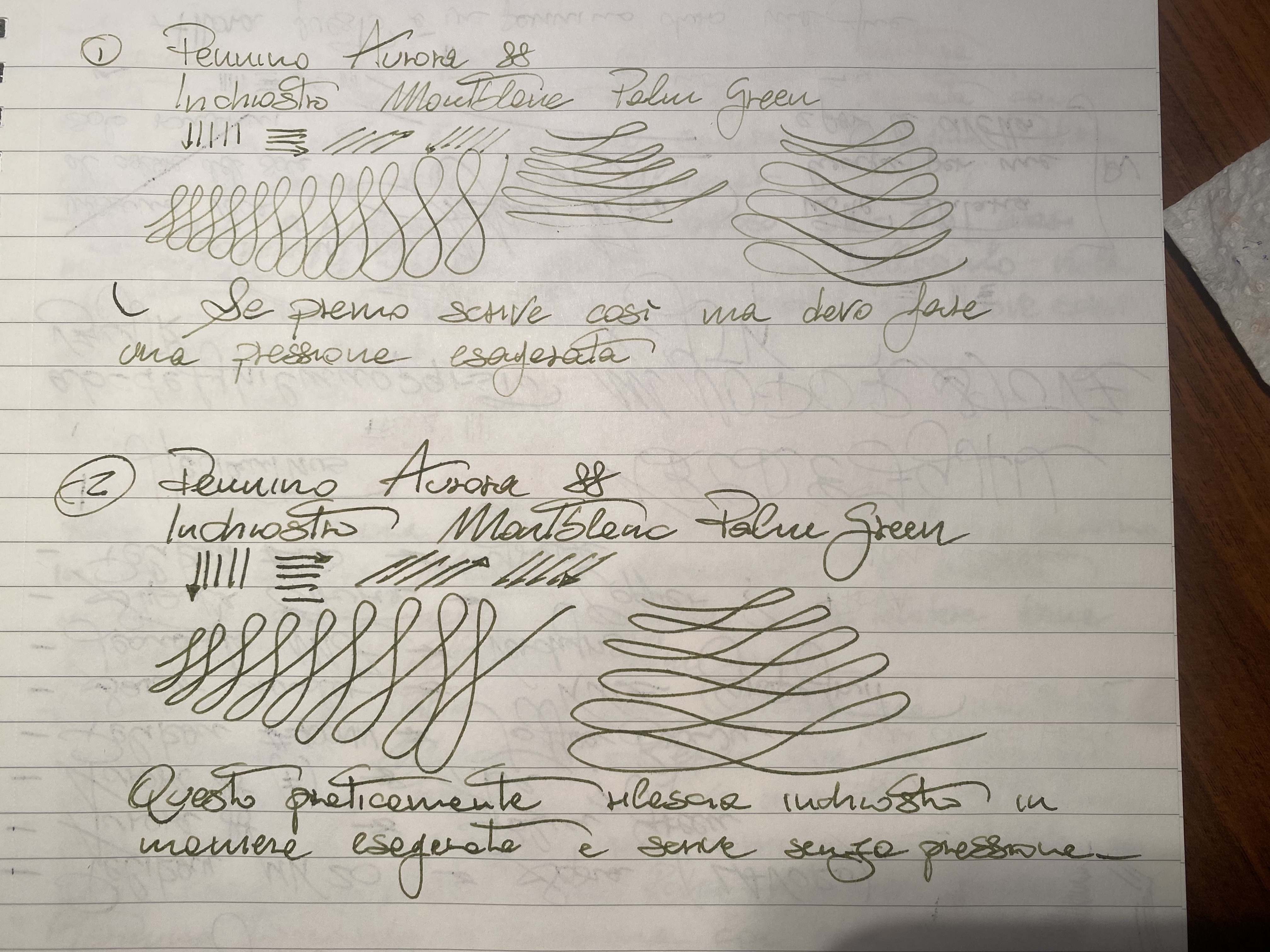 Il numero 2 è quello che uso di solito, anzi di rado, perché troppo abbondante; presumo sia un medio, è morbido e scrive così come vedete senza pressione alcuna.