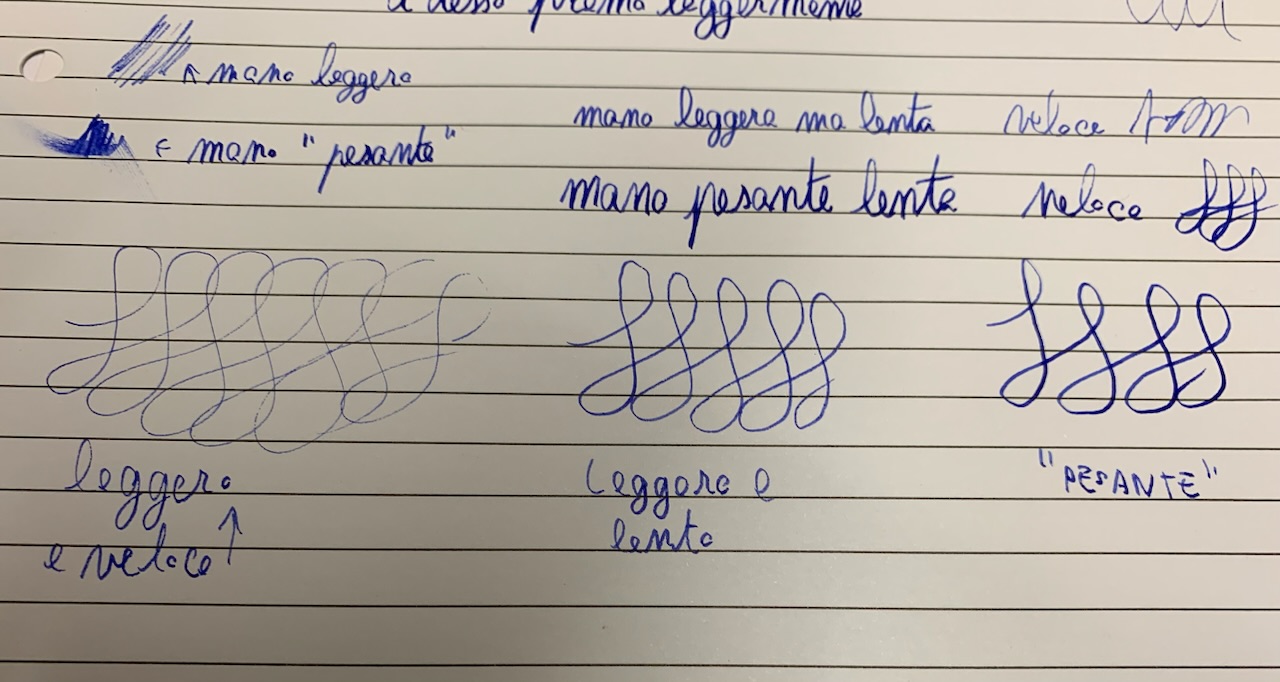 Con mano leggera, scrivendo velocemente il flusso è molto scarso e il tratto sottilissimo e sbiadito, alcuni salti di tratto