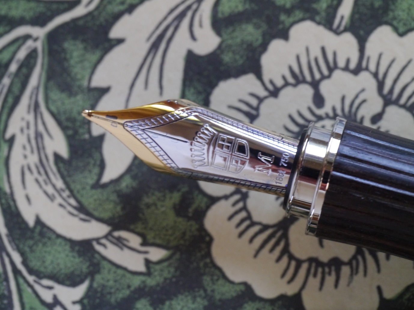 Possiedo anche una Graf von Faber Castell Guilloche Ciselé con pennino F in oro 18kt regalatami tempo fa dagli ex colleghi quando cambiai azienda. Scrive in modo superbo, anche se non riesco a farmi piacere la forma della penna e la uso di rado.