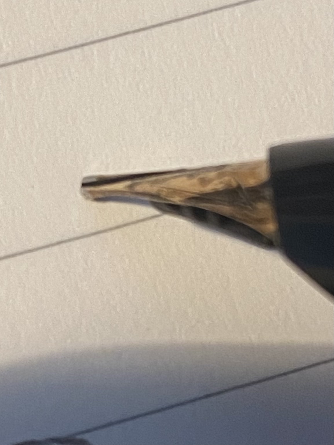 Mi sembra una cosa mai vista. Occorre smontare il pennino e vederlo fuori dal suo alimentatore per capire. Così su due piedi non capisco sembra come se lavori con un pennino spezzato.