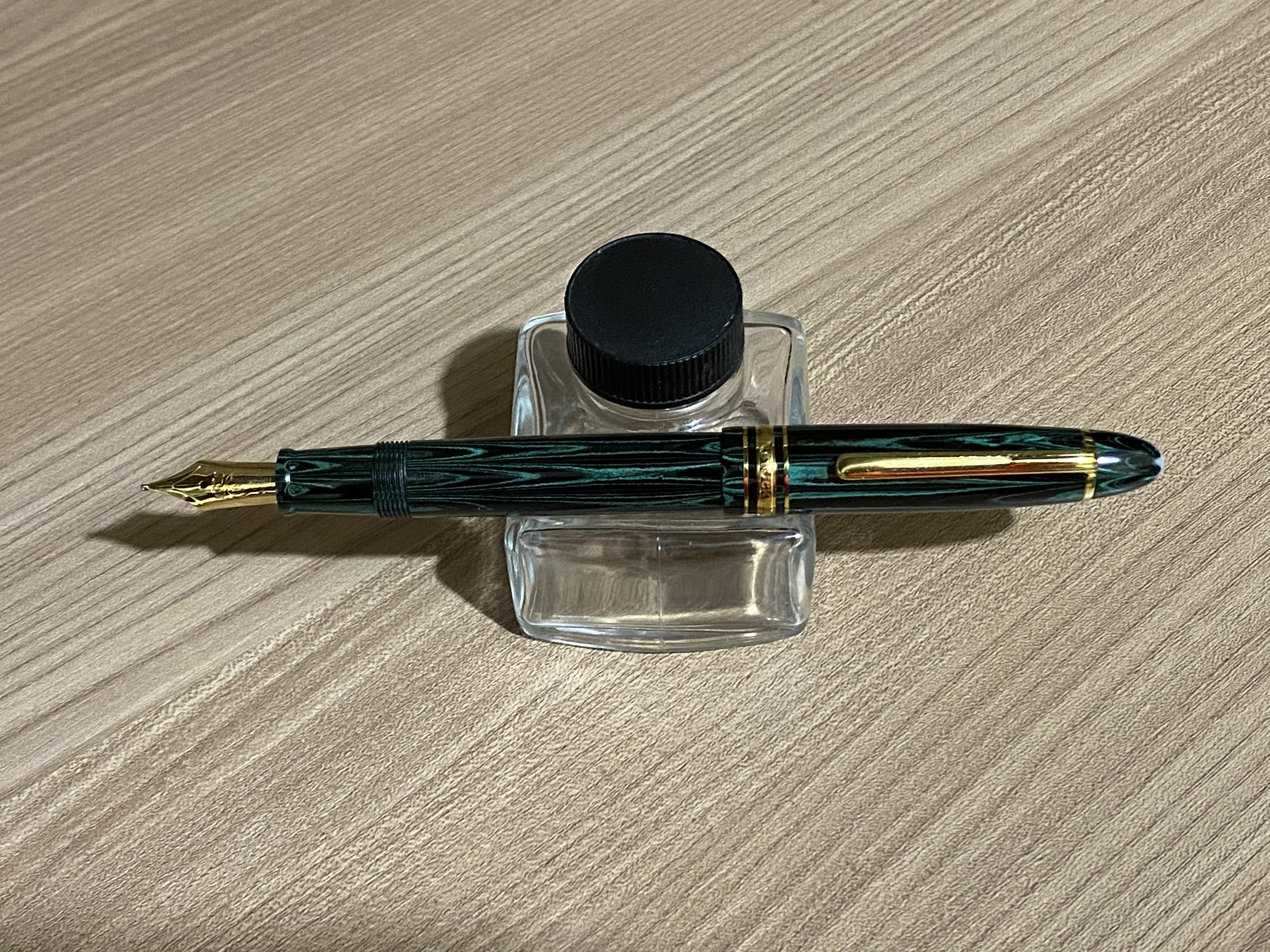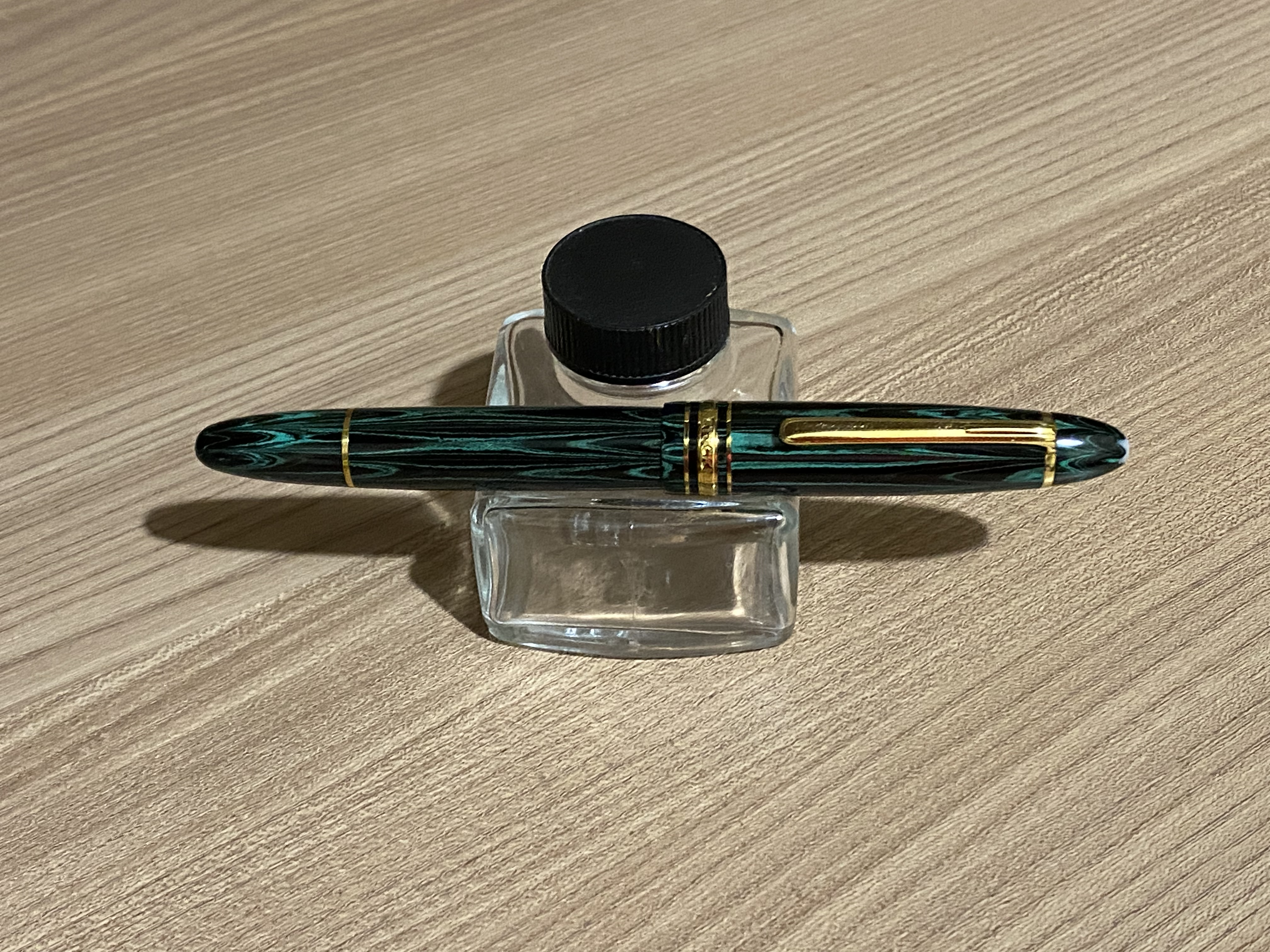Così ad Agosto mi sono sentito con Giorgio e a Settembre il rottame è partito per Creta dove Giorgio ha fatto la sua magia. La realizzazione di questa penna ha richiesto un po' di tempo ma ne è valsa la pena, la qualità costruttiva è impressionante, gli anellini sono perfettamente inseriti nella stessa ebanite verde con cui aveva realizzata la Wahl che avevo visto a Firenze. Le dimensioni sono proprio quelle di una Montblanc, le curve rispecchiano le proporzioni della vera 146, non più acuminate non più addolcite. Ha rifatto persino la stellina! Beh cosa dire, finalmente una Montblanc 146 da cui non mi separerò… anche se tecnicamente una Montblanc non lo è