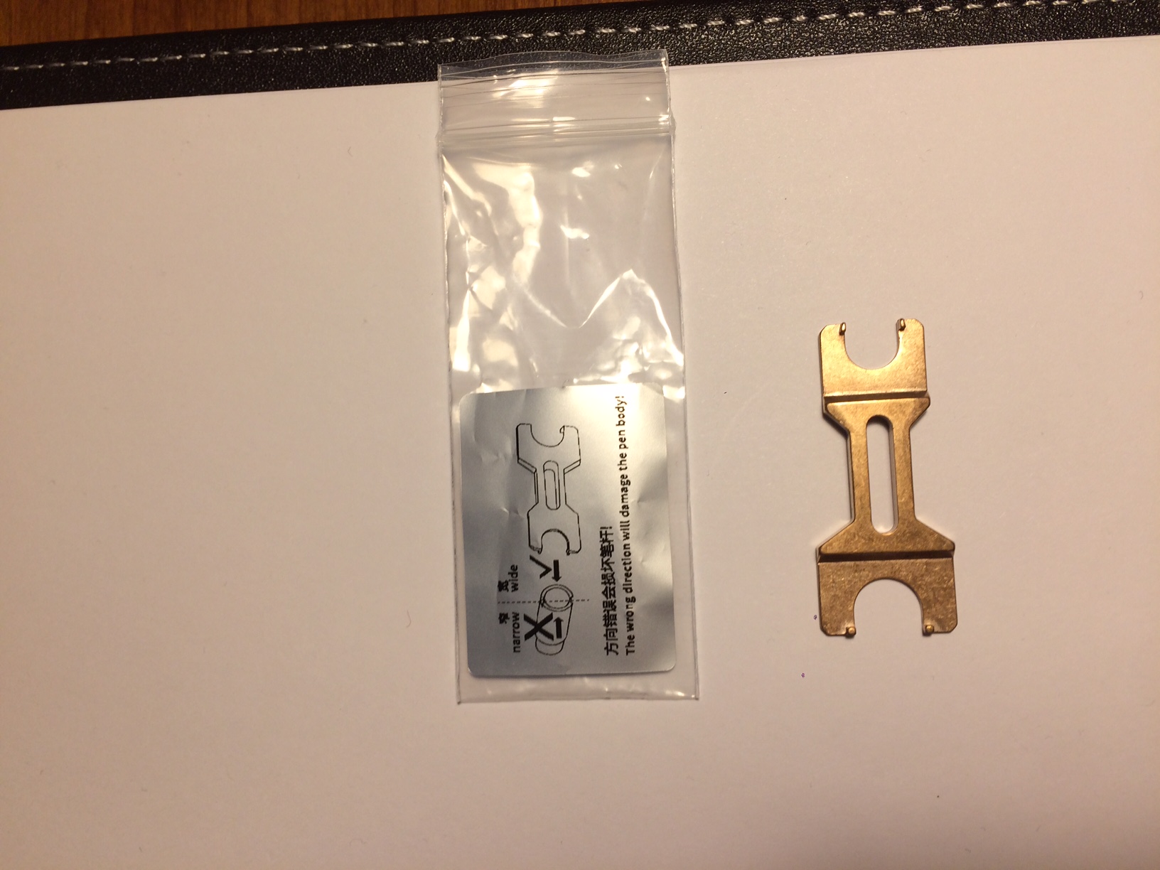 Ps. girovagando in cerca della Jinhao perduta sul noto sito ho visto pubblicizzato uno strumentino ( p 136 brass demolition wrench) che se fosse utilizzabile su MB 146/149 e Pelikan sarebbe molto interessante, si tratta di una chiavetta per lo smontaggio di pennino e converter ... qualcuno lo ha preso e sa se e' compatibile ? ( dalle foto si direbbe di si ma chissa'?)