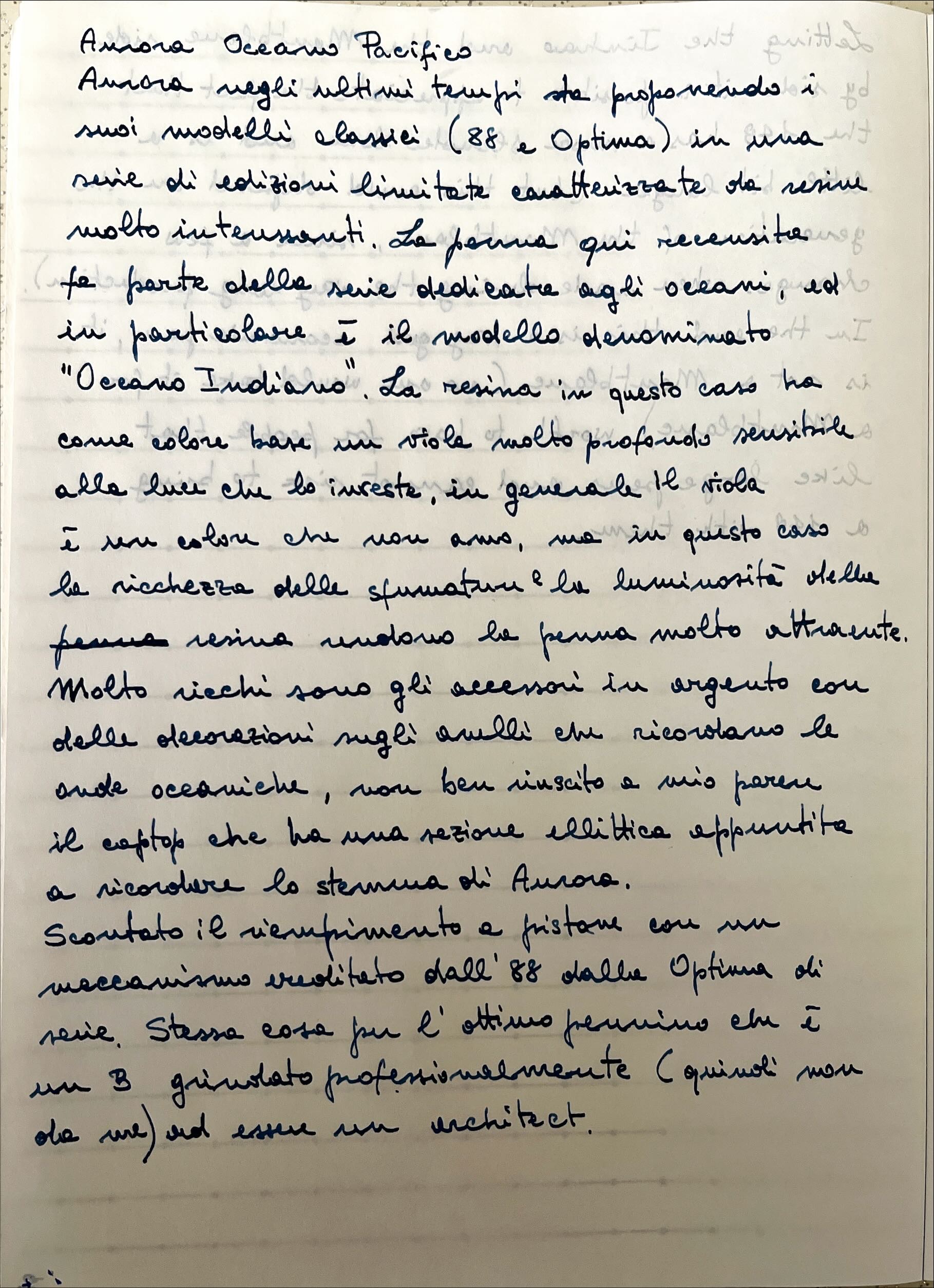 Recensione scritta a mano dell'Aurora Oceano Indiano