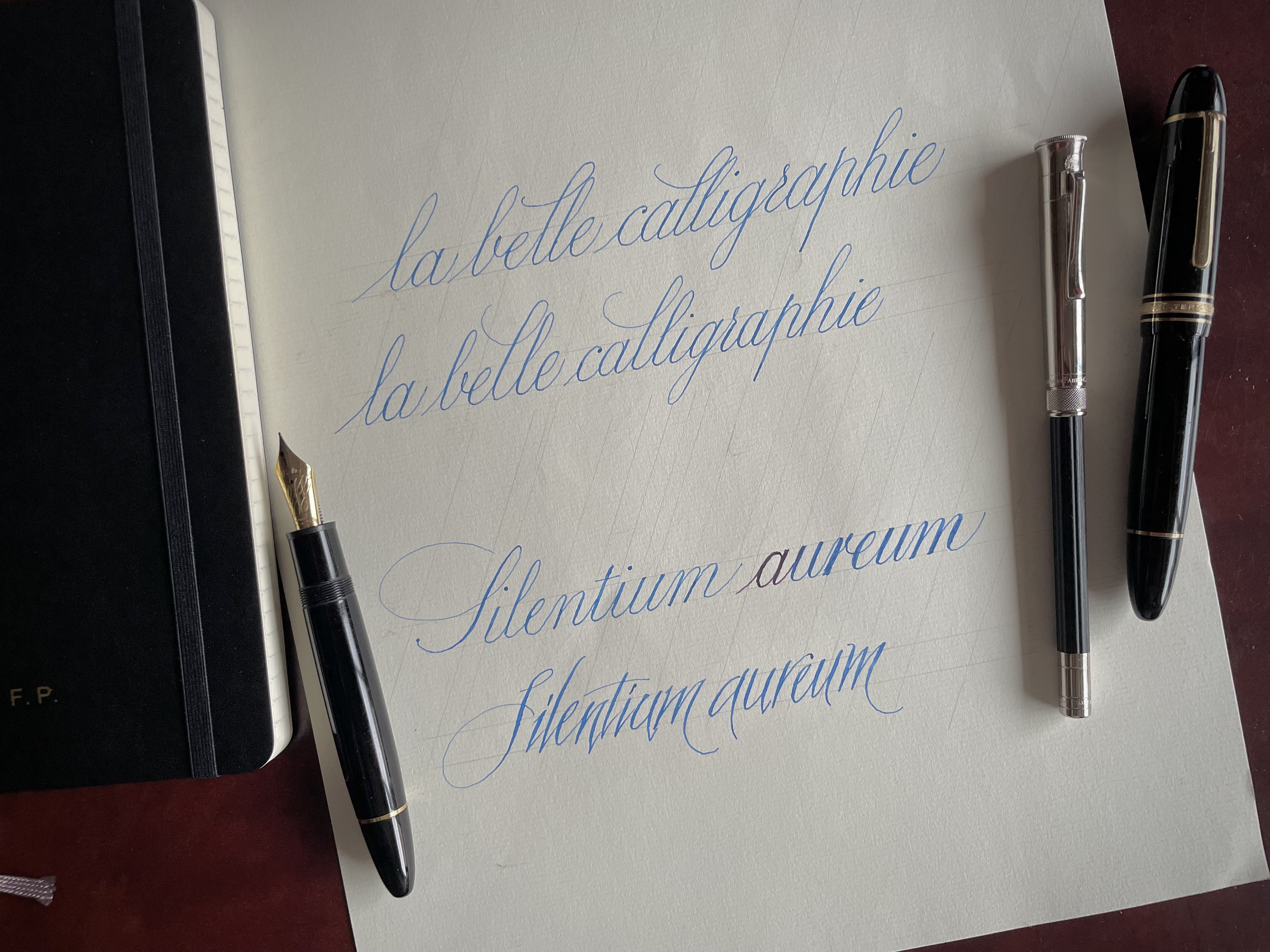 Per me la calligrafia non è mai stata fatta di lunghe sedute di esercizi. Però i miglioramenti sono arrivati con l’assiduità della scrittura. Quindici, trenta minuti al giorno, per lo più la sera, mi sono sufficienti per non perdere il ritmo, osservare i miei errori e correggerli, e divertirmi. Solo ogni tanto, con un progetto alla mano, dedico alla calligrafia più tempo e qualche foglio più speciale.