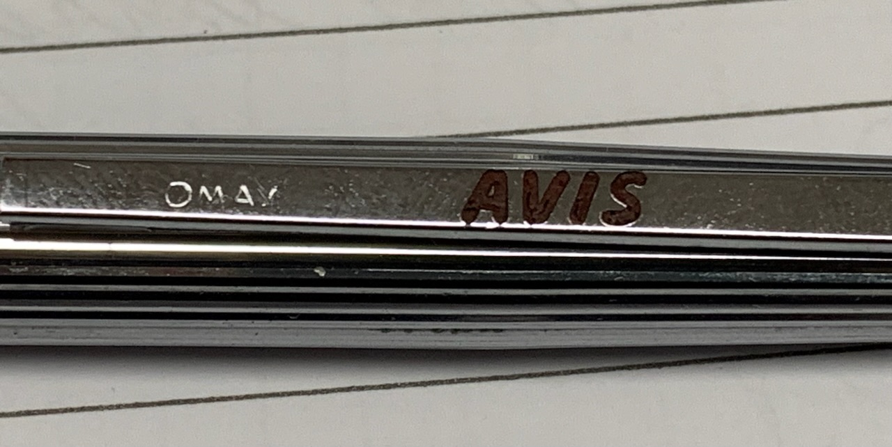 La penna oltre alla scritta OMAS AVIS sulla clip non presenta altri segni identificativi, è tutta in metallo cromato con lavorazione a righe.