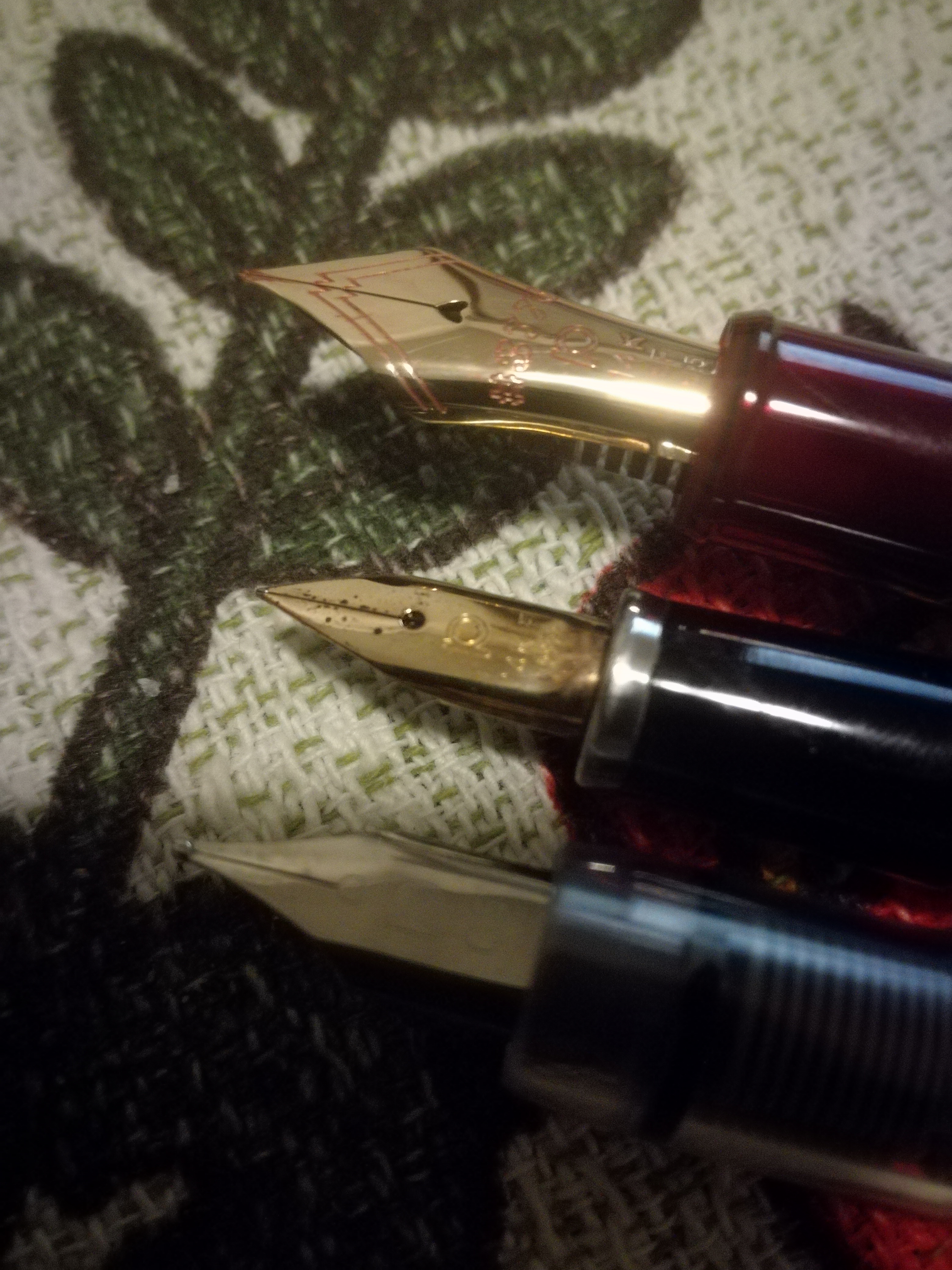 La Vicoh ha un pennino estremamente scorrevole ed estremamente morbido, ma proprio morbido nel senso che si apre con poca pressione. Meraviglioso. E' un M giapponese, non in stile Pilot.