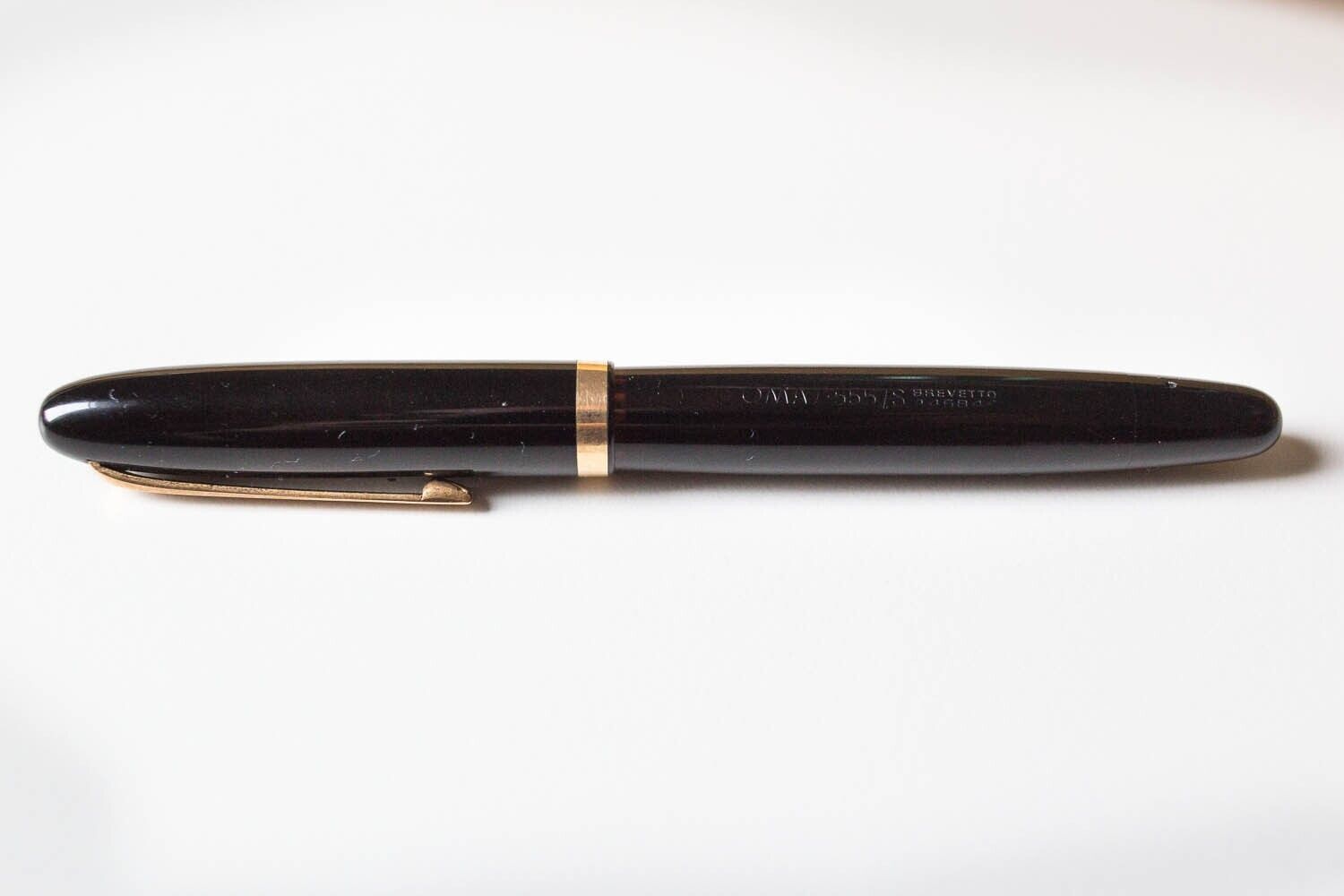 Io ho quella con scritto sopra solamente "Omas Extra" nel primo rigo e "BREV. 445846-464162" nel secondo. Dovrebbe essere del periodo appena precedente e fatta in normale celluloide, nessun problema dei modelli recenti, la mia è in perfetta forma. Immagino che pure la tua non debba avere problemi.