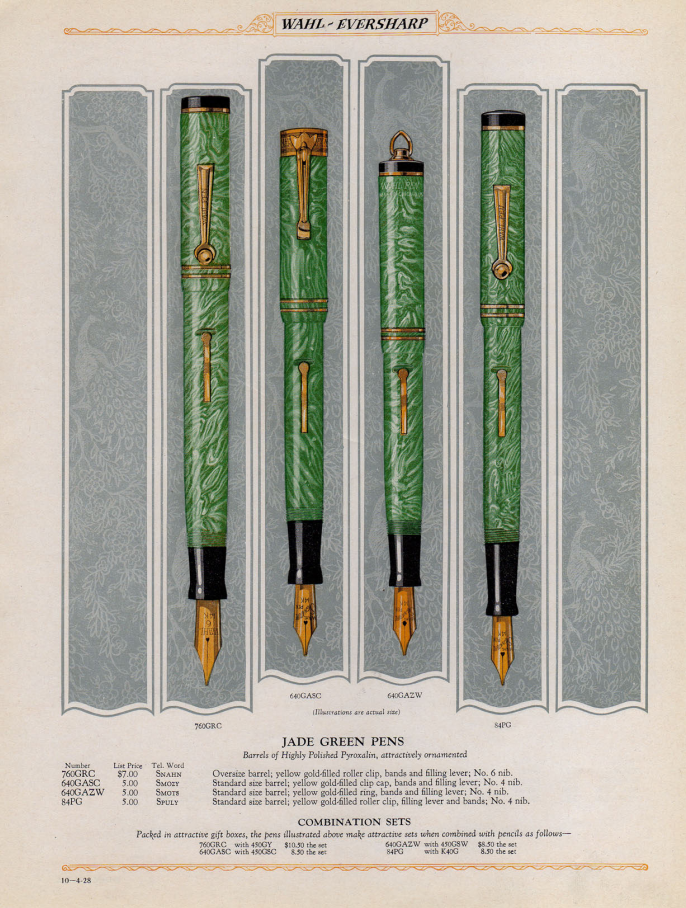 Reputo che questo modello sia antecedente all'ottobre del '28, infatti sulla clip è ancora inciso Wahl Pen piuttosto che Wahl Eversharp come sarà sulle clip dei nuovi modelli introdotti il '29 e, anche, come visibile sullo speciale Eversale di fine '28.