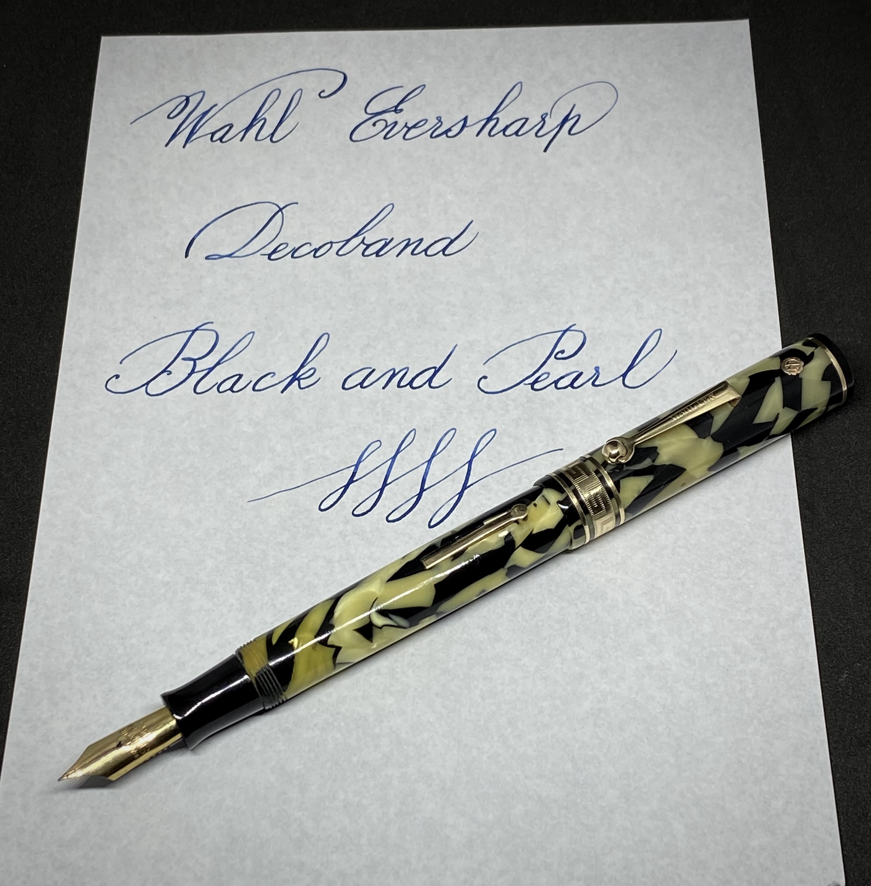 Benché Wahl abbia iniziato dopo altri produttori ad usare la celluloide, è poi stata all'avanguardia nei materiali usati, come appunto questo Black and Pearl che, almeno da quanto sono riuscito a reperire dopo una ricerca in rete, sembra essere stato usato per la prima volta proprio nel 1928 da Wahl e Sheaffer.