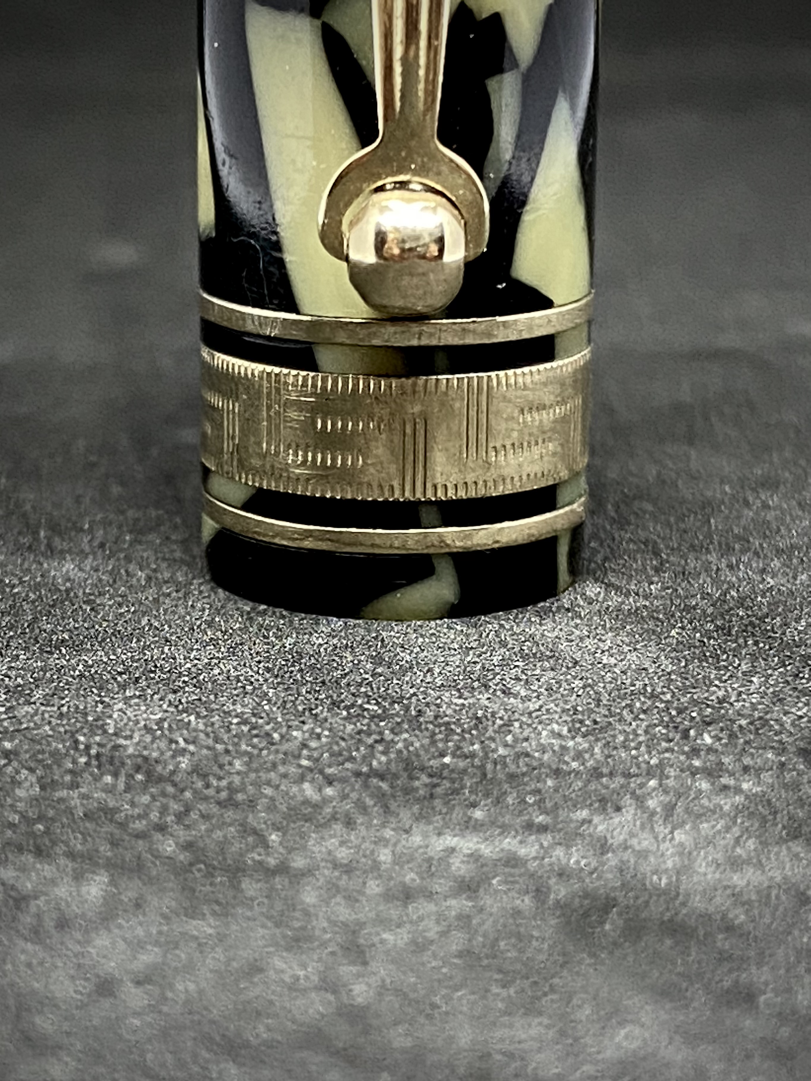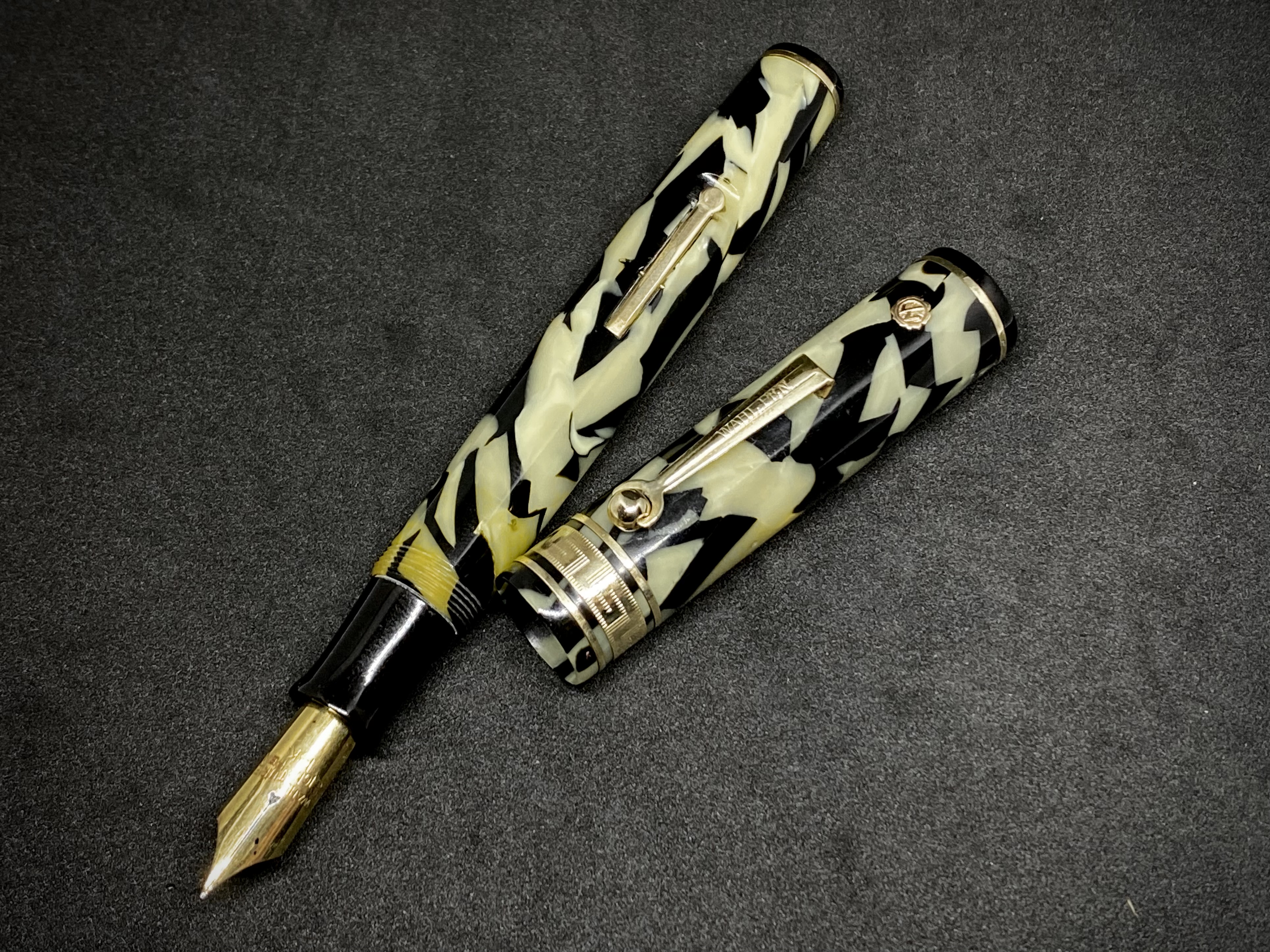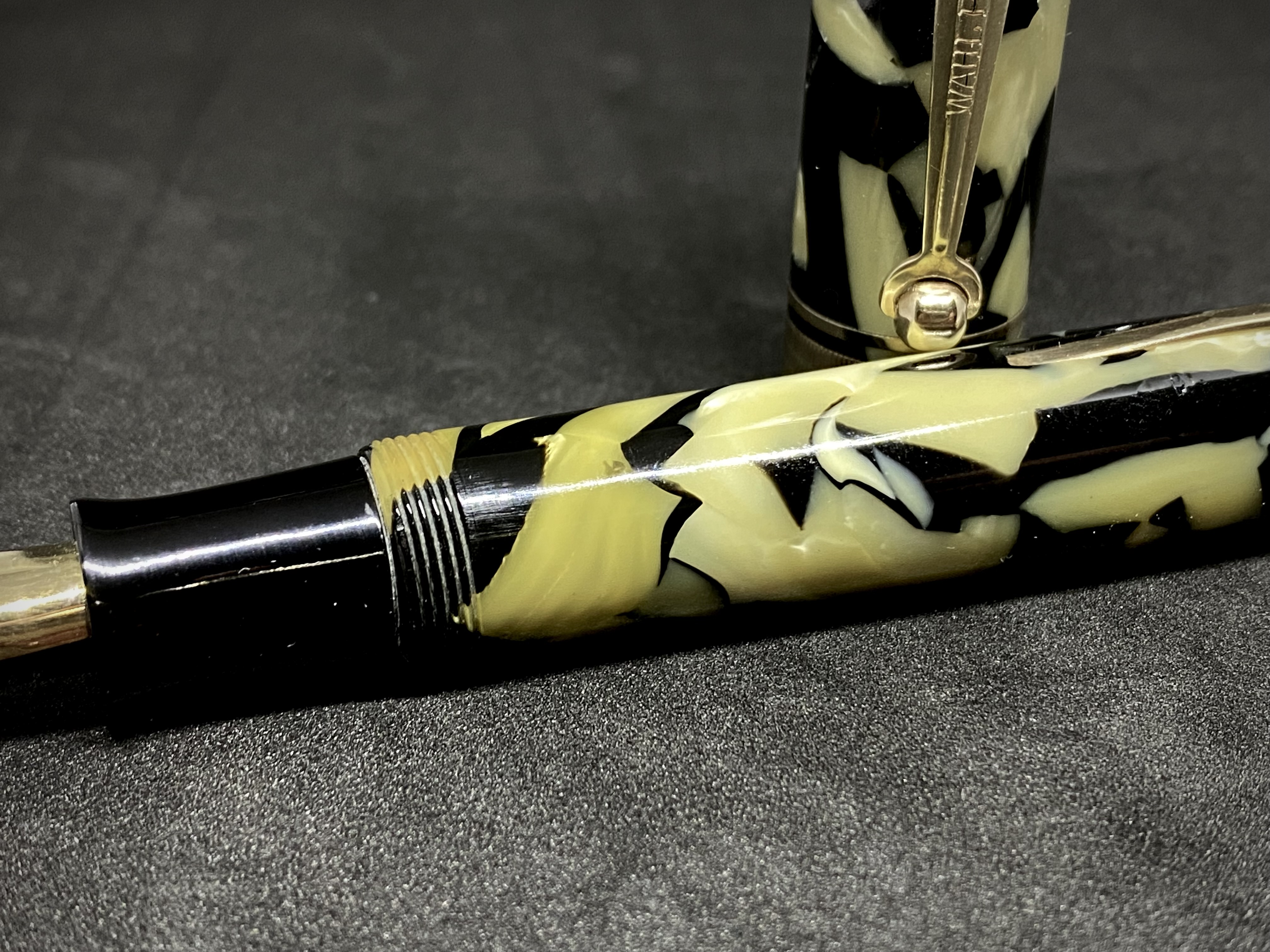 La celluloide di questa penna veniva così descritta da Wahl: "Il nome della colorazione Black and Pearl su questi articoli scaturisce principalmente dalla sua somiglianza con la madre perla[...] E' un composto della pyralin, praticamente indistruttibile, un materiale che manterrà per sempre il suo lustro, anche se soggetto ad un notevole abuso." Purtroppo però il tempo è stato inclemente con la maggior parte di queste penne, in diversi esemplari si sono mostrati problemi di deperimento del materiale. Poi a causa dei sacchetti in latex ed esposizione alla luce, i viraggi verso il marrone son più o meno presenti su praticamente ogni esemplare giunto ai giorni nostri... dopo oltre 90 anni!!