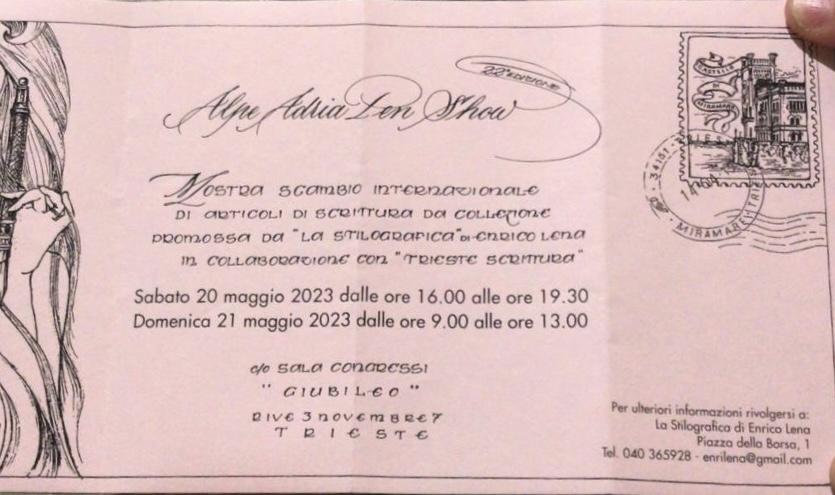 Per caso nel 2023 verrà organizzato il pen show Alpe Adria a Trieste? Ormai è dal 2019 che non ne sento parlare, ma non essendo "social" potrebbe essermi sfuggito.