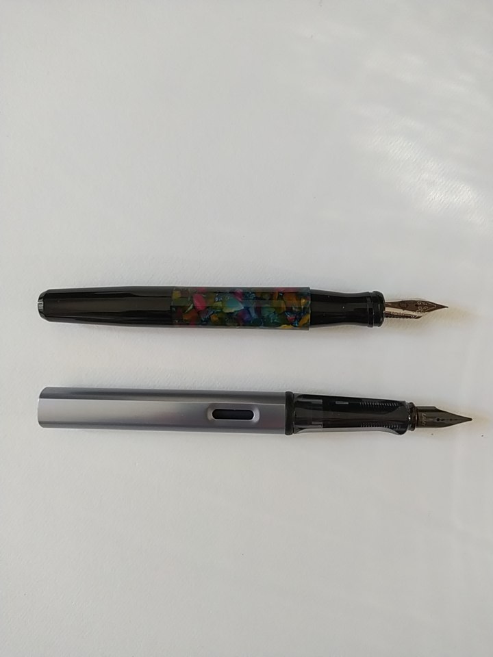 Sono entrambi pennini a cui mi sono dovuto abituare non essendo, almeno per me, di uso istintivo, ma una volta affinato il metodo di scrittura risultano estremamente piacevoli e donano caratteristiche espressive nel tratto davvero notevoli, soprattutto il B.C.I. . Su entrambi il nib master è intervenuto nella riduzione e conformazione della punta in lega.