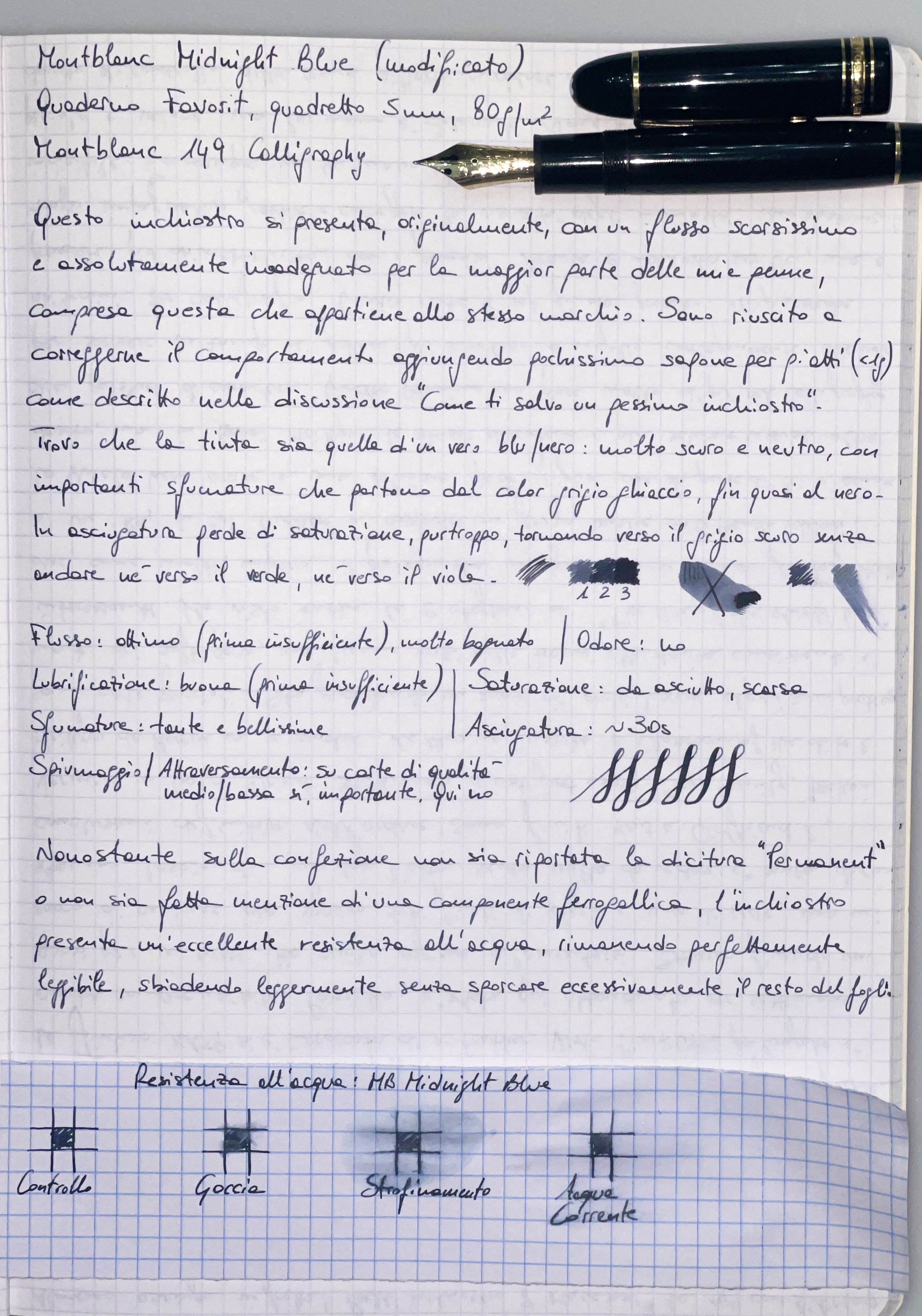 Koten90 ha scritto: giovedì 26 gennaio 2023, 21:39 La carta non è particolarmente assorbente, l’alimentatore generoso e l’inchiostro modificato per essere molto fluido. È sempre un’indicazione di massima se non si standardizzano gli strumenti. Sulla carta da acquerello si asciuga in 3 secondi o poco più. Sulla Rhodia magari ci sta 3 minuti