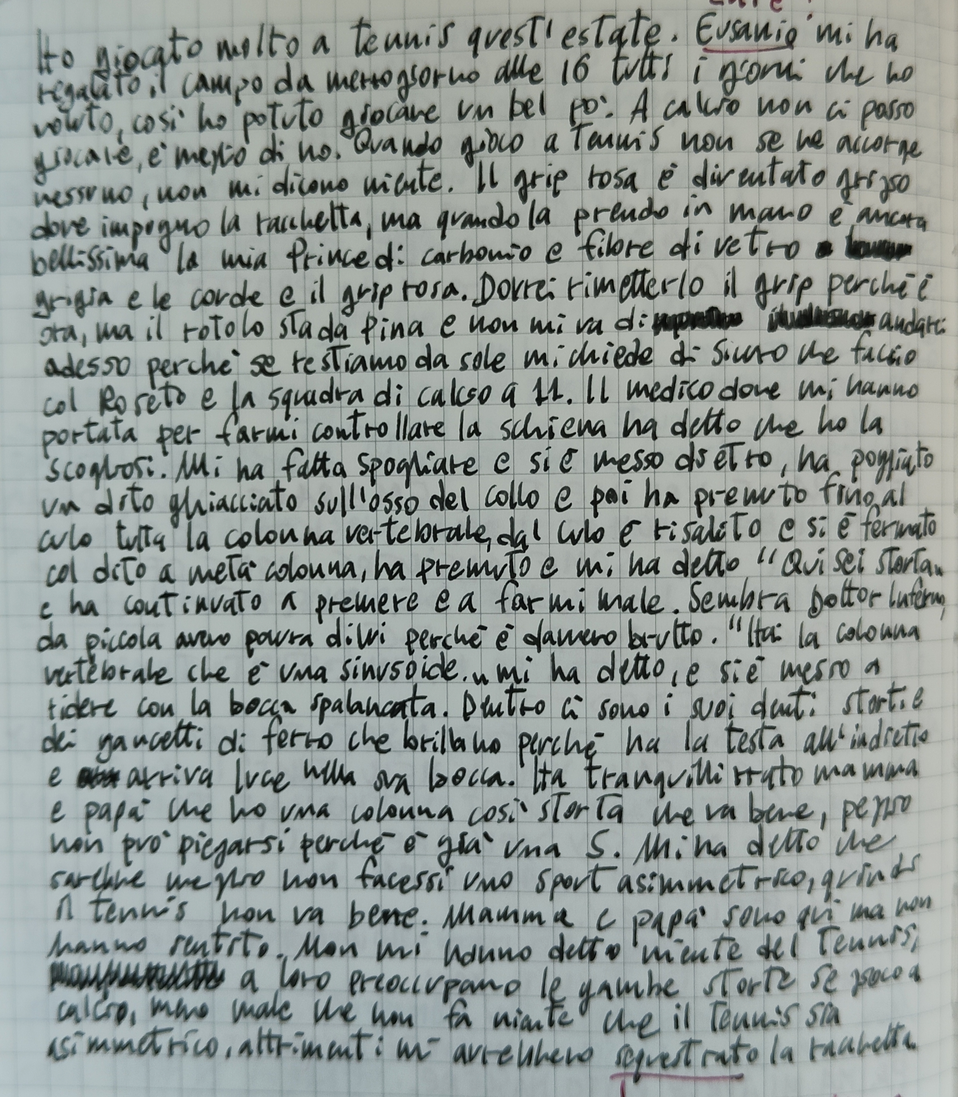 Con il CSI Broad mi ero subito trovata bene: era della misura che uso di solito e ho iniziato a scriverci senza nessun periodo di adattamento. L'Architect ha richiesto un periodo di apprendimento più lungo: non per la senzazione di scrittura, da subito apprezzata, ma per la memorizzazione dell'inclinazione che doveva rimanere costante.