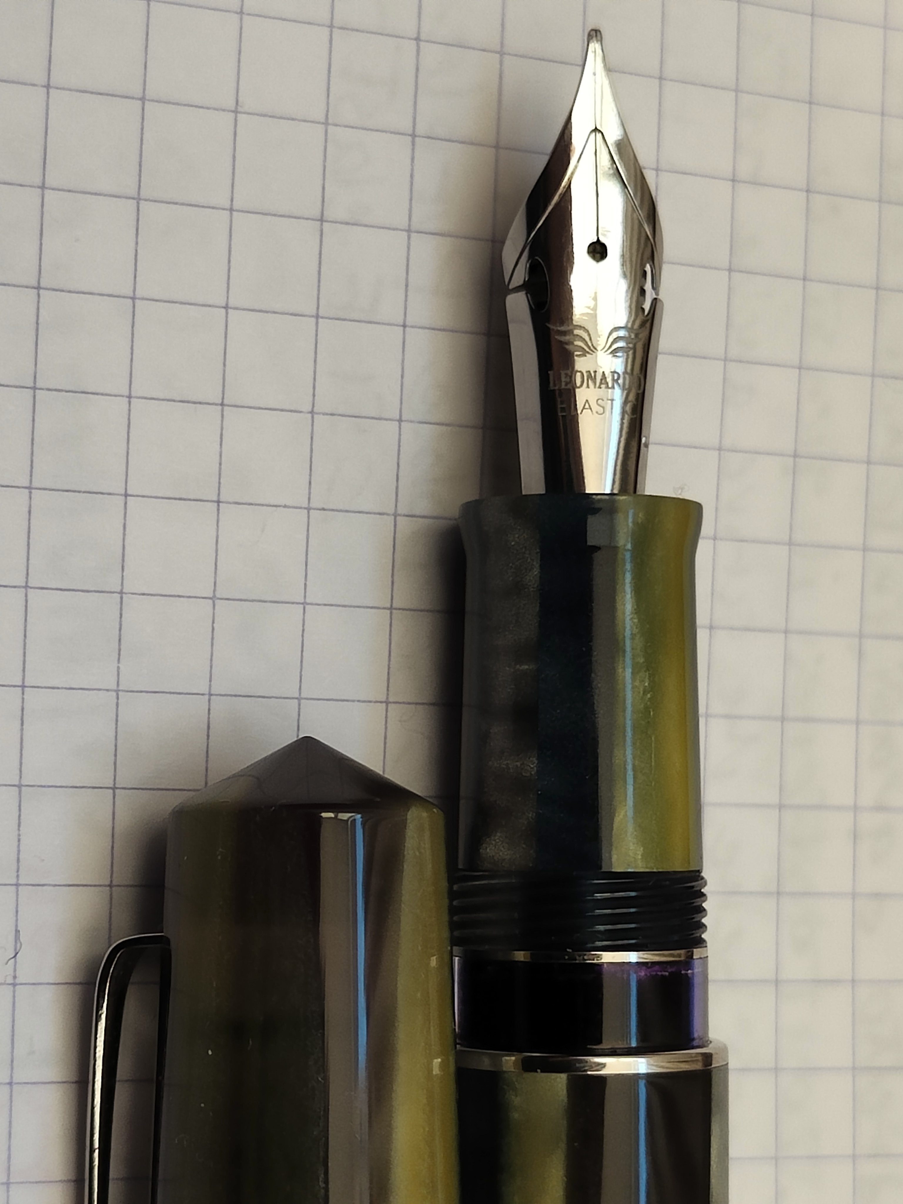 Al di là degli aspetti estetici e funzionali, quello che davvero mi ha colpita è il pennino. Per la Baobab ho scelto un CSI F elastic, che ho acquistato più per perplessità che per convinzione. Non avevo mai sperimentato un elastico JoWo prima e la misura dell'unico CSI in mio possesso era B. Automedonte mi aveva però fatto provare le sue Leonardo con pennini sottili nonché con un CSI M. Di quest'ultimo mi aveva conquistato il feedback, mentre dei fini mi era piaciuta molto la sensazione di scrittura. Così ho dato retta al mio istinto, che con i precedenti di "scatole chiuse" ha un discreto tasso di successo, ed ho optato per il CSI F Elastic. Nel caso di Leonardo, la scelta di ordinare direttamente dal produttore è accompagnata dal vantaggio di poter fornire le specifiche per una "rifinitura" del grinding in base al proprio gusto: io ne ho approfittato per chiedere un pennino con feedback molto pronunciato, che graffiasse la carta.