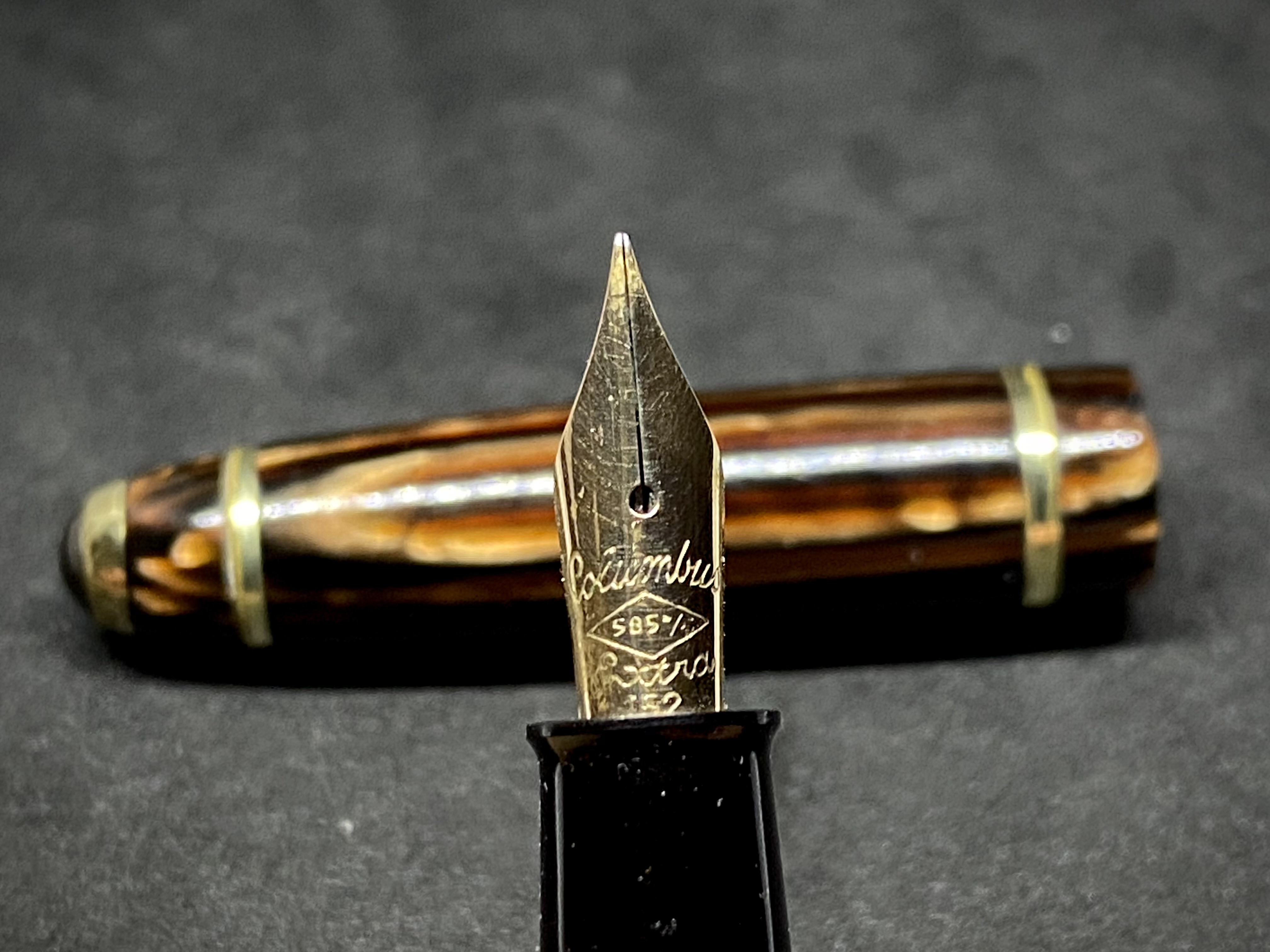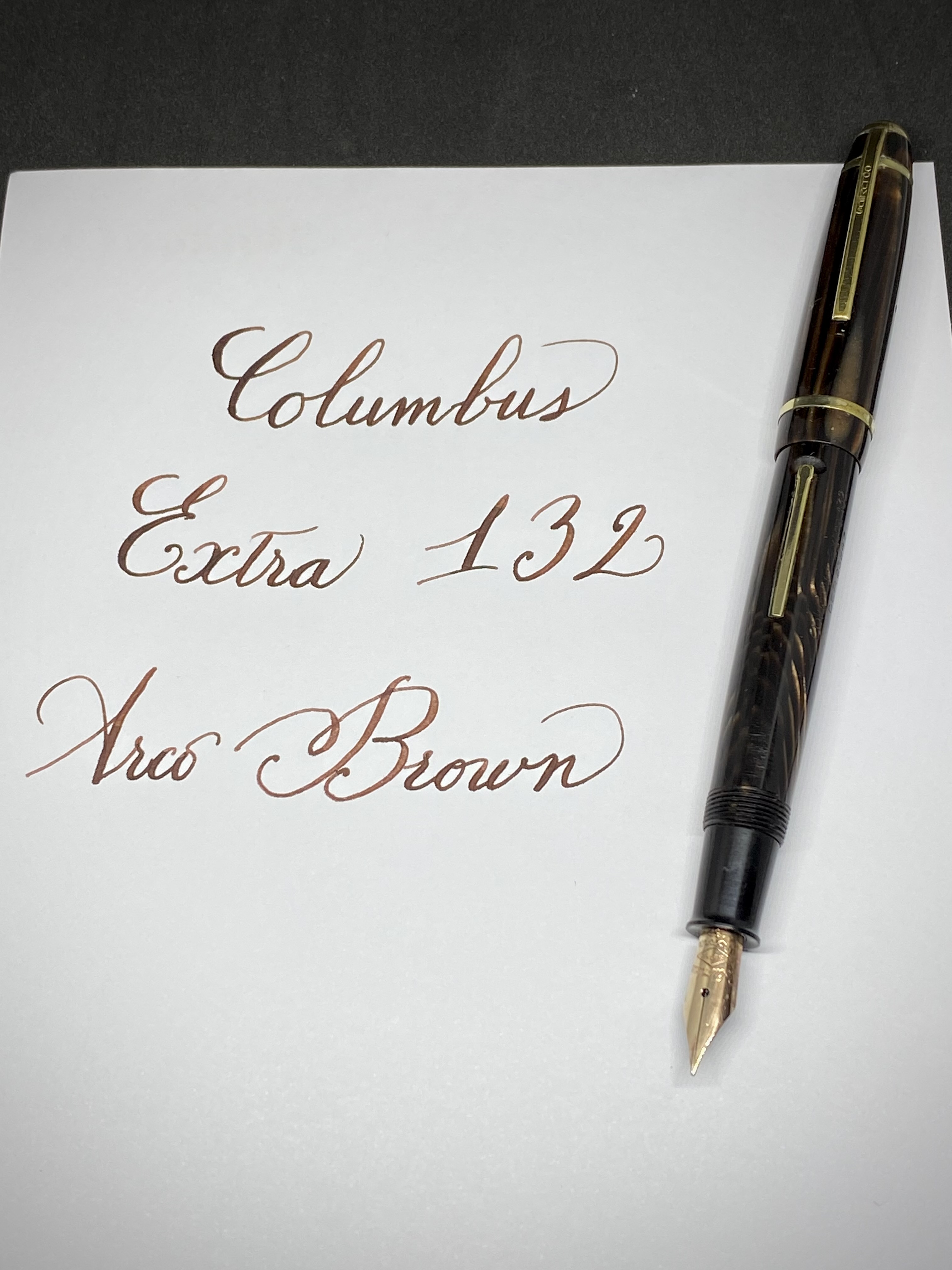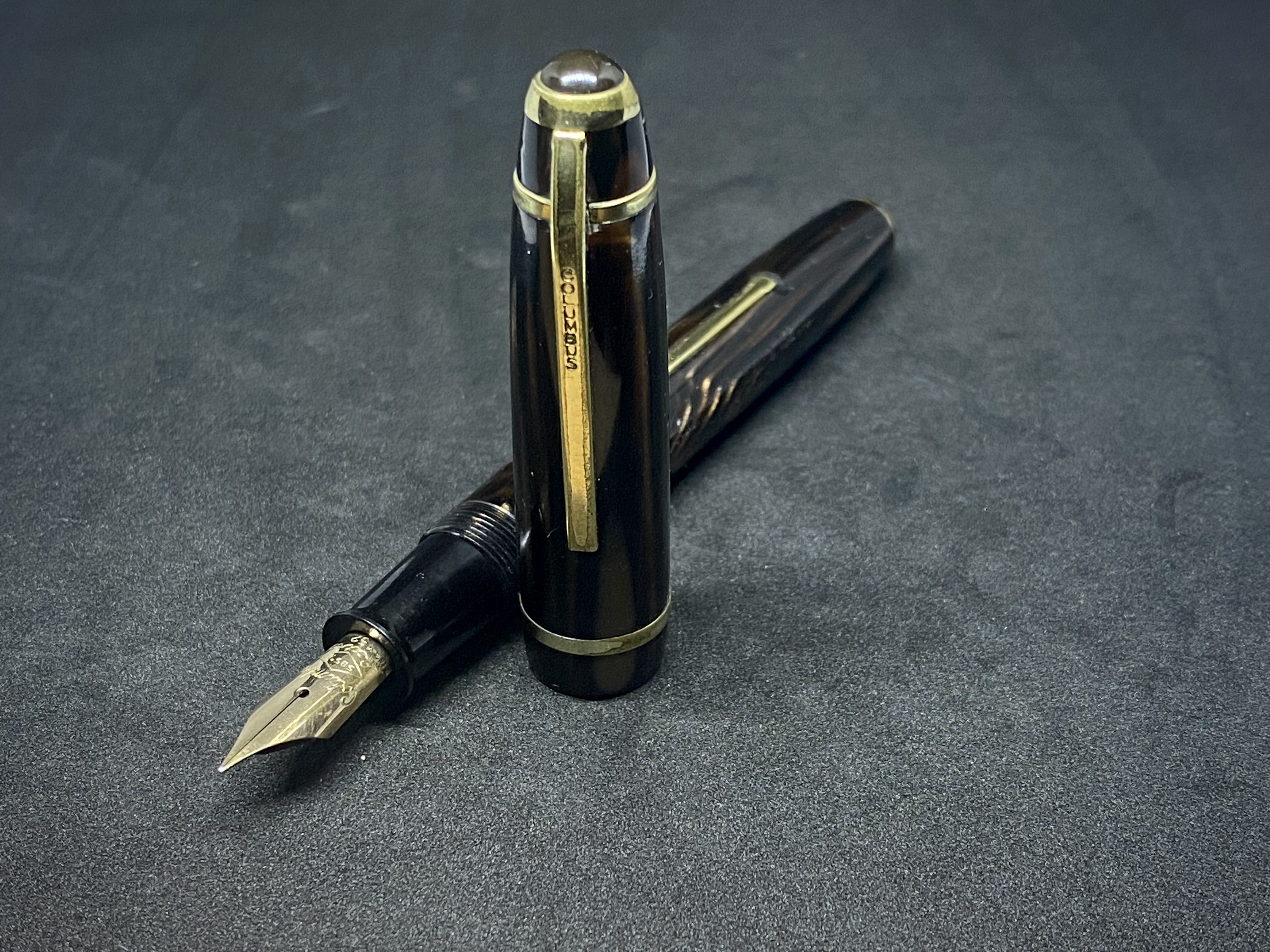 Queste Columbus secondo me sono penne di ottimo livello e gradevolissime, con celluloidi talvolta - come questa - molto belle. Ho 134 ma nessuna in arco brown…