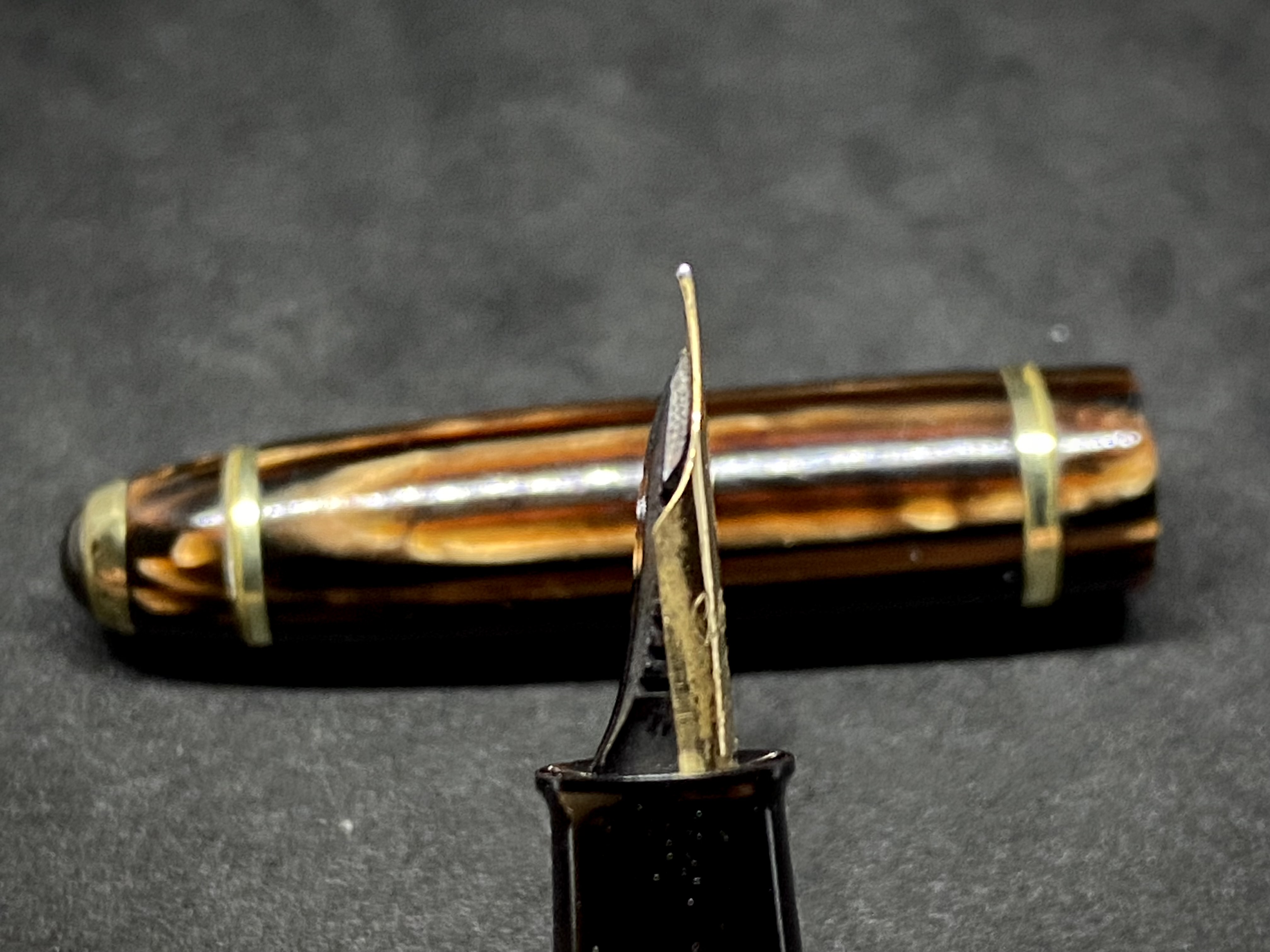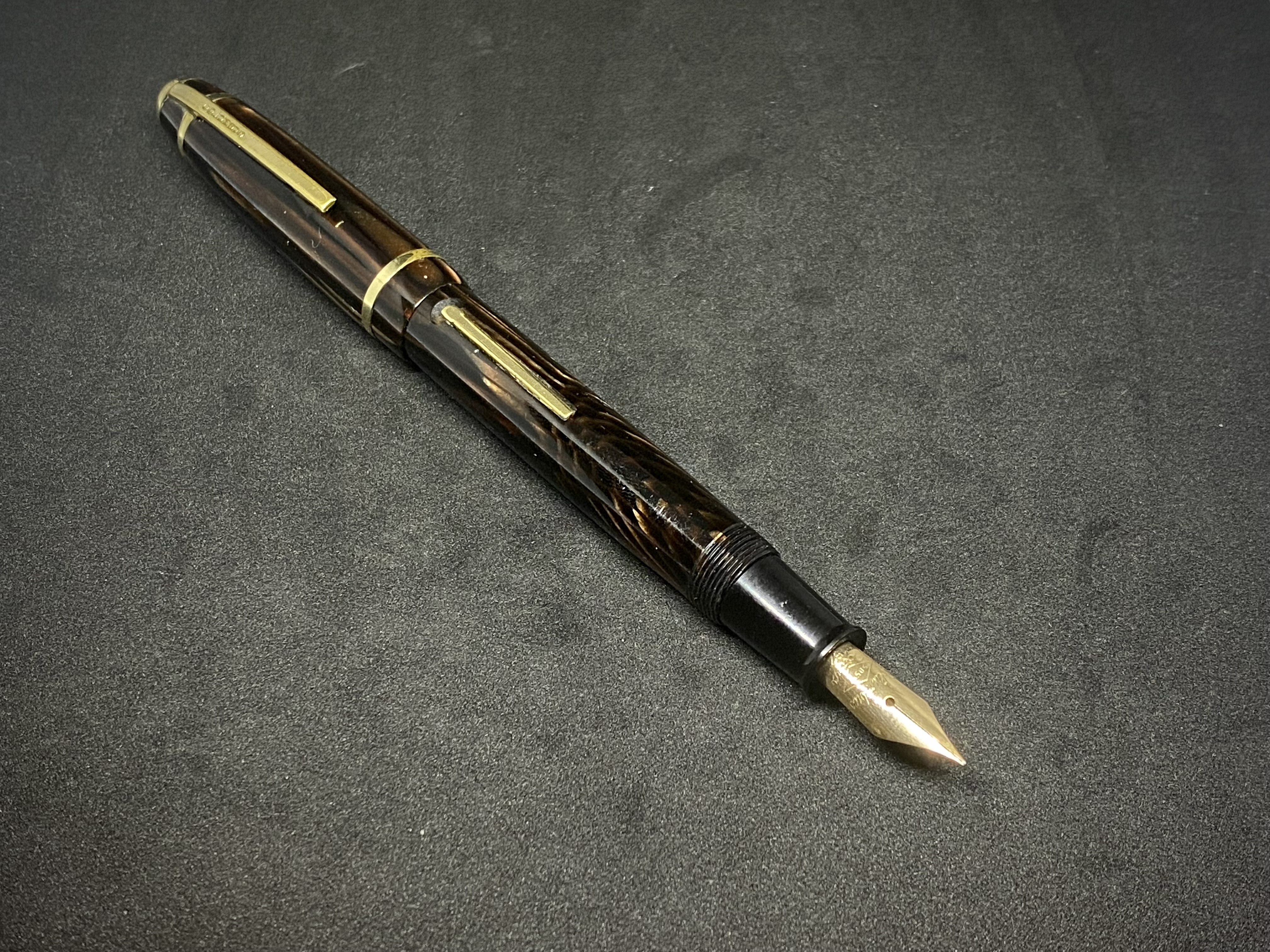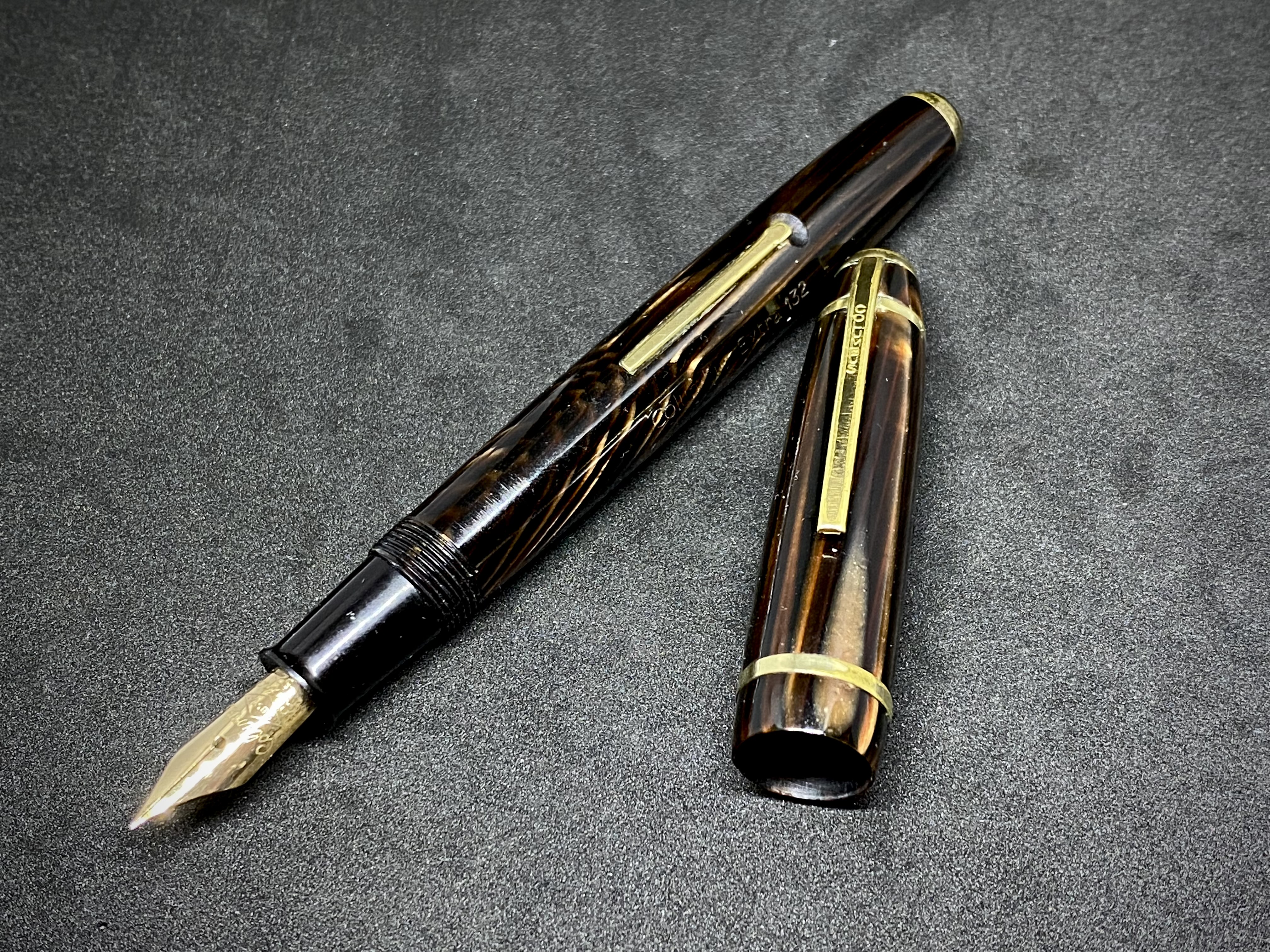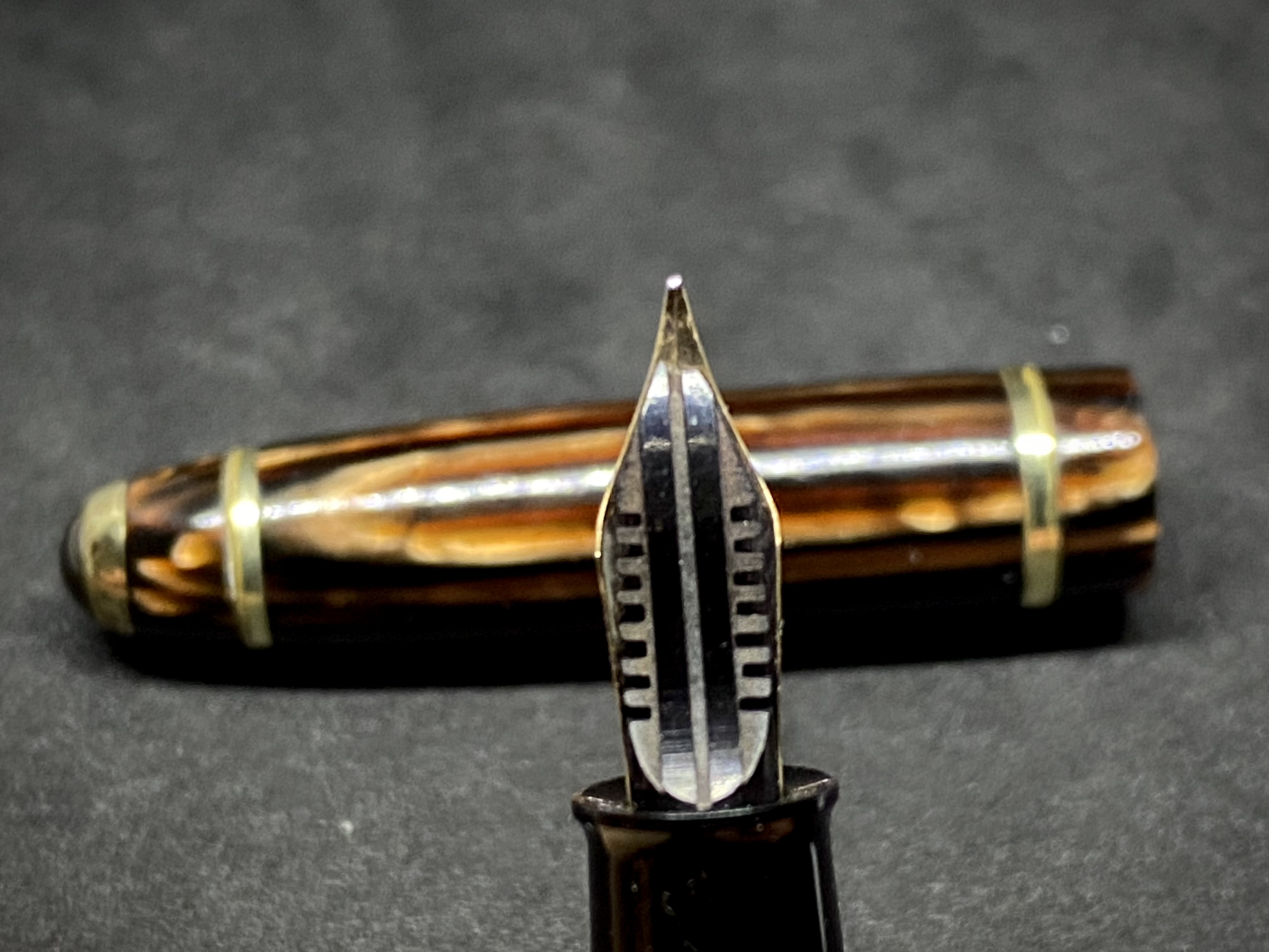Queste Columbus secondo me sono penne di ottimo livello e gradevolissime, con celluloidi talvolta - come questa - molto belle. Ho 134 ma nessuna in arco brown…