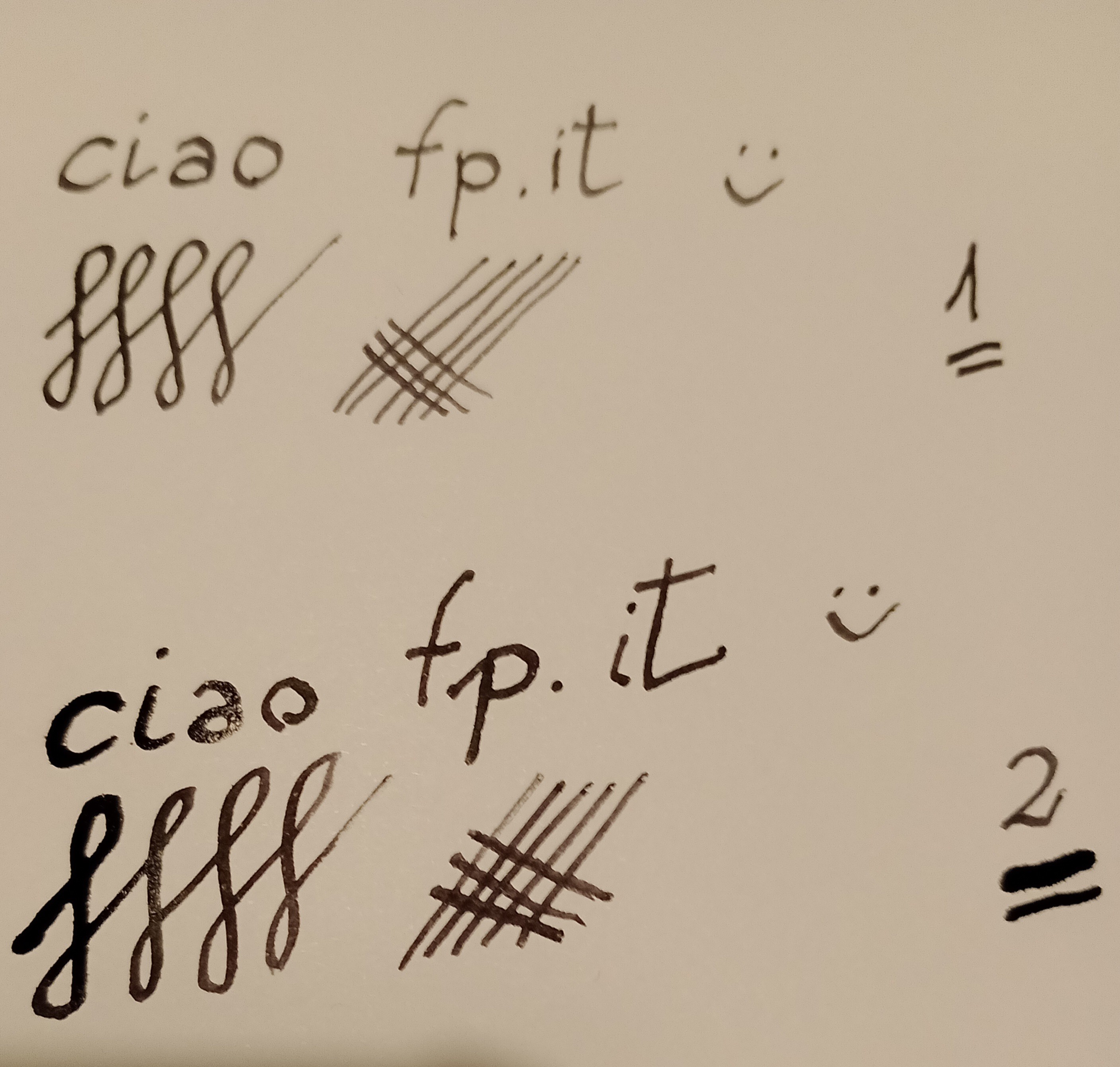 Visto che si è lungamente disquisito sul valore delle prove di scrittura, nella foto (orrenda) qui sotto si possono vedere i risultati ottenuti provando per intingimento due pennini.