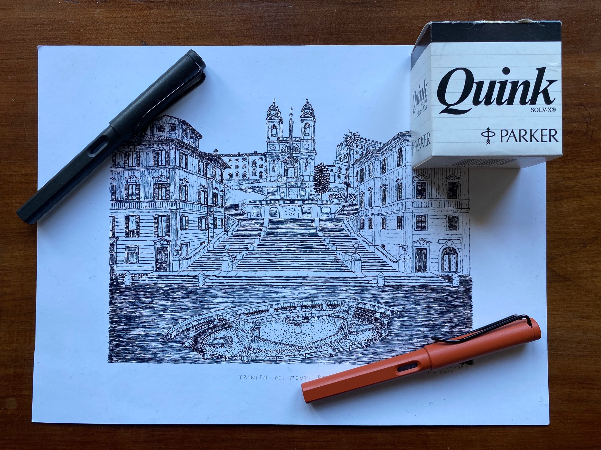 L'ho realizzato su carta Fabriano F4, utilizzando le mie Lamy Safari EF ed F, nonché inchiostro Parker Quink Black..