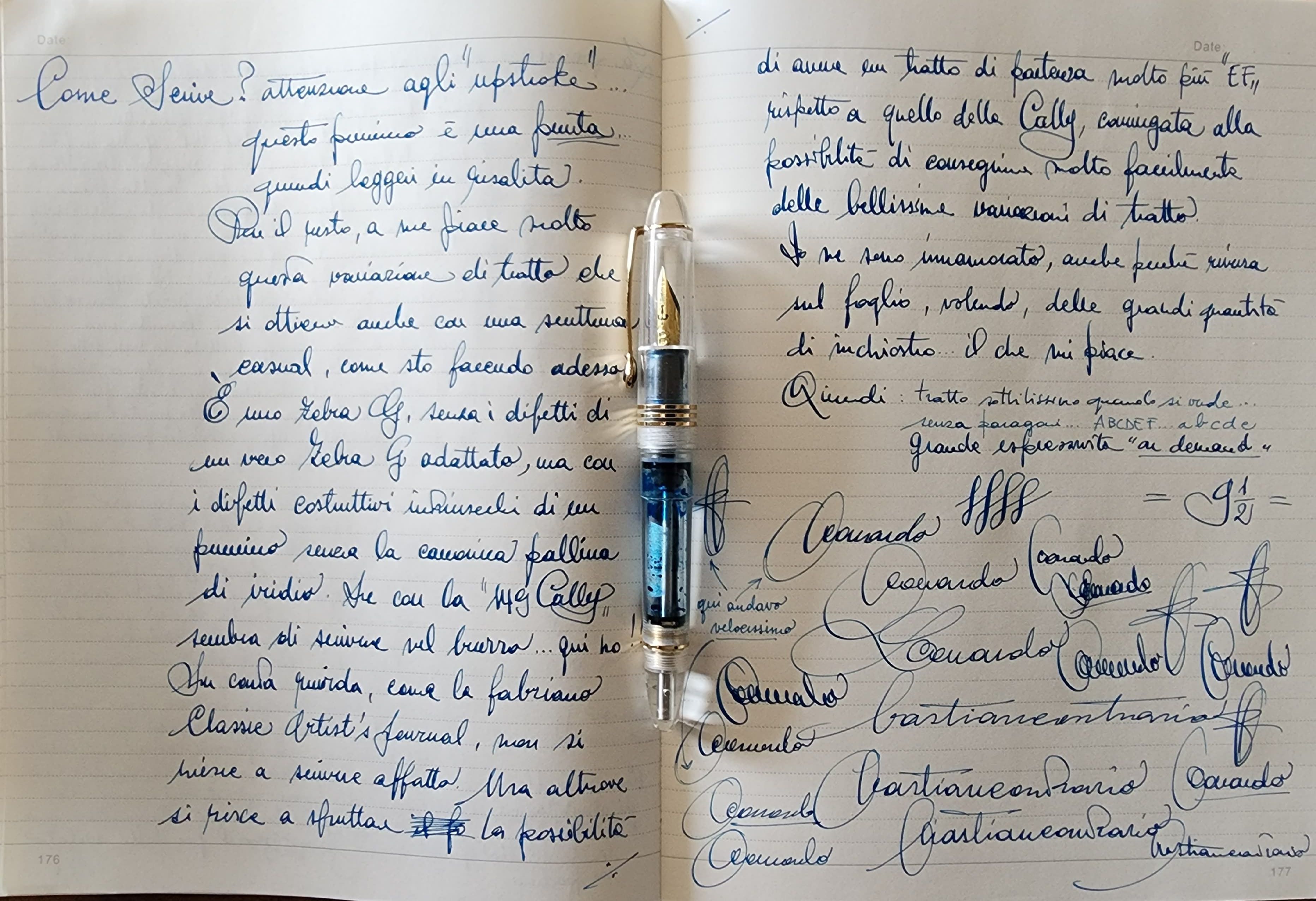 Ovviamente bisogna prendere la mano nei tratti di risalita (upstrokes, come dicano l'ingresi)...le prime volte si gratta, si graffia...ma prenderci un po' di mano vale la bellezza delle variazioni di tratto (a mio modesto e opinabilissimo parere).