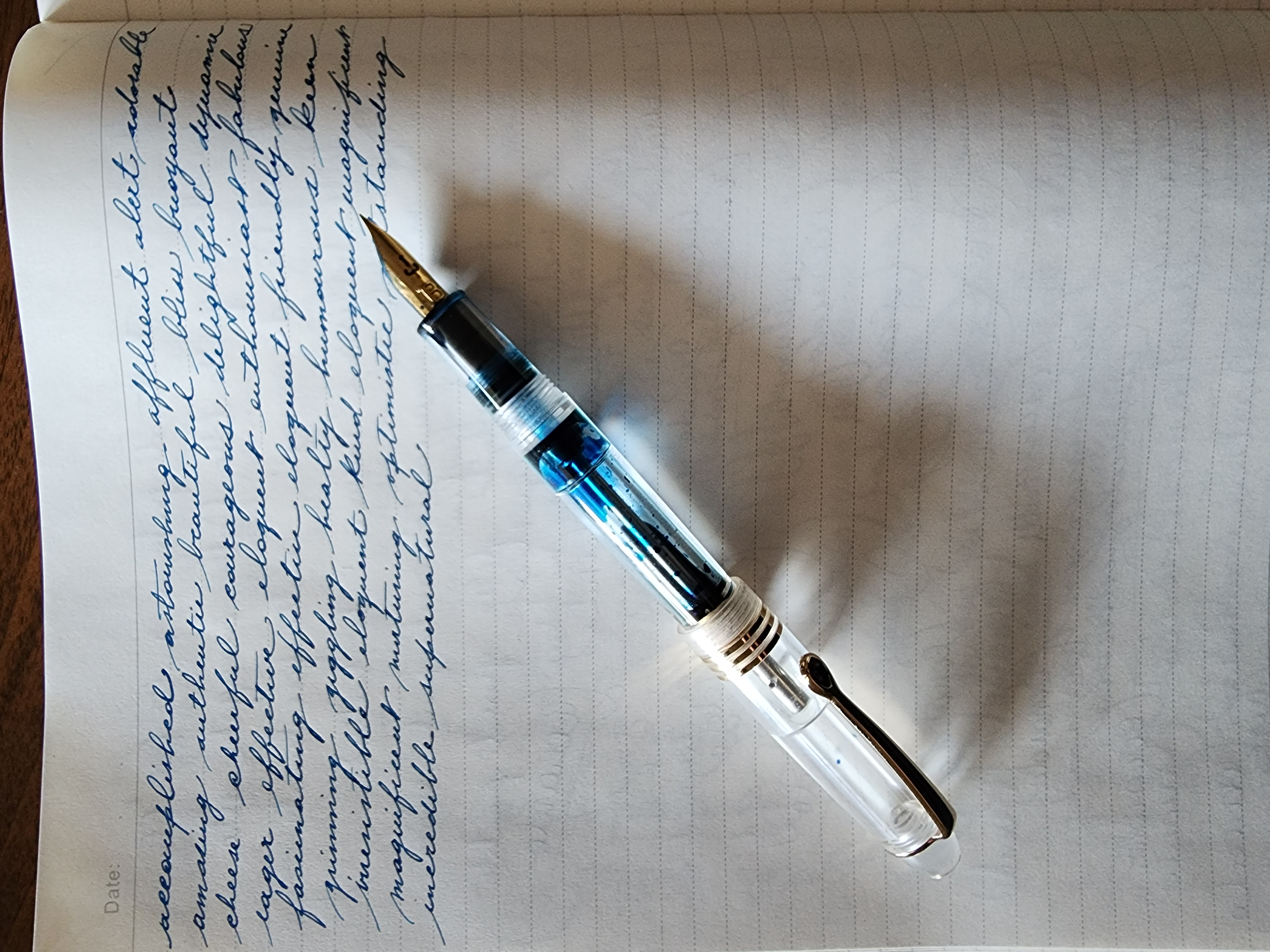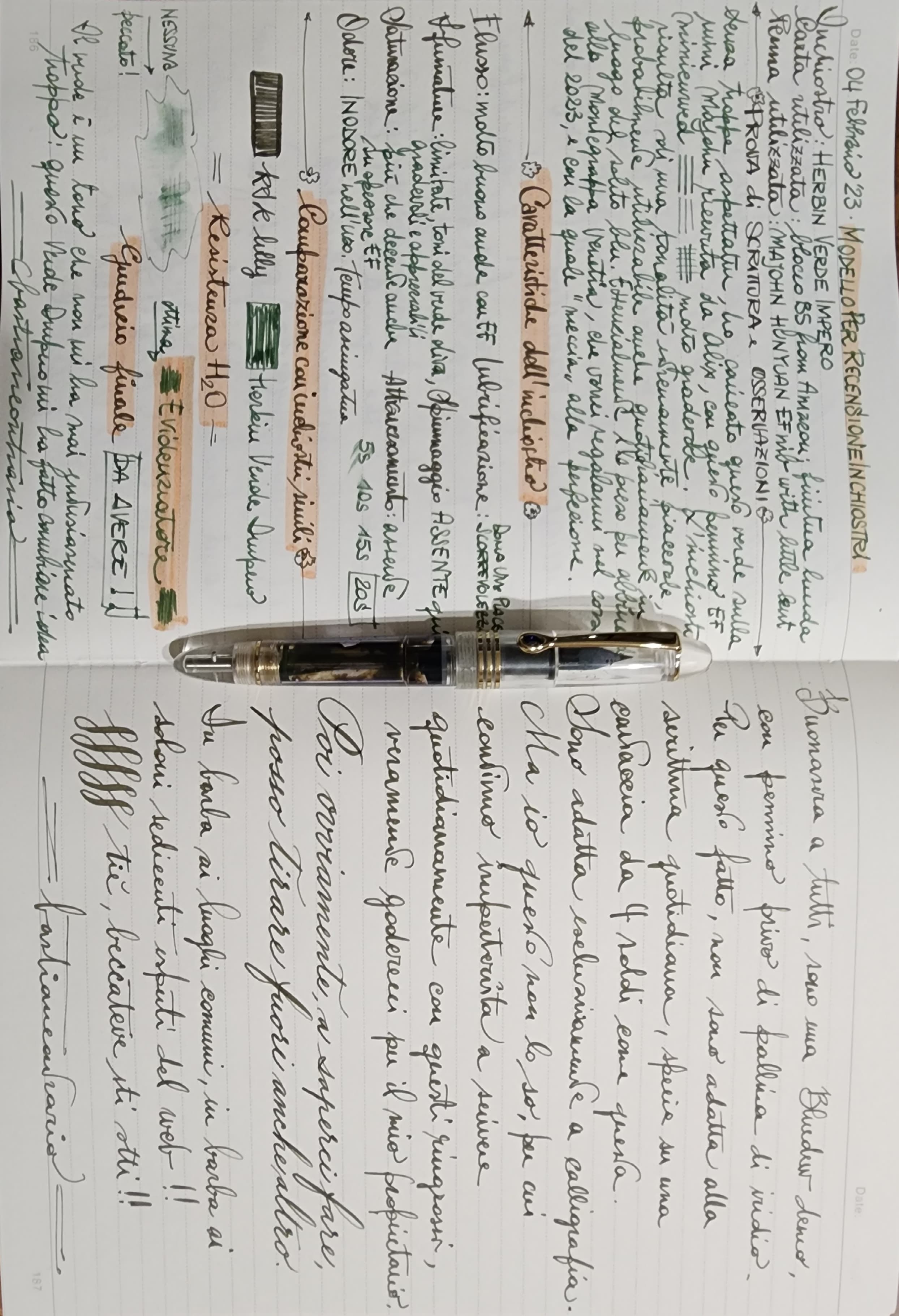 230 finita (ma con ben 3 pennini flessibili/alimentatori inclusi, oltre al fine di serie) non é poco. ma a me le demo piacciono, e mi piace come scrive.