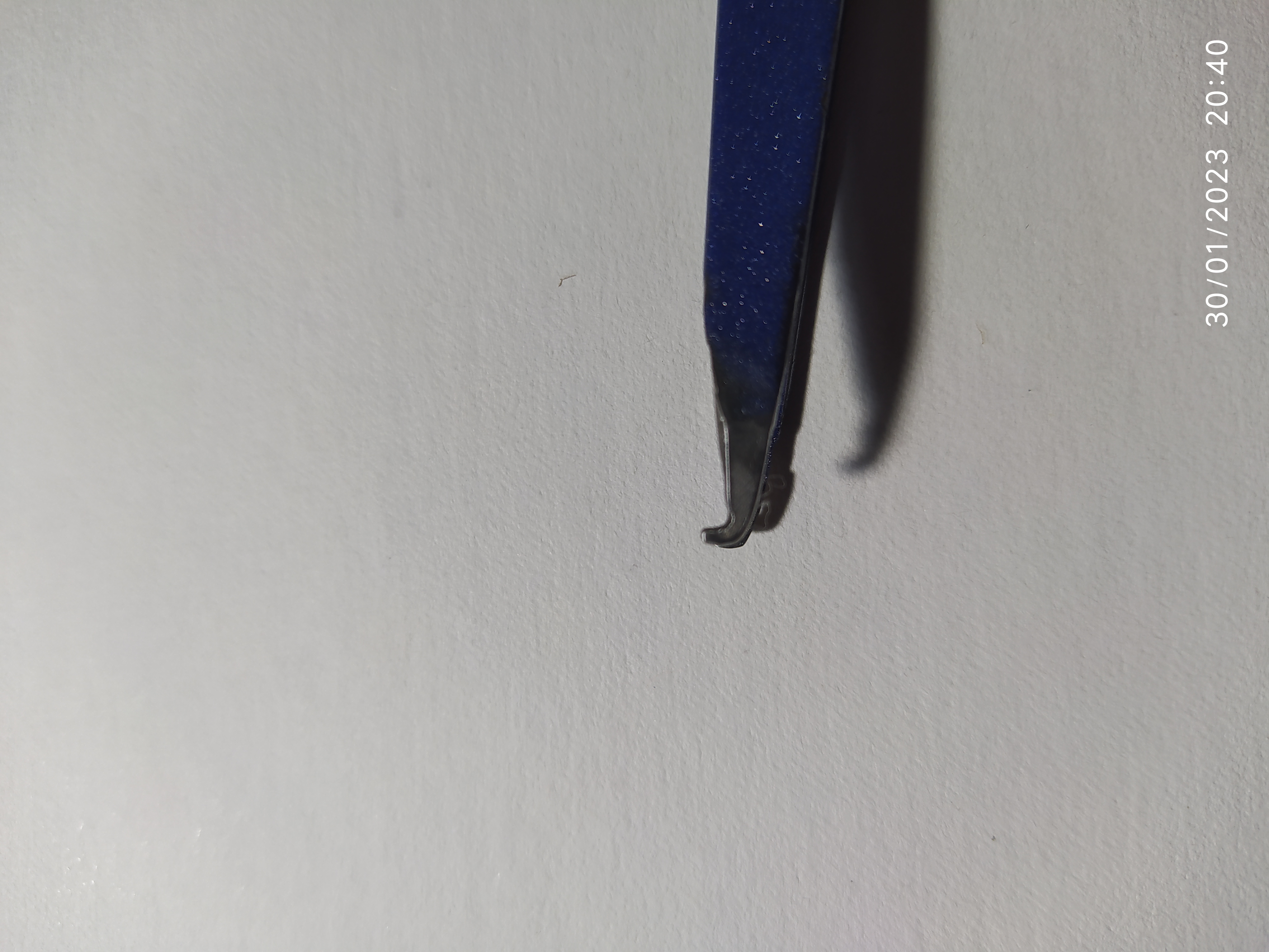 Ho usato una pinzetta per cosmesi avente i terminali piatti come quella in foto. L'altra foto mostra gli utensili che ho usato, in ordine cronologico di impiego dall'alto verso il basso, applicati al dremel. Il feltrino con pasta abrasiva per rifinire e la lima l'ho usata per lo sgrosso iniziale e la rifinitura finale con avvolta sopra un foglietto di carta abrasiva 2000. Spero di essere stato utile.