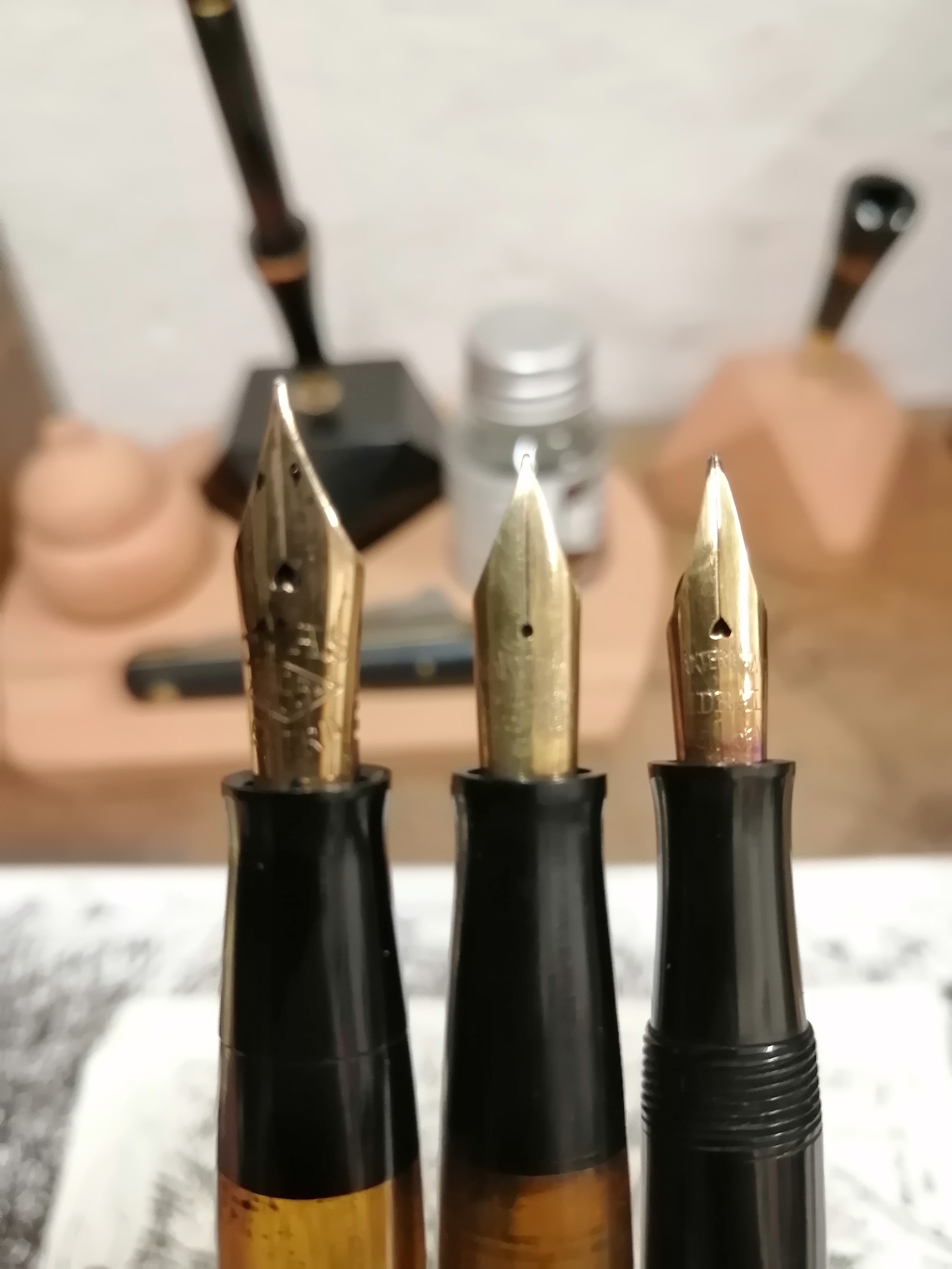 Mentre è abbastanza assodato che la standard montasse un pennino n 17 (corrispondente per dimensioni ad un pennino di una waterman 56) e la oversize un n 18 (corrispondente per dimensioni al pennino di una waterman 58), non ho trovato in rete fonti sul numero presente sul pennino della Lady (corrispondente ad un pennino di una waterman 52 per dimensioni, come allegato in foto, accanto anche ad un pennino omas extra).