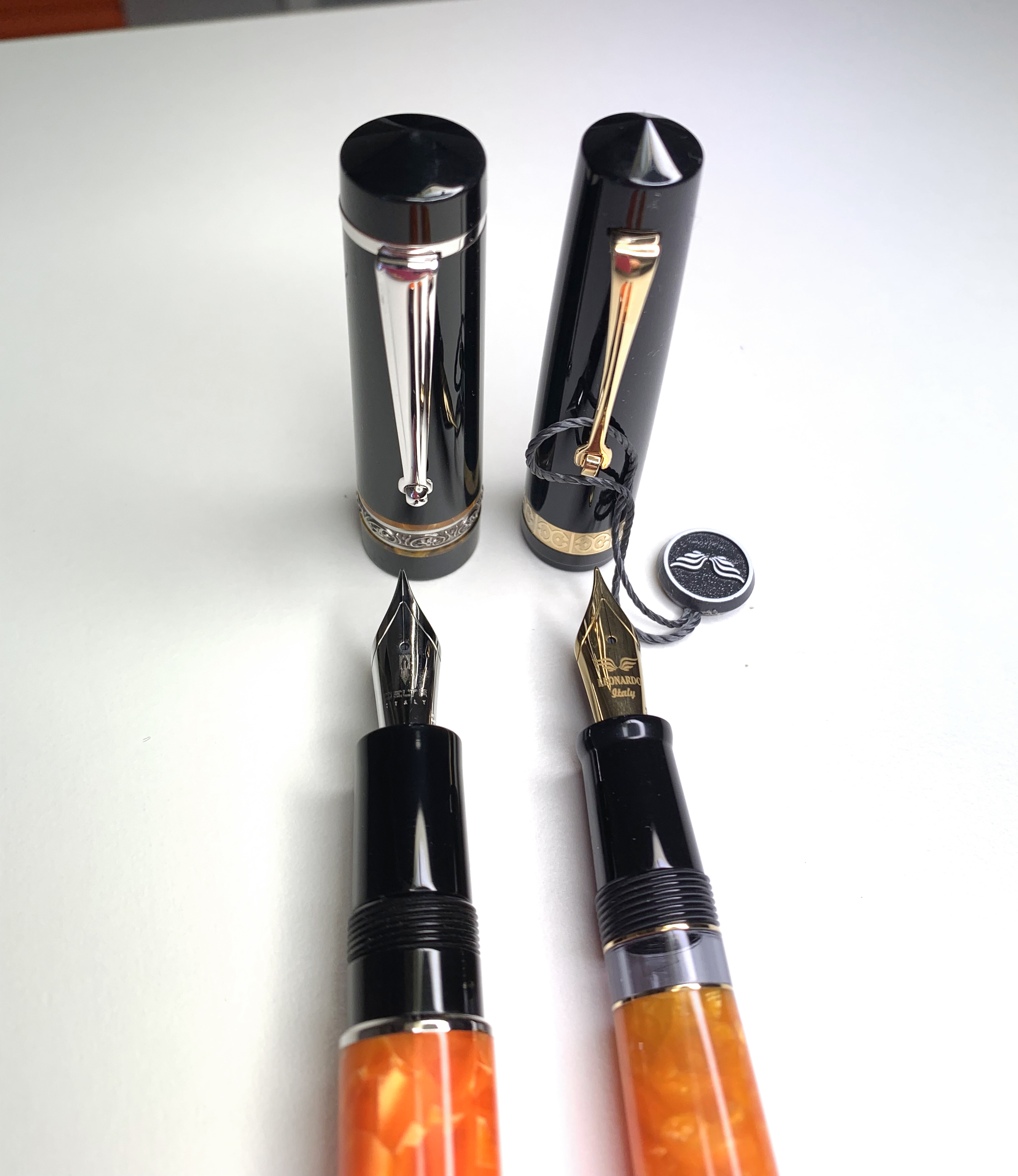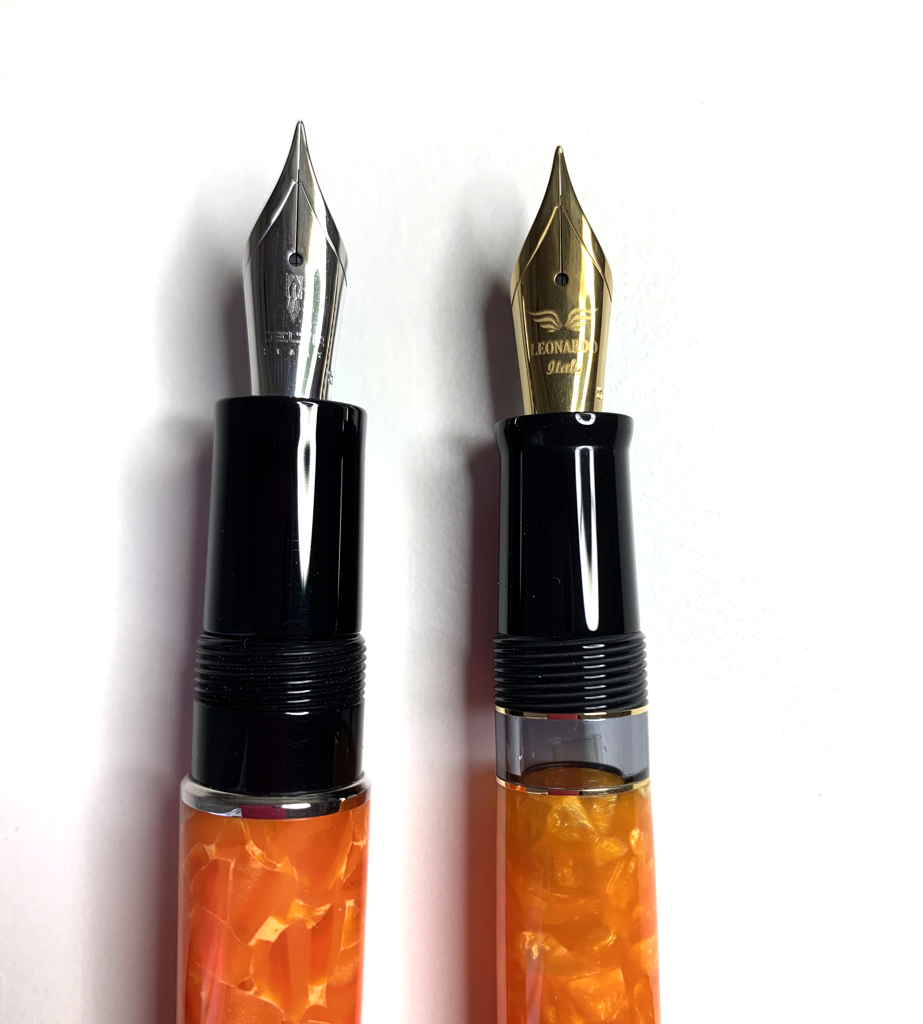 Come fascetta, io devo dire che preferisco la Delta. Ma la Leonardo ha caricamento a stantuffo, mentre la Delta è a cartuccia/converter. I pennini mi sembrano gli stessi. :D
