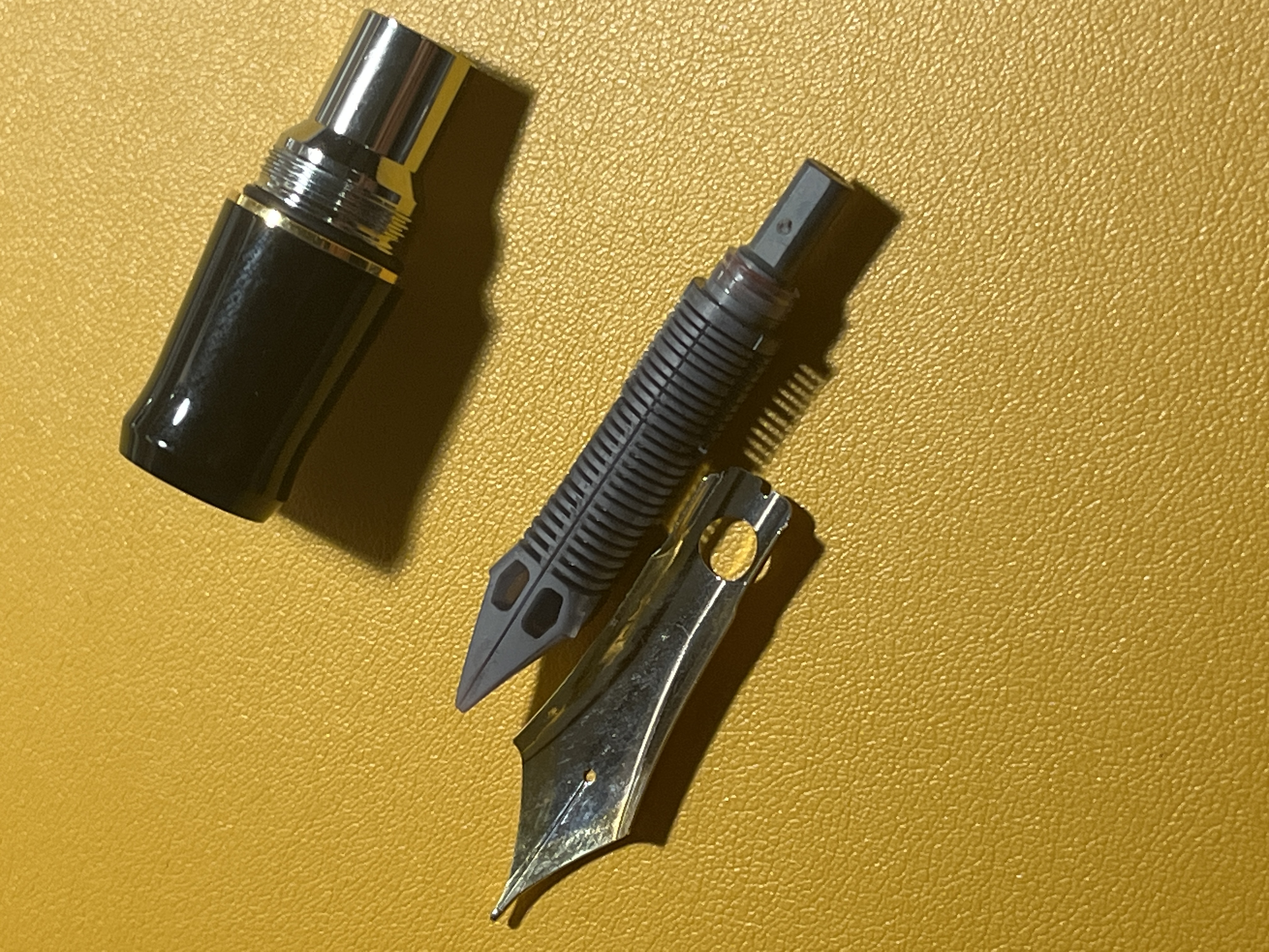 Grazie della condivisione. Veramente molto bella. E' da molto che stò pensando a questa penna. Però quello che trovo inconcepibile che su un oggetto di tale livello, ancor più dei segni dello stampo sulla filettatura, è l'accoppiamento tra sezione scrivente e fusto, metallo su resina con madrevite alla stessa altezza della filettatura esterna per il cappuccio; ed inoltre con la vite della sezione scrivente, in metallo, con appena tre giri di filettatura. Non dico che avrei preteso soluzioni come la Man 100 o Montblanc Boheme ma certamente la potevano progettare come la Duofold per contenere il peso e nel contempo incrementere la robustezza . Sono piccoli dettagli. Rimane comunque una magnificienza, complimenti per l'acquisto .