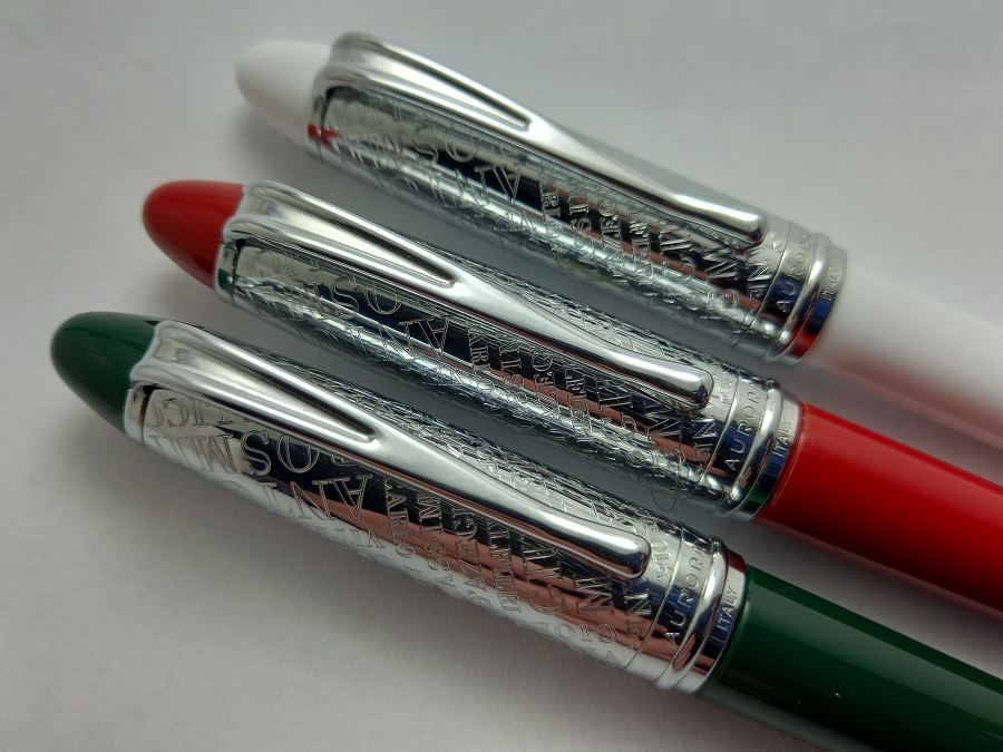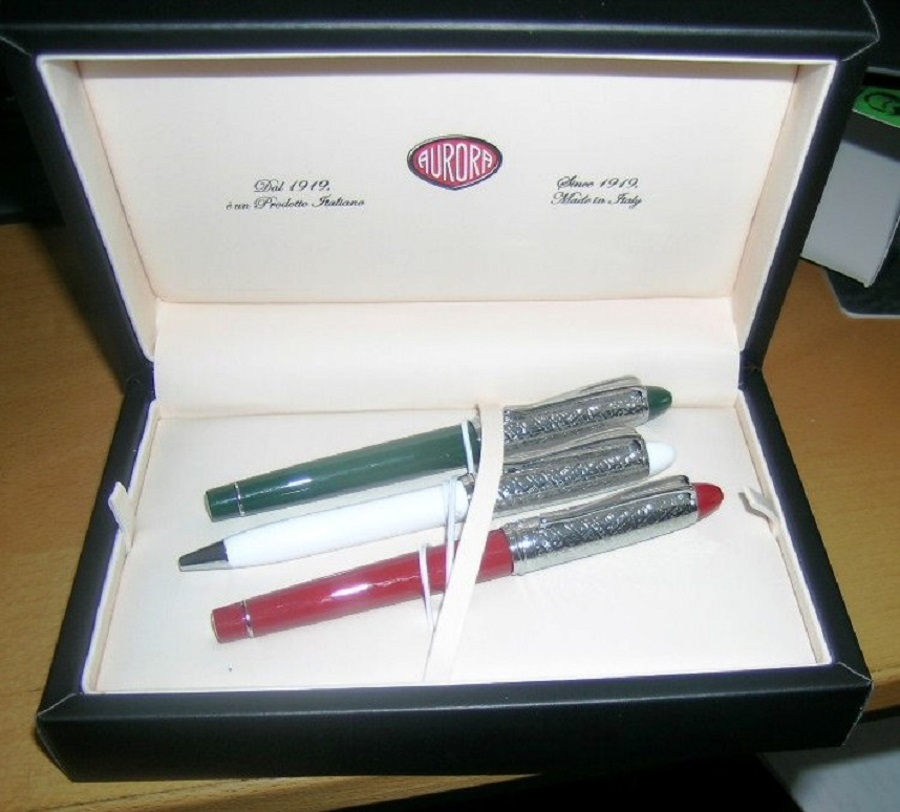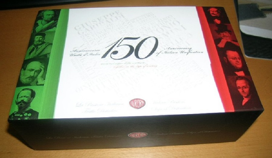 Per celebrare l'occasione, Aurora ha prodotto questo set e lo ha limitato a 1861 esemplari. Il set Ipsilon "Trittico Italia 150" è composto da una stilografica, una Penna a Sfera e un Penna Roller, confezionati in un'attraente scatola.