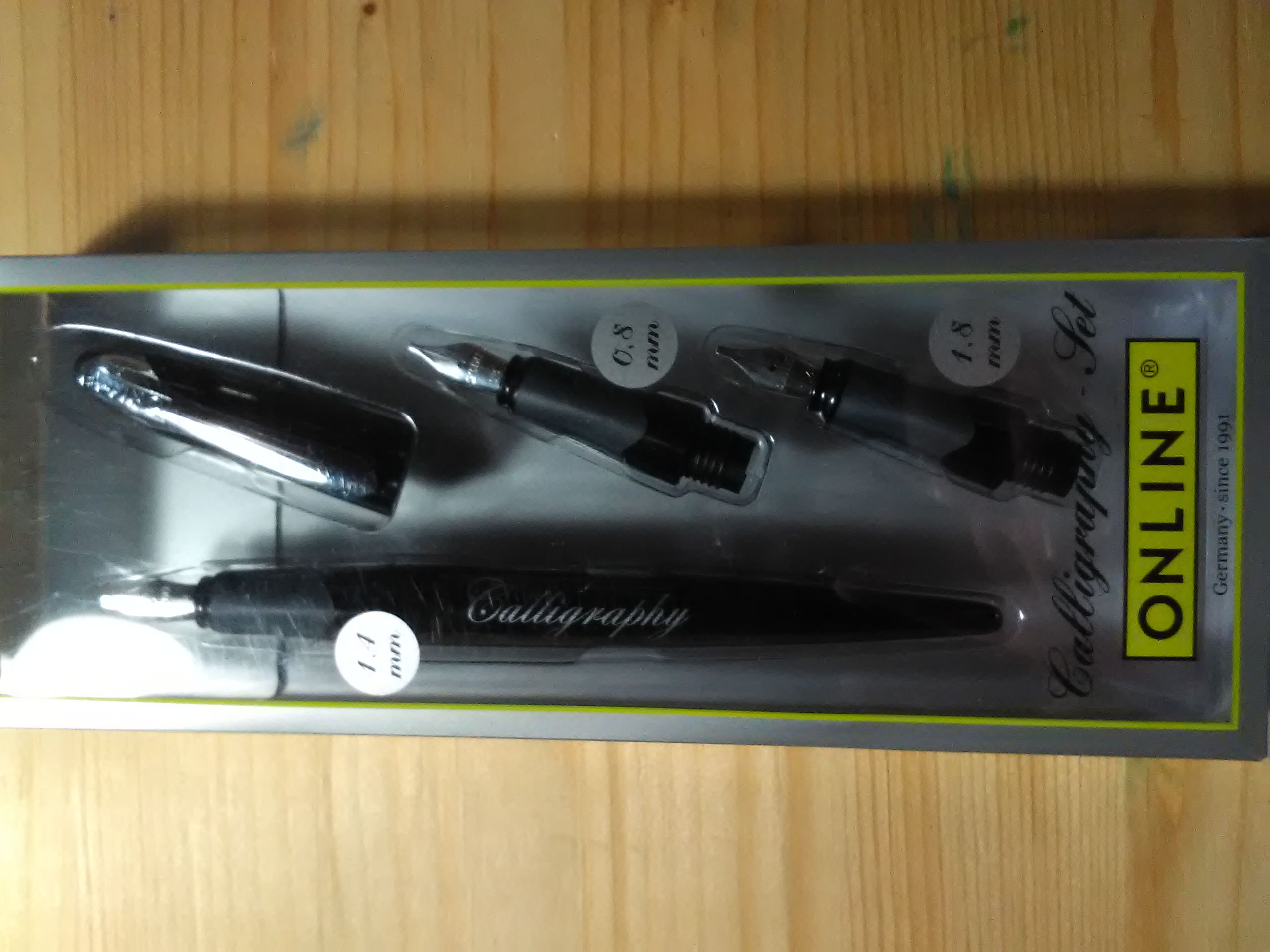 e qui c'è la penna con i 3 pennini calligrafici, anche 1,4 va molto bene: