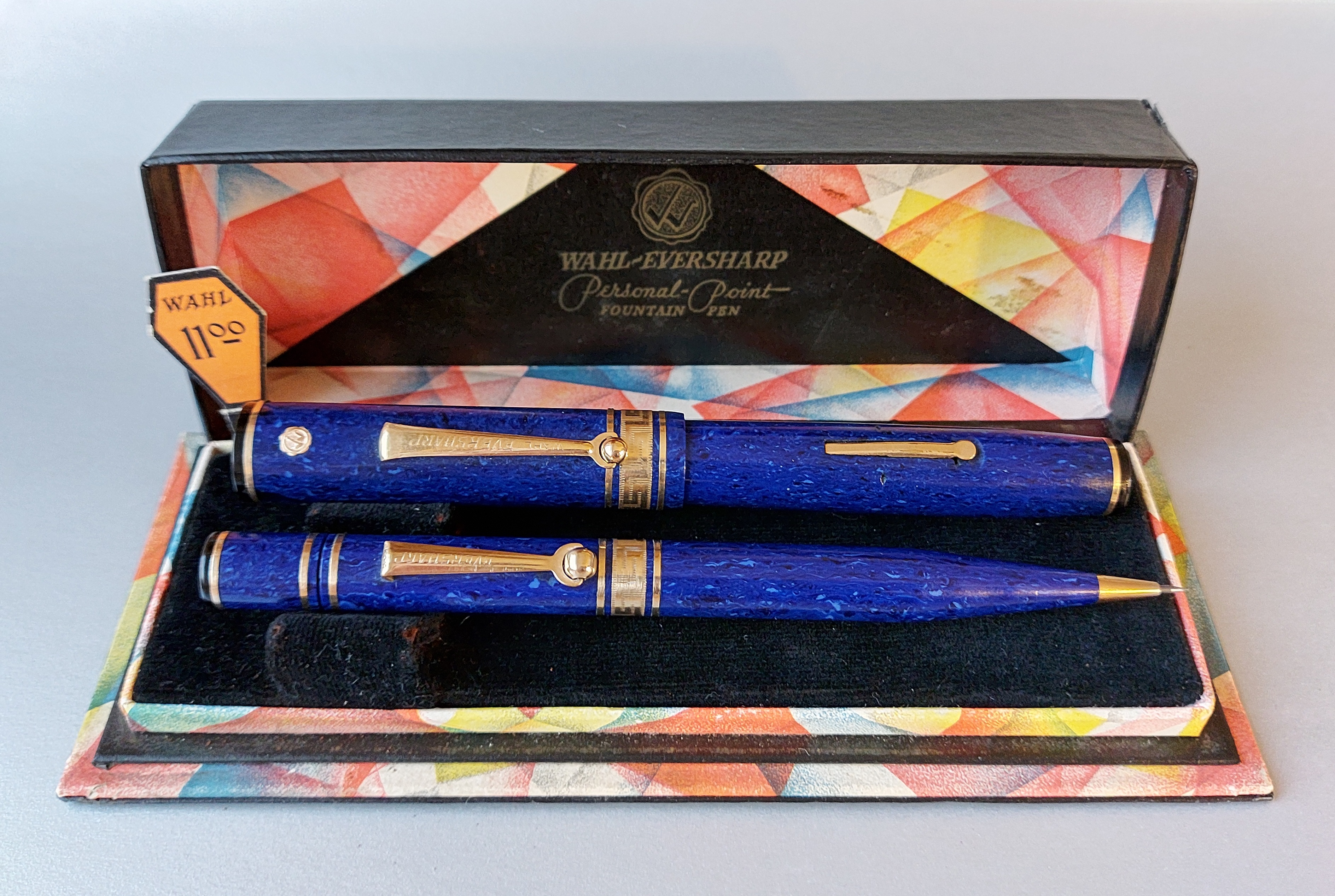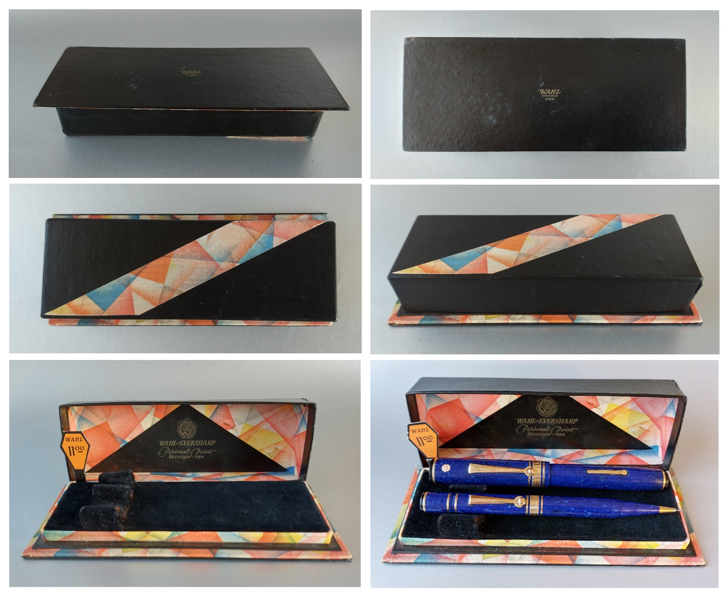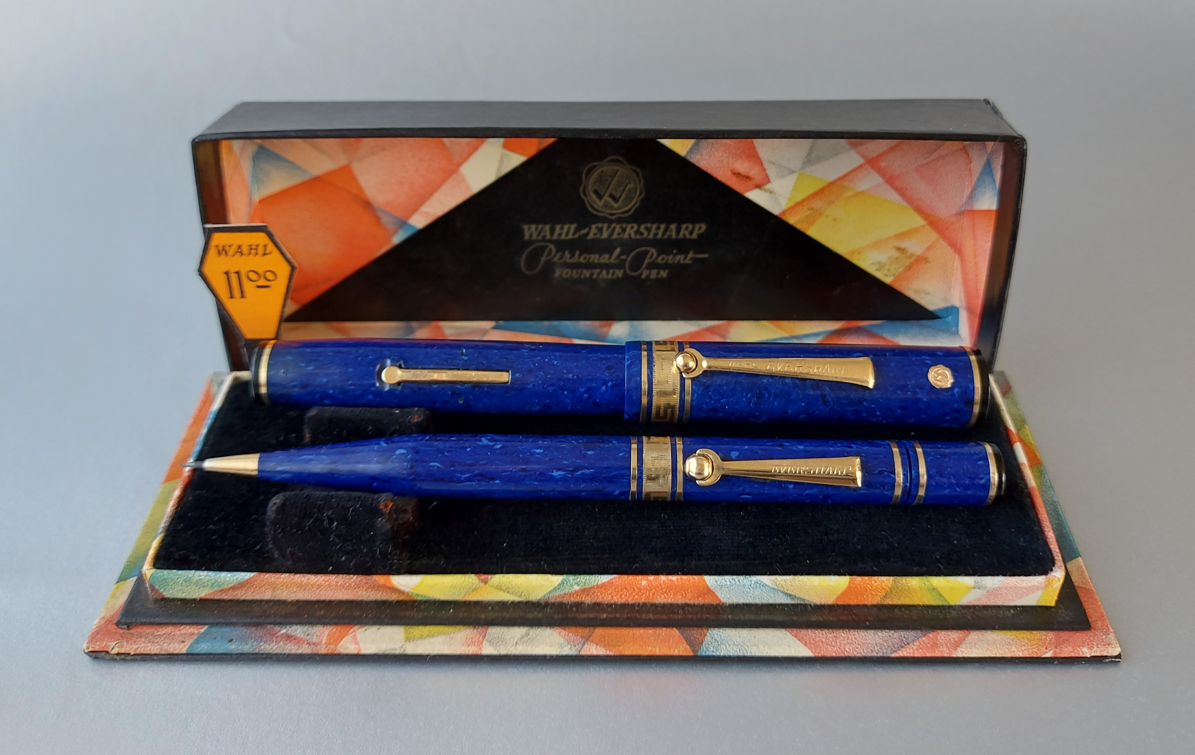 WAHL-EVERSHARP “DECO BAND” LAZULITIC BLUE COMBINATION SET IN BOX – Chicago, 1929