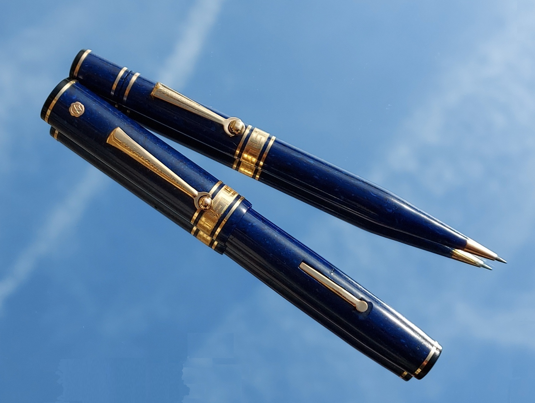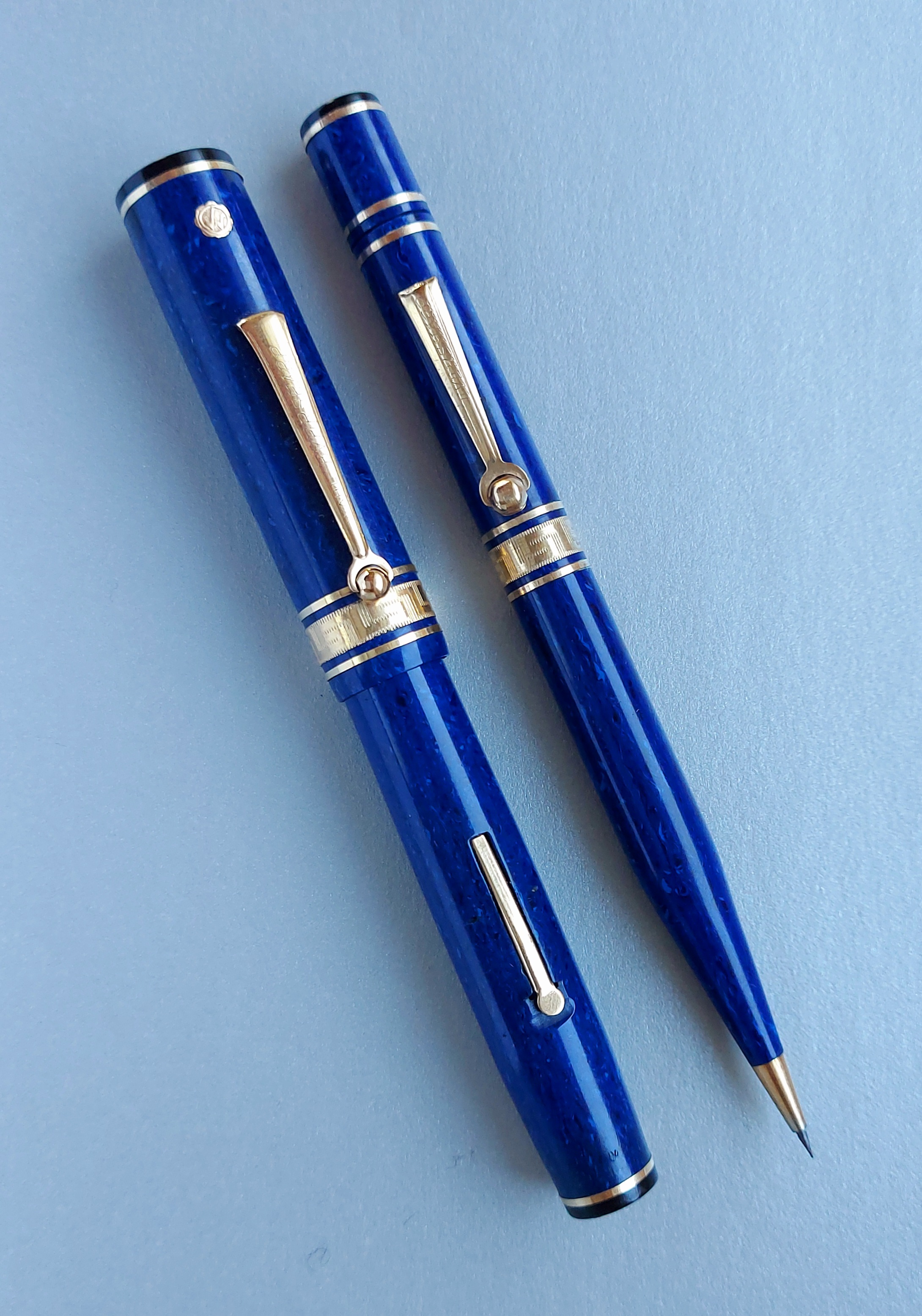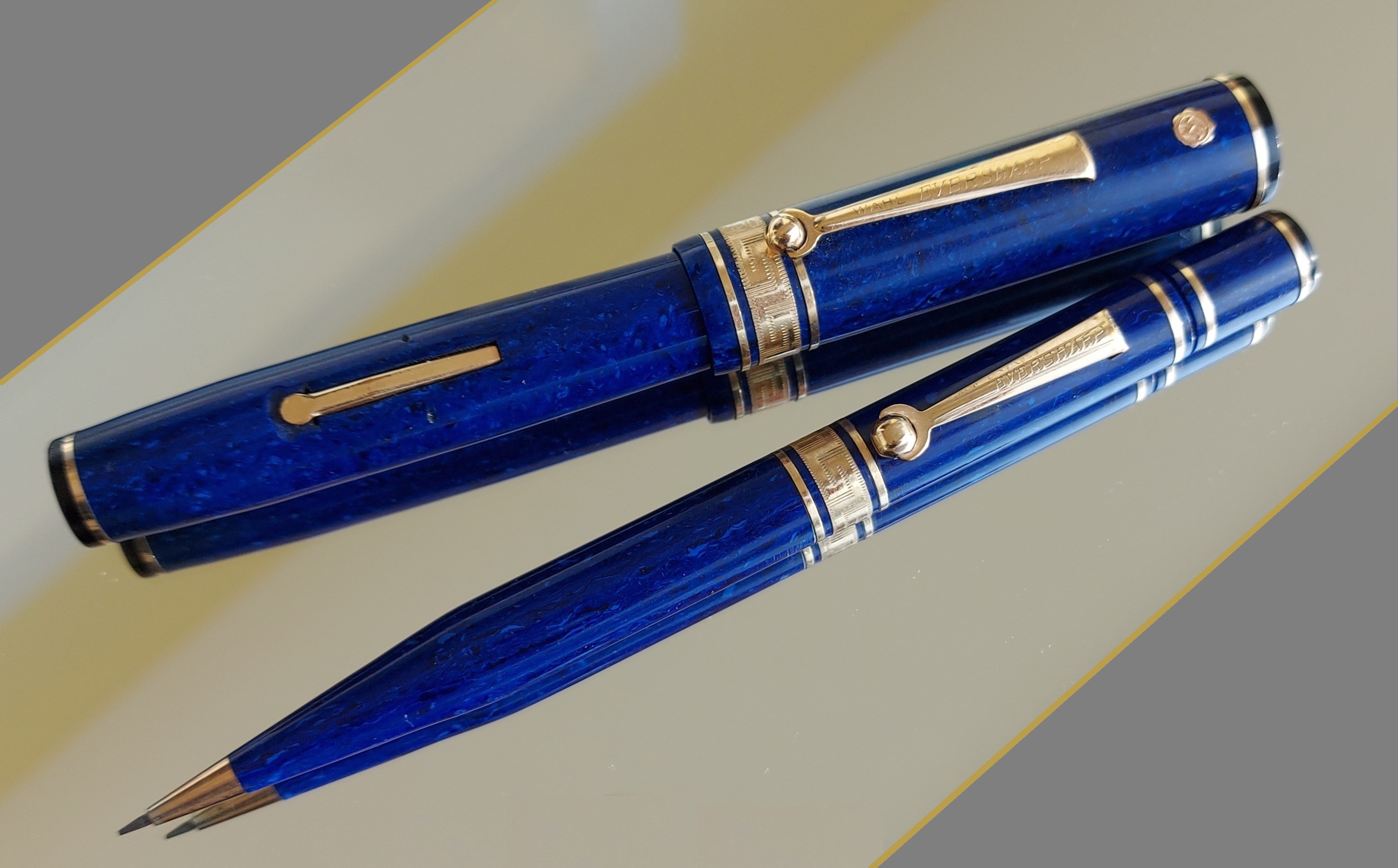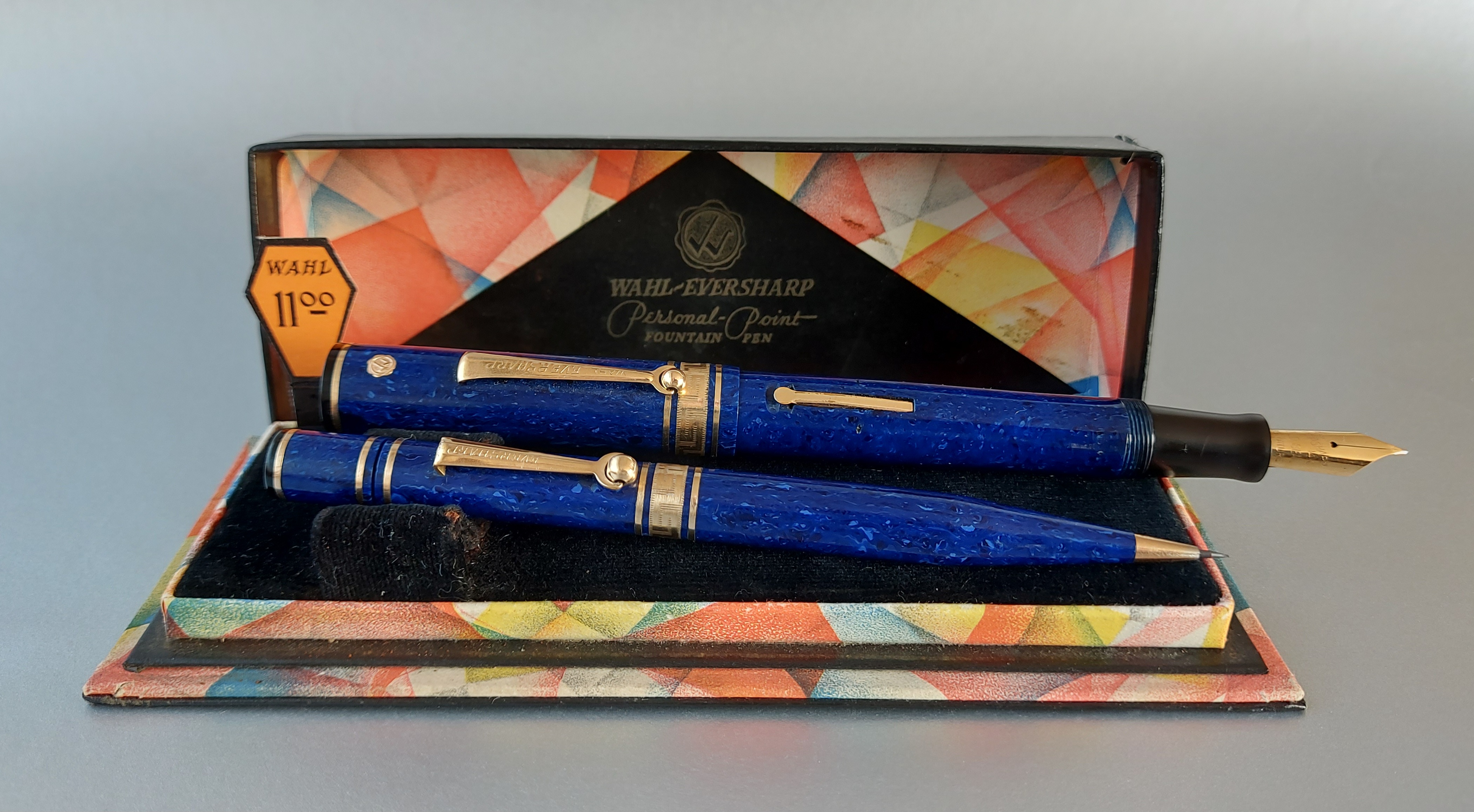WAHL-EVERSHARP “DECO BAND” LAZULITIC BLUE COMBINATION SET IN BOX – Chicago, 1929