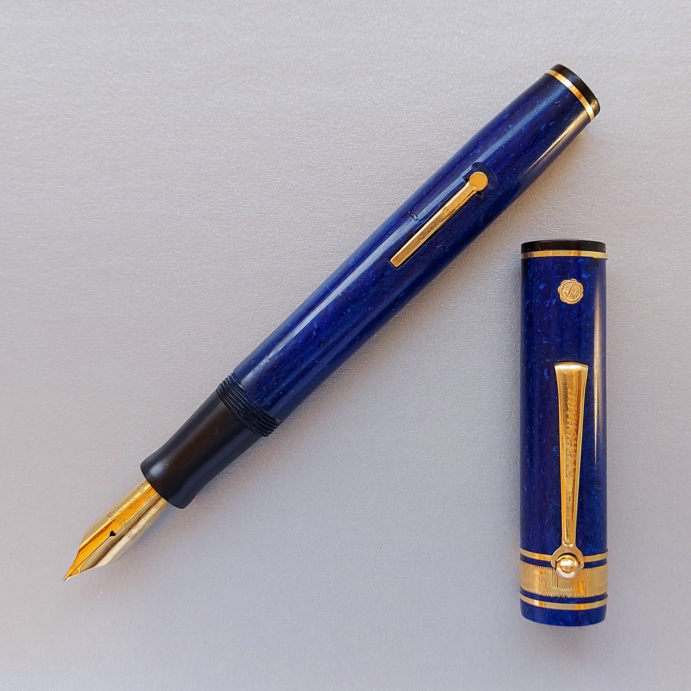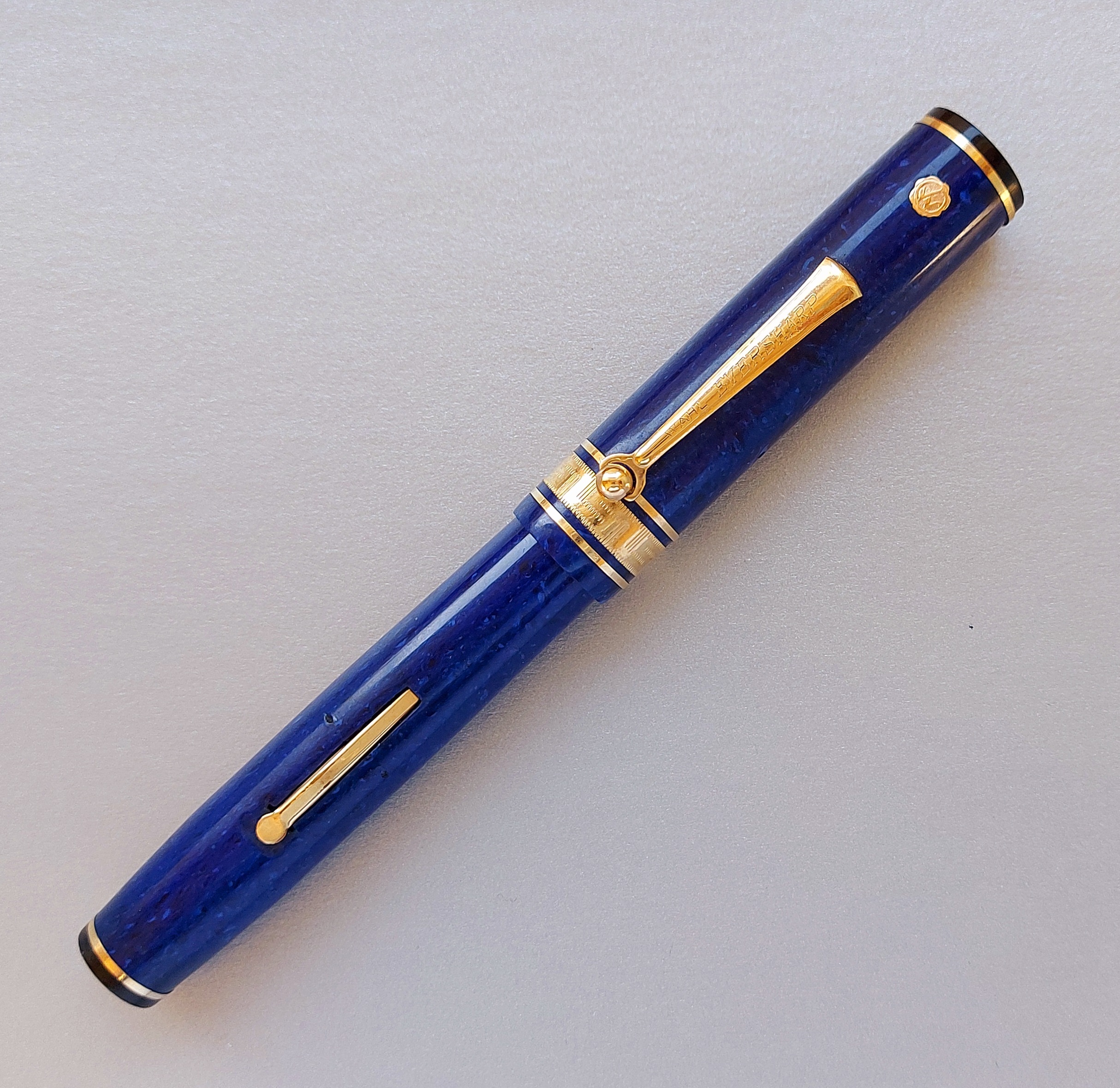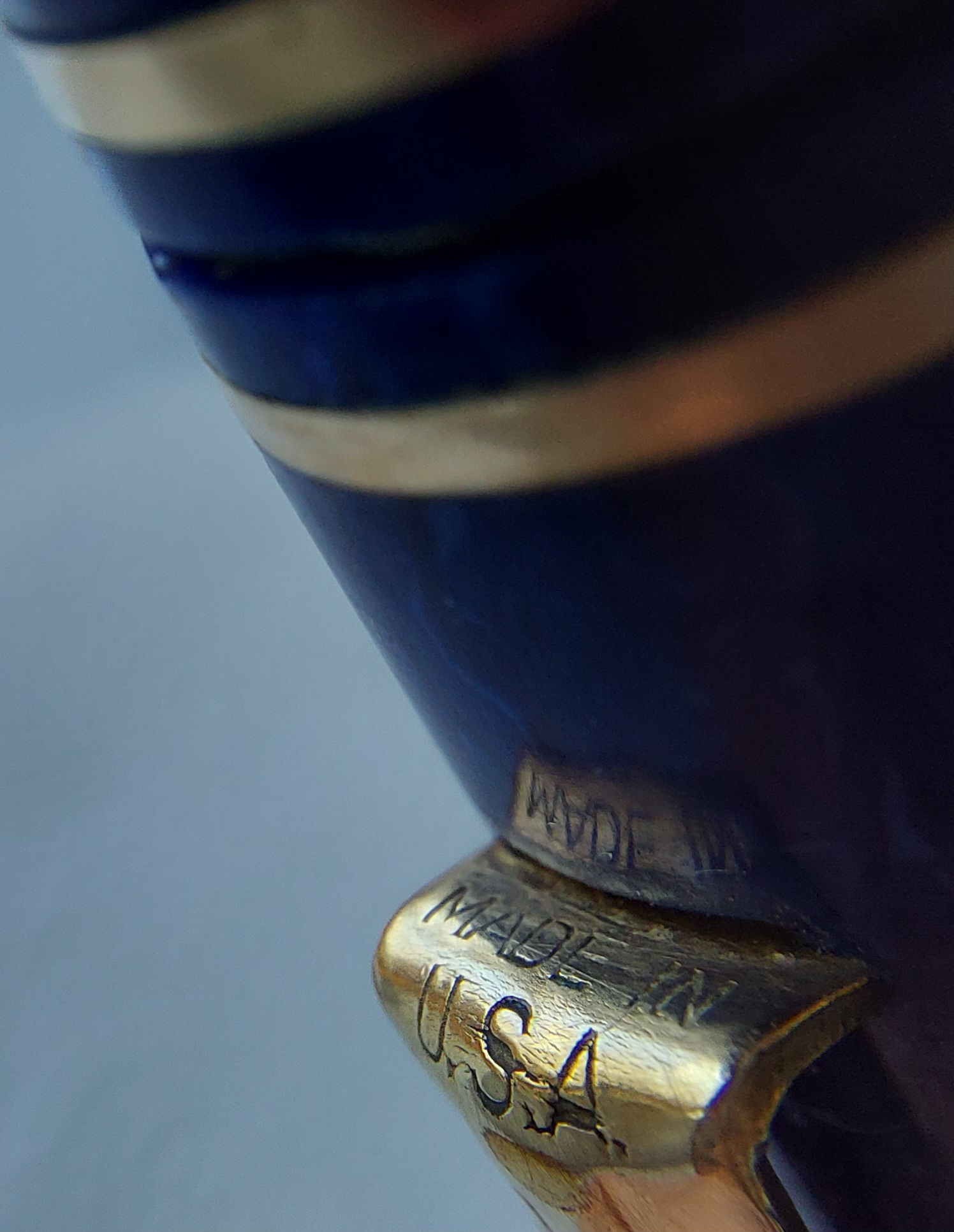Non avrei aperto un argomento ad hoc per recensire una penna che comunque avevo già mostrato diverse volte (anche per presentare delle pubblicità)… Inoltre, questo modello (che i collezionisti hanno battezzato “Deco Band” in assenza di una denominazione commerciale specifica del Produttore) è stato commentato ovunque, da decenni, ad abundantiam: il nostro formidabile Wiki già riporta una completa introduzione alla linea, incardinata nella presentazione della Marca, ad opera di Simone Piccardi :clap: (https://www.fountainpen.it/Gold_Seal_Personal_Point), e sul Forum diverse “Deco Band” in altre colorazioni sono state documentate (ancora di recente Francesco ha commentato approfonditamente due esemplari notevoli :thumbup: : viewtopic.php?t=28960 e viewtopic.php?t=29114), mentre in rete si possono reperire le trattazioni dei massimi esperti internazionali, oltre ad interessanti discussioni tra appassionati sui maggiori forum americani…