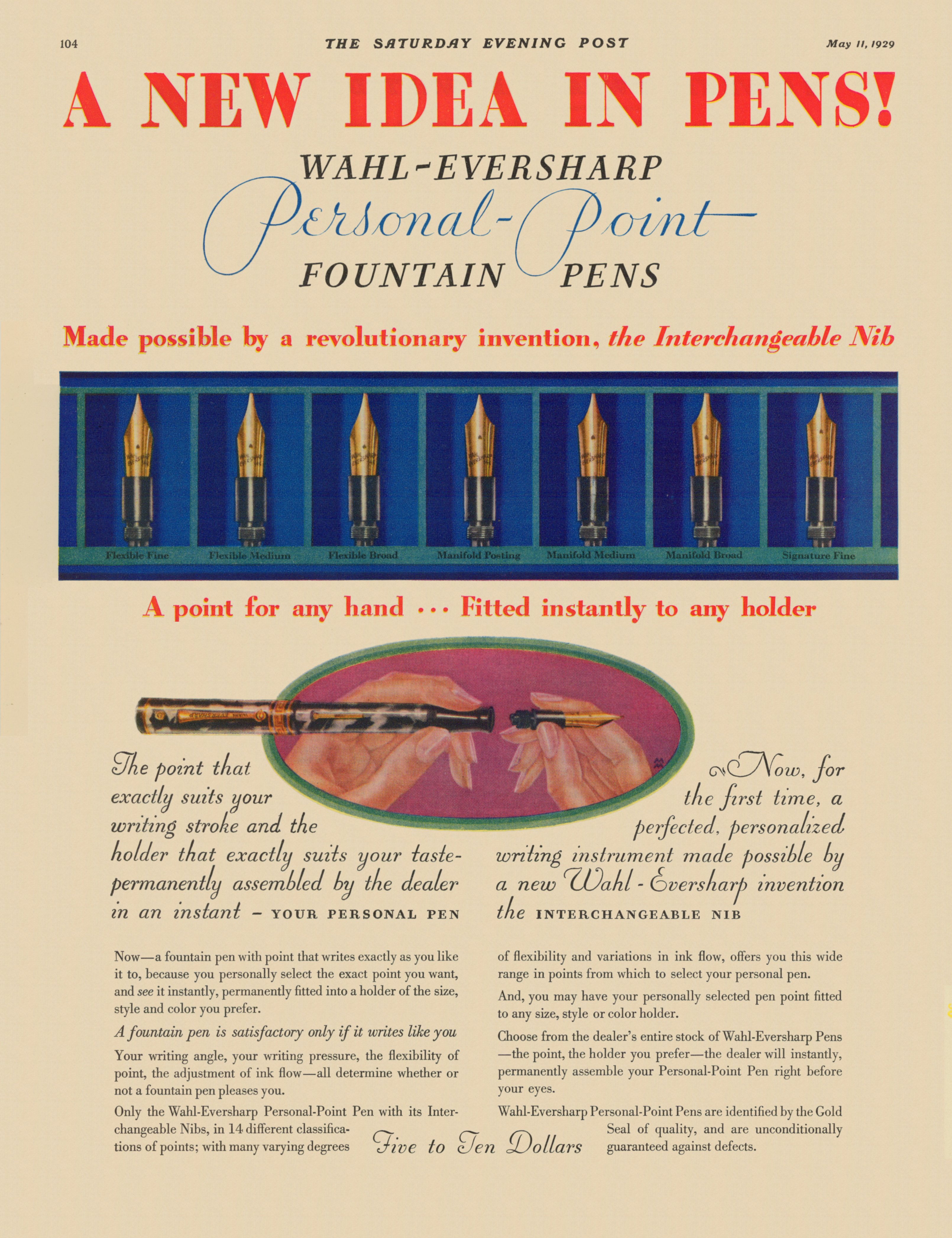 - il sistema di pennini intercambiabili “Personal Point” fu lanciato soltanto 7 mesi più tardi, nella primavera del 1929 (aprile/maggio);