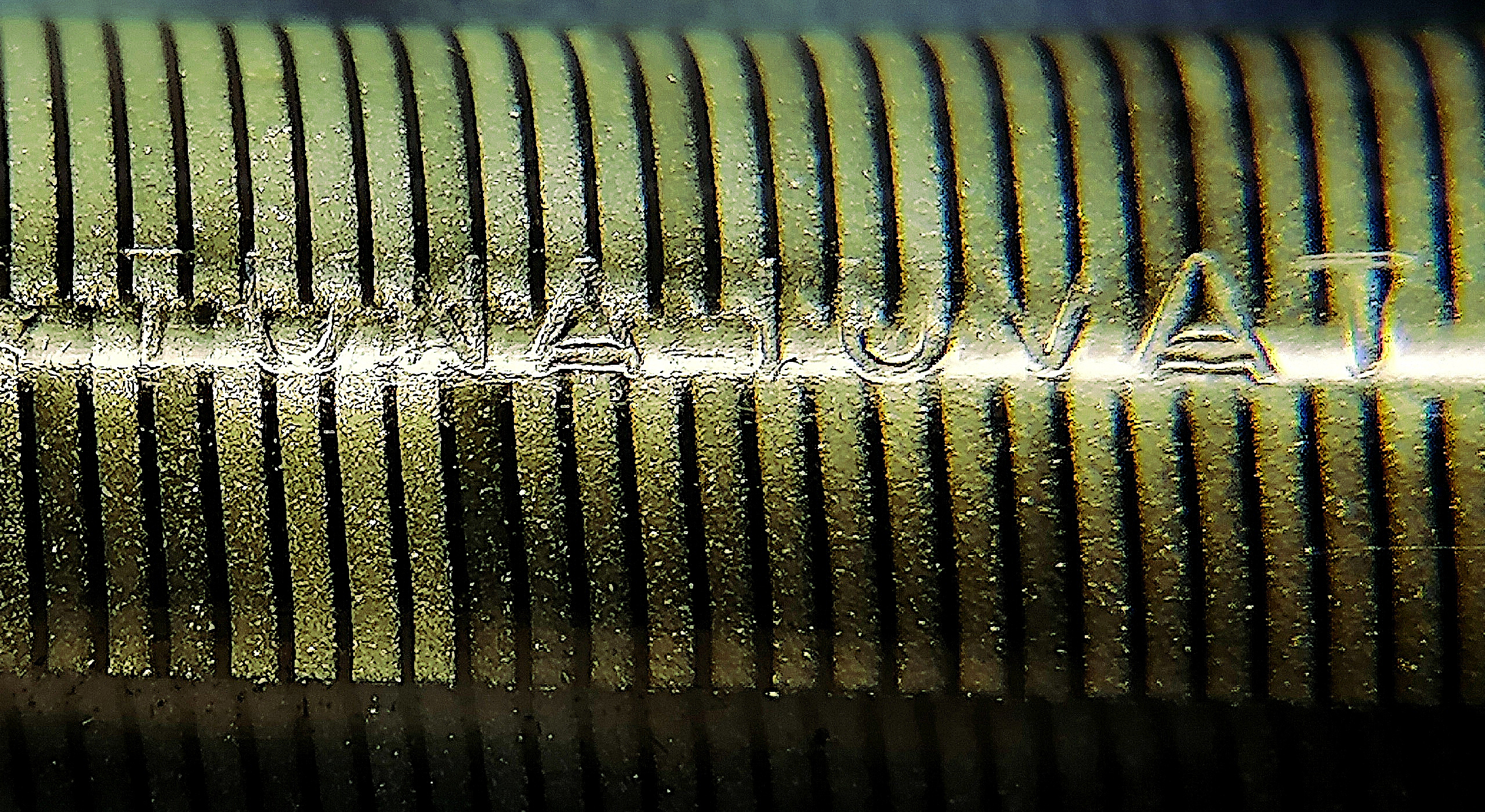 Però, con la lente d'ingrandimento, sono riuscito a scovare una scritta incisa in stampatello (v. foto) che recita: "AUDACES FORTUNA IUVAT".