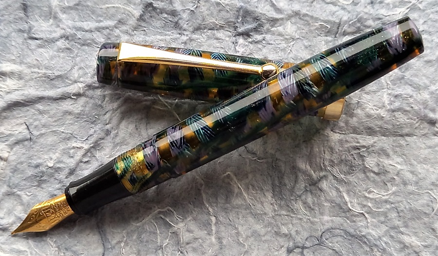 Dubito sia celluloide, direi acrilico ma l'effetto è molto buono, bella penna, questa è stata un regalo di Rosario di alcuni anni orsono quando ancora aveva il magazzino pieno di penne...