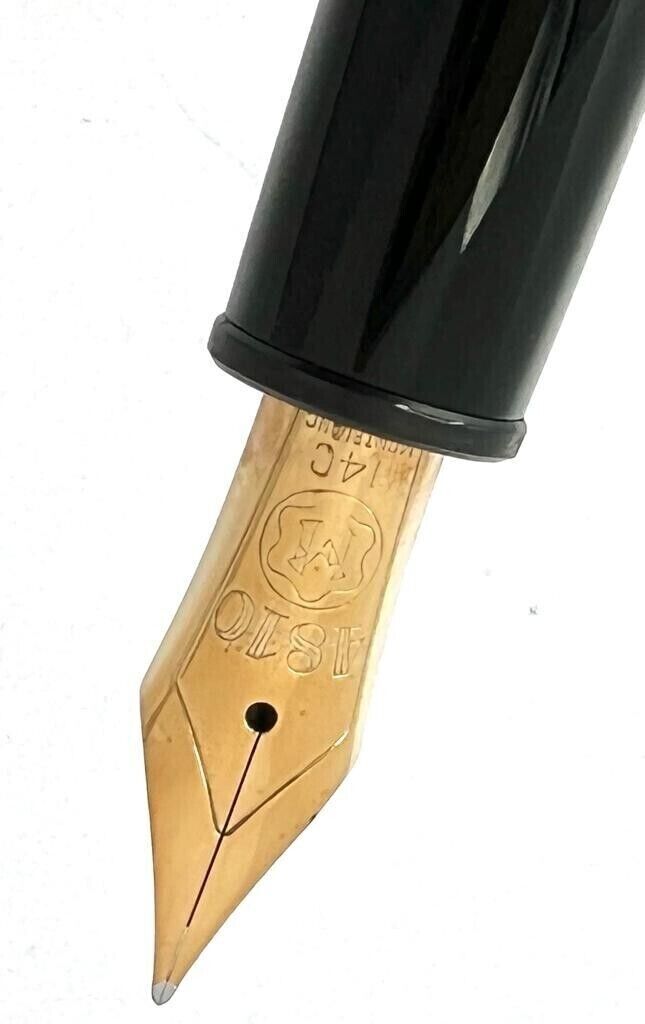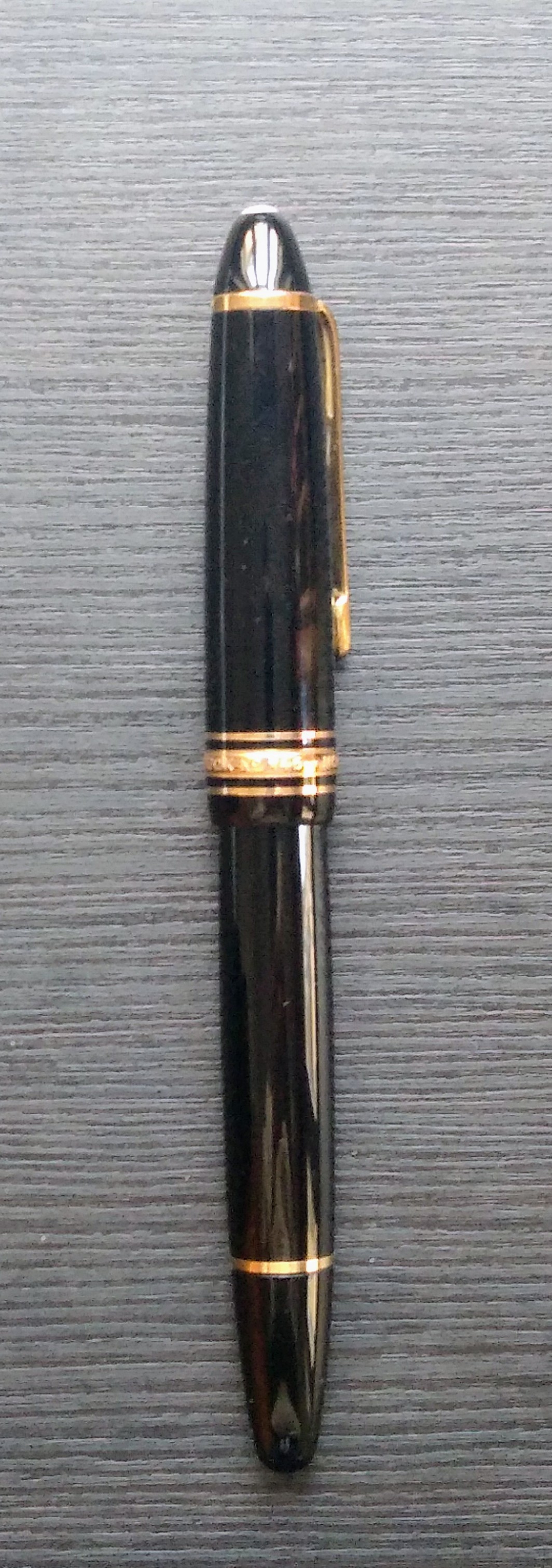 Ultima arrivata con questo curioso particolare di un white dot invece della solita stella a sei punte. Da quello che ho trovato cercando in rete dovrebbe trattarsi di una delle Montblanc vendute a tempi nei Paesi Arabi dove la stellina poteva far storcere il naso.