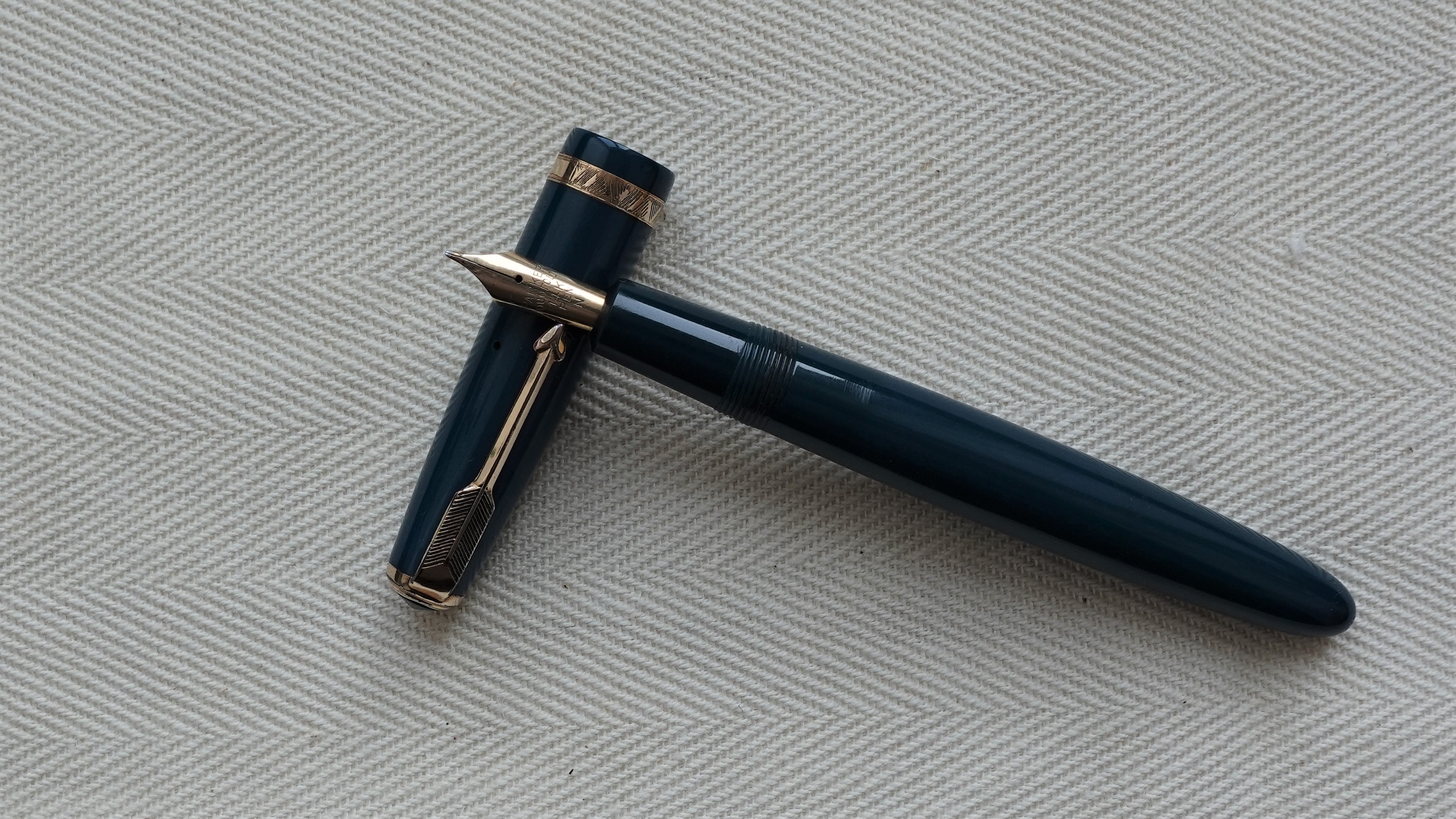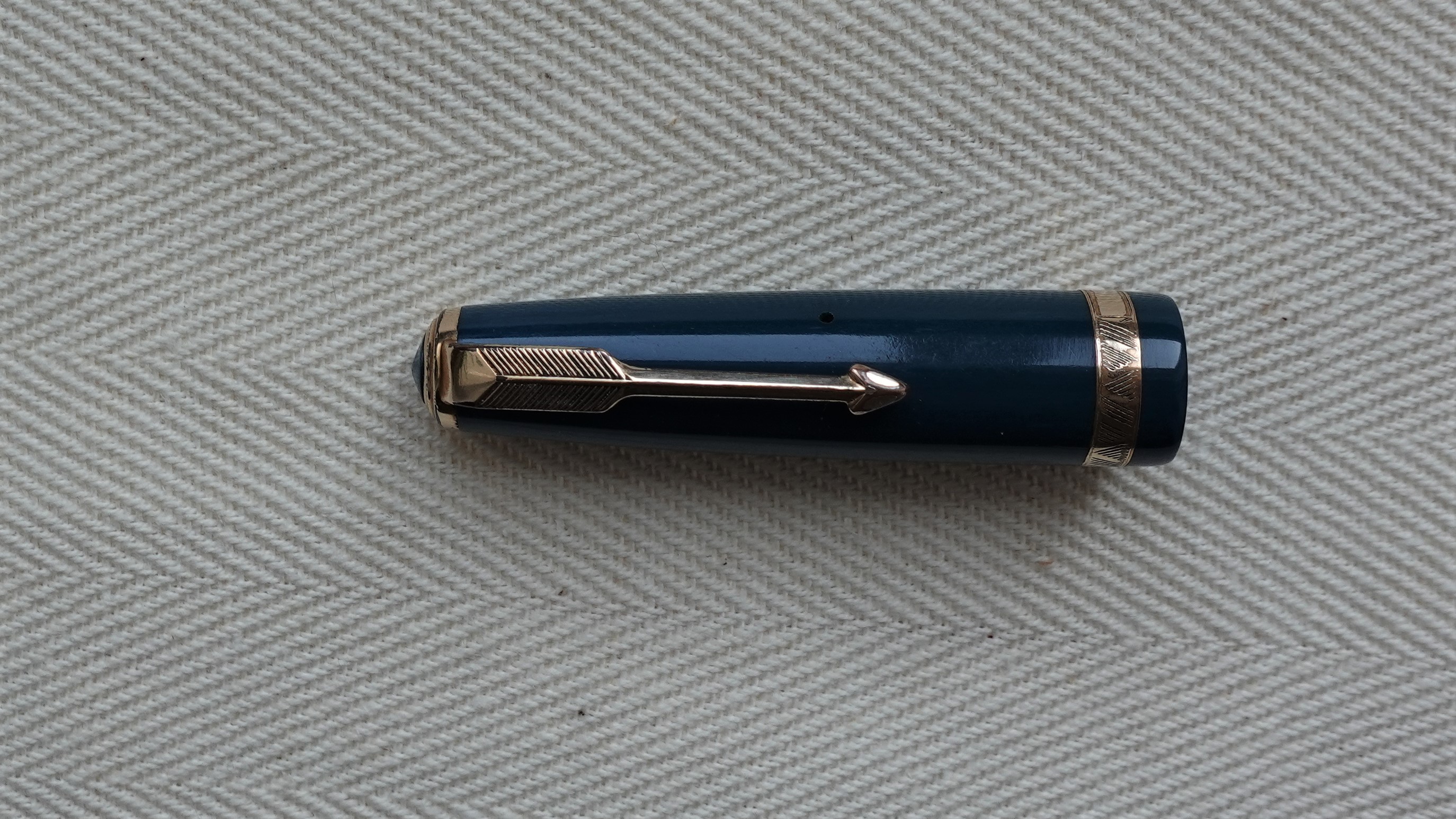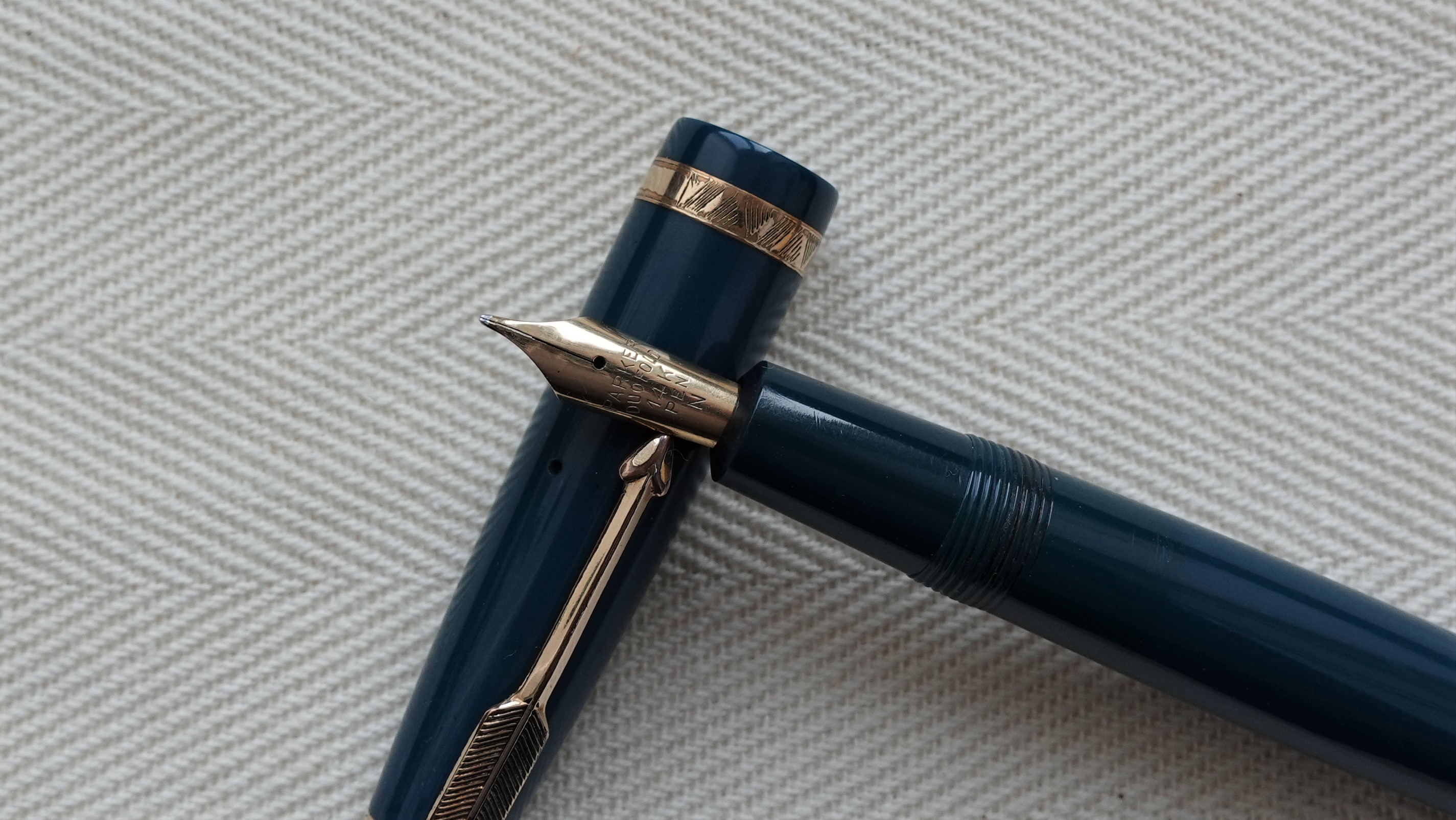 E' spuntata questa Duofold Verde. La marca impressa sul fusto è molto consumata ed è illeggibile. Ma sul pennino no