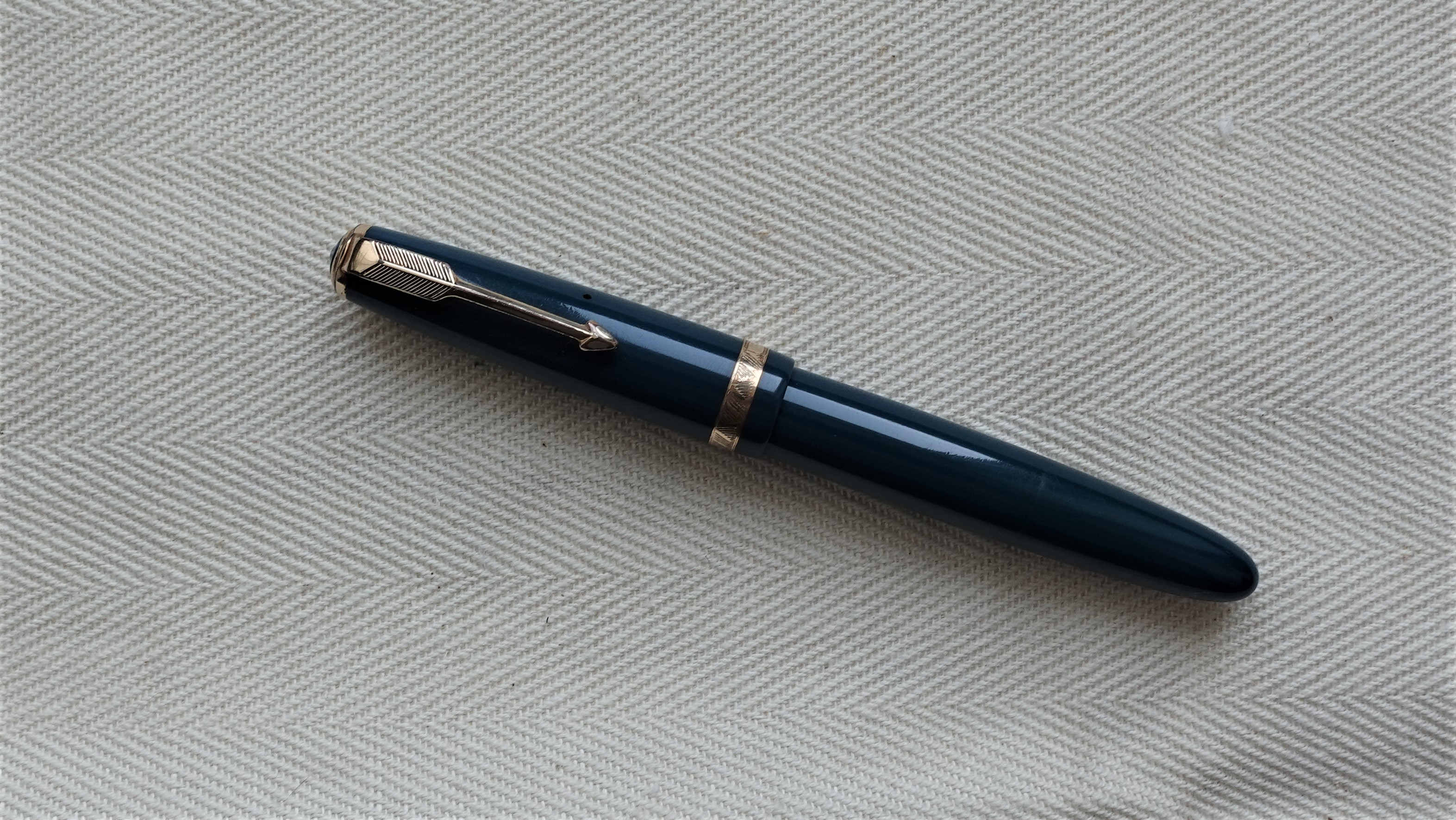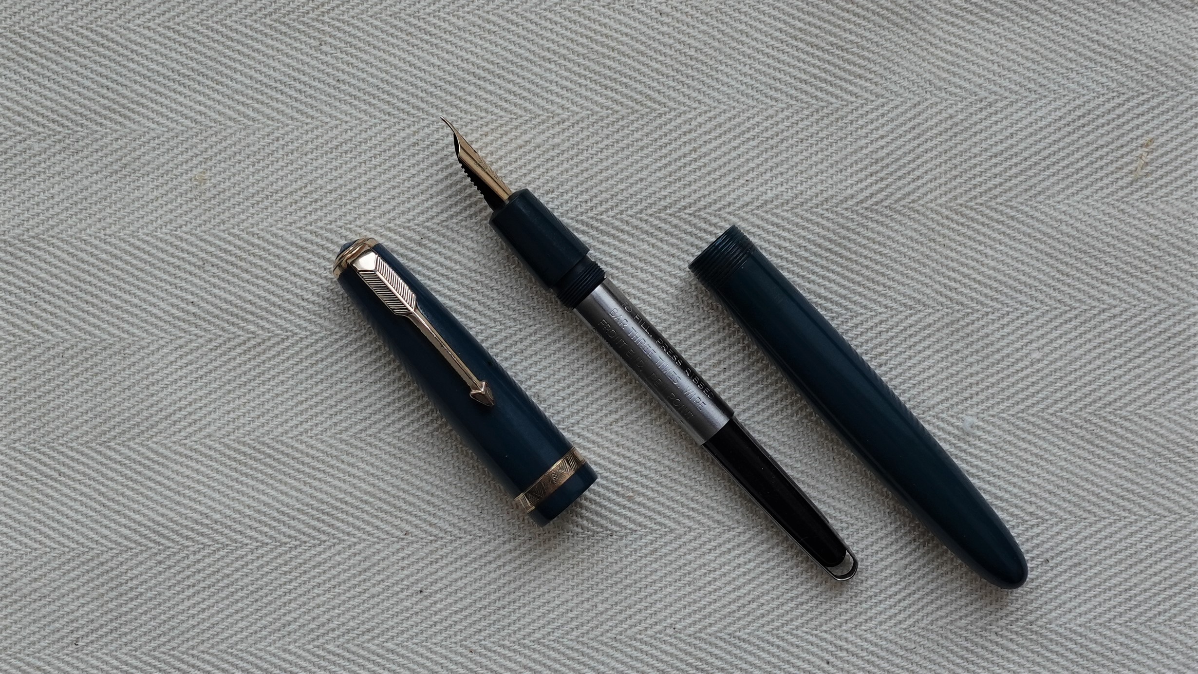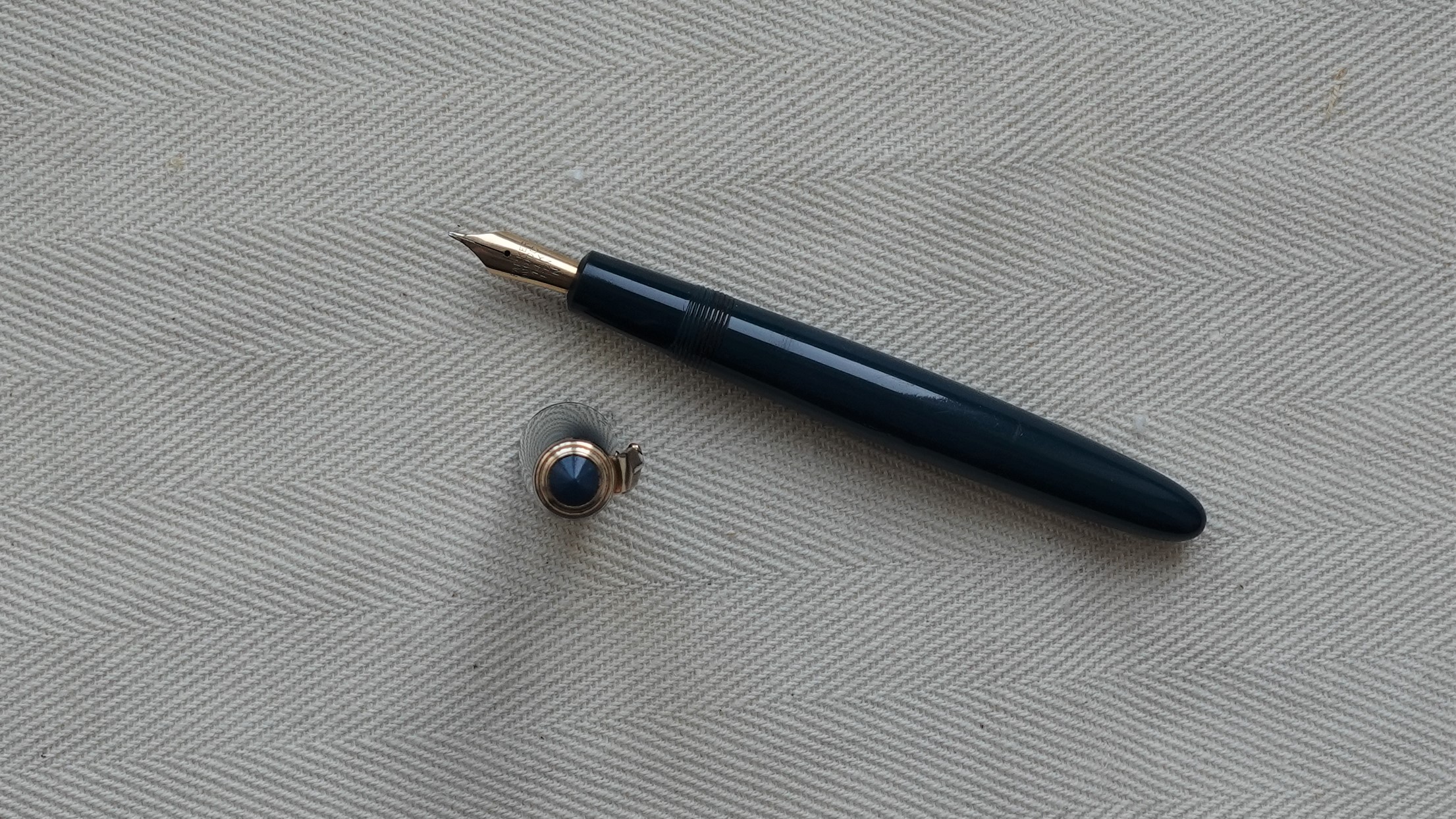 E' spuntata questa Duofold Verde. La marca impressa sul fusto è molto consumata ed è illeggibile. Ma sul pennino no