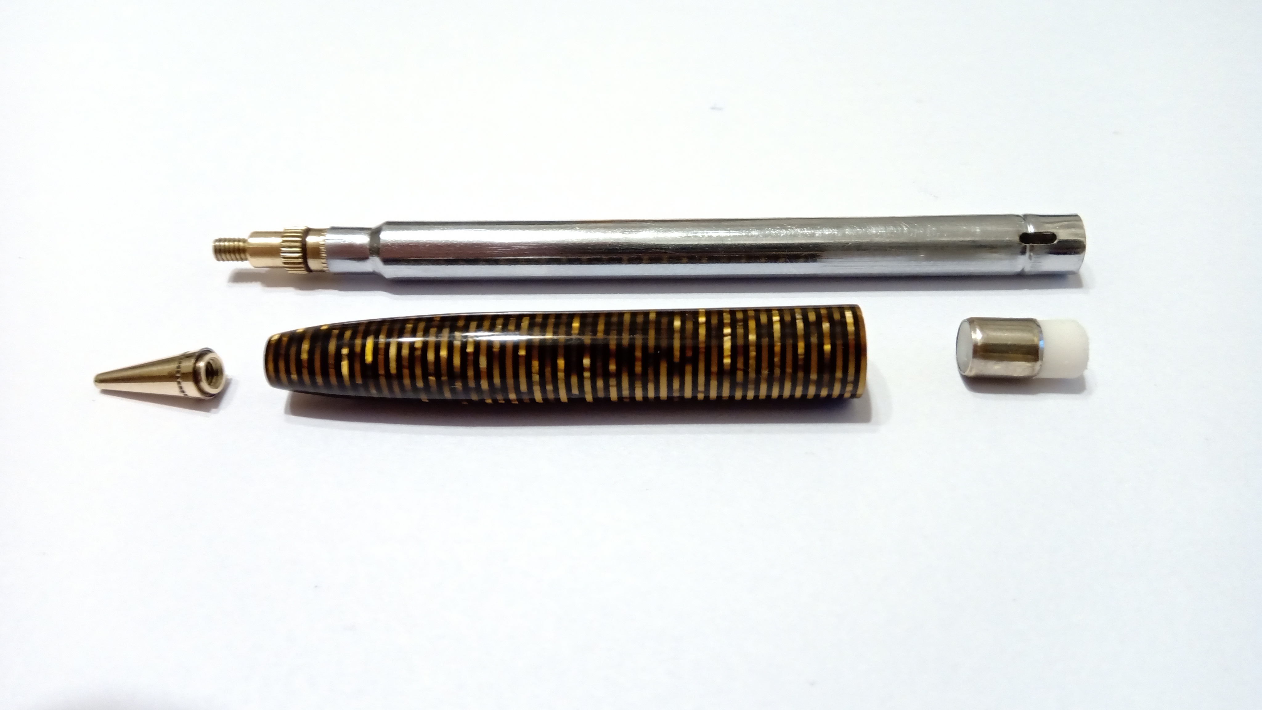 Poi è arrivata l'opportunità di acquistare un portamine appartenente alla stessa famiglia e con le stesse caratteristiche della stilografica, che, risparmiando il problema della parte interna e di alcune parti mancanti, poteva essere ricondizionata per completare il set.